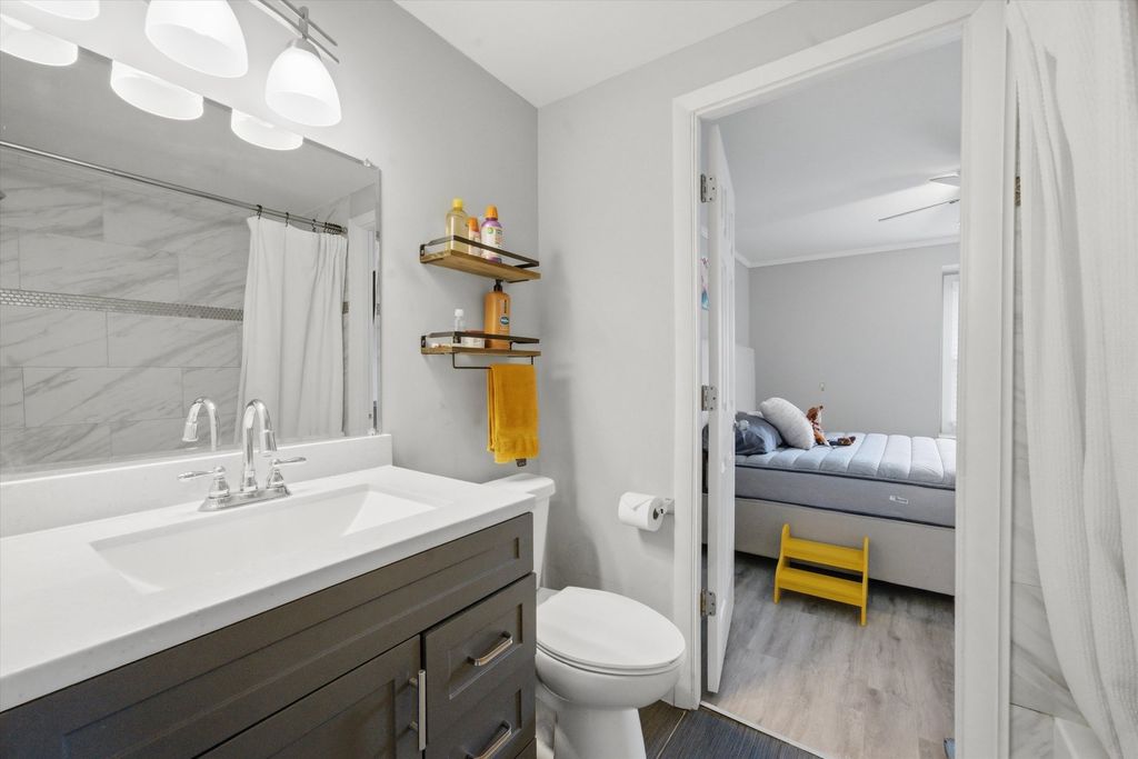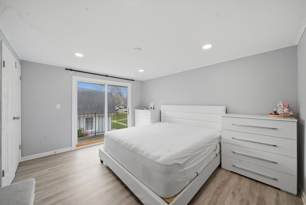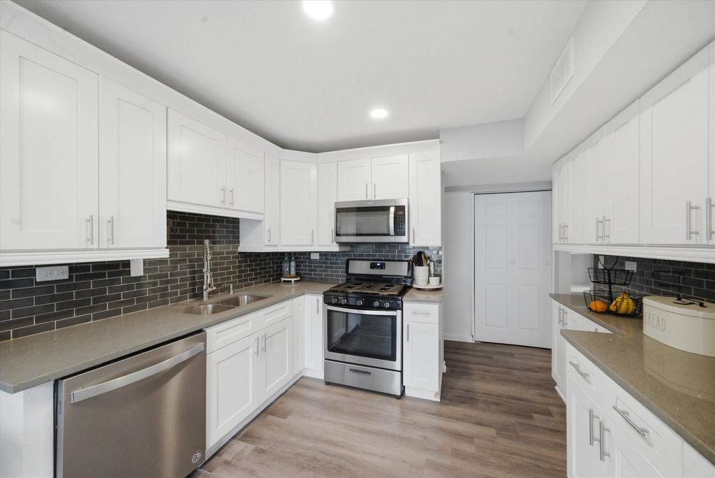 Bright, updated townhome in Sheffield Manor offering a clean, modern feel throughout. The renovated kitchen features crisp white shaker cabinetry, sleek hardware, granite countertops, stainless steel appliances, and a stylish subway tile backsplash, all opening seamlessly to a spacious outdoor patio-perfect for everyday living and entertaining. Upstairs, you'll find three bedrooms, including a large primary suite with walk-in closet with plenty of natural light and a private deck. The full finished basement adds valuable additional living space - perfect for a family room. This home stands out with its rare 4th bedroom/office, functional layout, and prime location within the community. Community Clubhouse and Pool. Conveniently located near shopping, dining, parks, and top-rated schools, Hoffman Estates High School, 10/10.