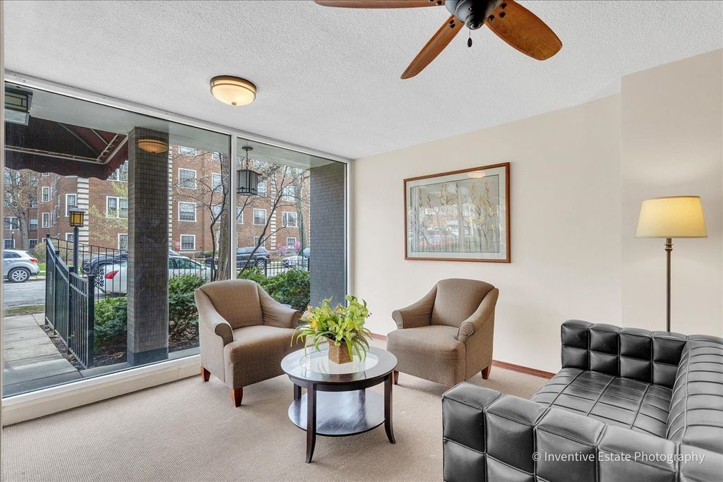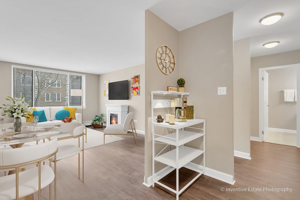 Location, location, location describes this luxurious one bedroom mid century condominium in the heart of downtown Oak Park. The fabulous finishes will take your breath away! Entry hall leads to the expansive great room; a perfect place to entertain. The beautiful fireplace is the focal point of this area. This space includes both a living area and a dining space for casual or intimate dinners. A bank of windows allows sunlight to sparkle in. The updated white lacquer wood cabinet kitchen is a chef's delight. Stainless steel appliances include a five burner stove, low profile microwave, french door refrigerator and dishwasher. A coffee bar is conveniently located in the corner; serving a dual purpose as a coffee station and a place to use an air fryer, toaster, blender etc. This innovative "electric zone" allows you to free up the beautiful granite countertops for prep work or serving. To add to the ambiance and functionality are under cabinet lights; which operate easily with a touch of the remote. After an evening of entertaining or a day at the office indulge in a warm and soothing shower in your spa like bathroom. The waterfall like porcelain tiles accent the tub area and provides a serene and calming feeling while the pulsating showerhead offers relaxation. Oversized vanity with drawers easily accomodates all your tolietries. The beveled edge mirror and luxurious lightening with edison bulbs adds a bit of chic elegance to the room. A knee wall offers privacy to the commode. A linen closet provides storage for all bathroom essentials. After your relaxing spa, retreat to the oversized bedroom. An entire wall of closet space is perfect for the fashionista! Storage galore in this unit! Not to be missed are the additional three double closets, all with custom built-ins and two linen closets; providing a welcome space for all your seasonal clothes or boxed items. New luxury vinyl plank floors flow seamlessly throughtout the unit uniting the open floor plan. The condominium has been professionally decorated and painted. Additional secure storage is located on the ground level. The amenities of the building include a gym equipped with the latest machines, laundry room, bike room and package area. Included is a desiginated covered one car parking space providing shelter from inclement weather. This condominium is conveniently close to downtown Oak Park, Whole Foods, restaurants, bars, movie theatre and more. One block to Metra train and the Oak Park blue line. Minutes to Oak Park Rush Hospital and Loyola Hospital. Easy acess to I-290 to O'hare and Midway airports. Call for an exclusive showing. This impeccable unit will not last!