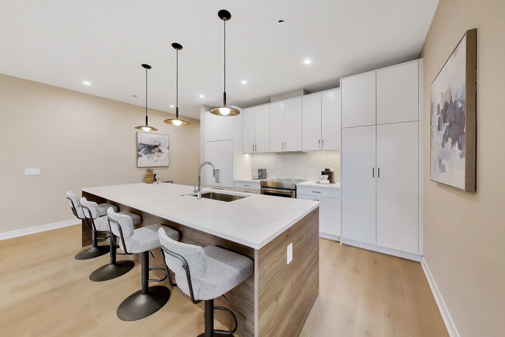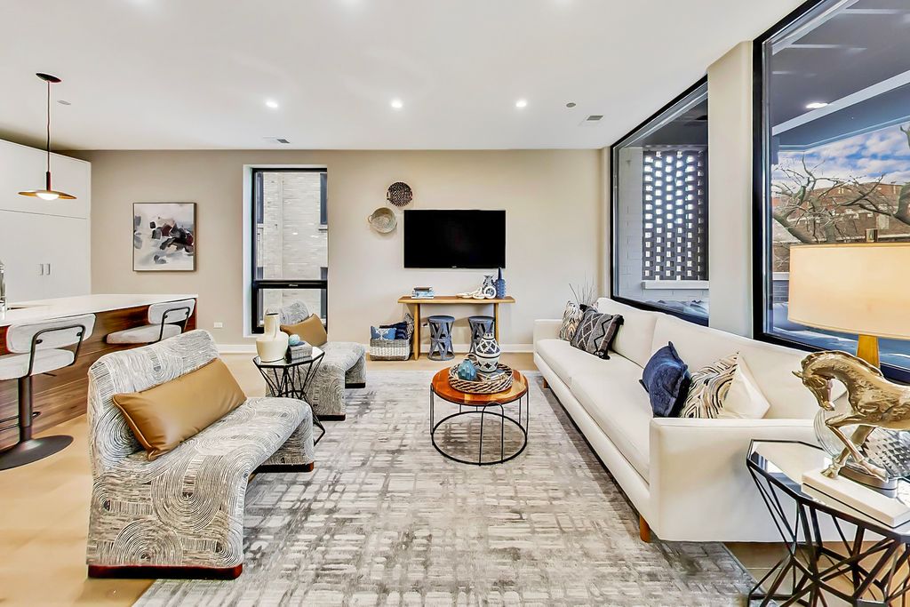 Time to close out this project - only 2 units left! 4.5% buy-down financing options available. Introducing 5114 Kenwood - A rare opportunity for new construction condominium living in a boutique elevator building at the vibrant epicenter of Hyde Park. Perfectly positioned on Kenwood Avenue, one of Hyde Park's most desirable residential streets, 5114 Kenwood delivers the product long missing from the neighborhood: single-level, contemporary residences with exceptional private outdoor living and secured, covered parking. Developed by acclaimed ZSD-known for successful mid-rise projects throughout the city-this collection brings thoughtful design and refined finishes to Hyde Park. Residence 4B is a move-in ready, luxury home offering 3 bedrooms (all en-suite), 2.5 baths, plus a sun-kissed den ideal for a home office or small fourth bedroom. The extra-wide floor plan features generous living spaces and is flooded with natural light from north, west, and east exposures. The elevator opens to a polished foyer and stylish private entry, setting the tone for the home's clean, modern aesthetic. The all-white kitchen showcases custom flat-front cabinetry, an oversized island, pantry closet, and integrated, professional grade appliances. An extra wide living and dining area opens to an oversized, east-facing walkout terrace with gas, water, and electric - perfect for effortless indoor-outdoor living. The serene primary suite is generous in size and luxury featuring an expansive dressing closet with custom organization and spa-inspired bath with floating double vanity, LED mirrors, European glass shower, and private water closet. Two additional bedrooms easily accommodate queen-sized beds and feature shared, en-suite bath with porcelain tile, soaking tub, double vanity, and quartz countertops. Sought-after finishes throughout, including wide-plank hardwood flooring, upgraded lighting package, integrated laundry closet, and custom carpentry accent walls that beautifully highlight the space. Enjoy easy elevator access to a nearly 400 SF private rooftop deck with tile decking - entirely exclusive to Residence 4B. One secured, covered parking space included. Close proximity to neighborhood favorites for dining, shopping, and nightlife along 53rd Street and Hyde Park Boulevard, as well as everyday conveniences just minutes from your door. The lakefront, parks, and scenic paths are easily accessible for outdoor recreation, while nearby Metra, CTA bus routes, and Lake Shore Drive provide seamless connectivity throughout the city. This home also offers immediate access to top educational institutions including several highly regarded public and private options. A rare blend of tranquility, culture, and convenience-5114 Kenwood delivers the very best of Hyde Park and city living. Move-in ready and truly special! Development is 80% sold out - don't miss your chance to call 5114 Kenwood home.