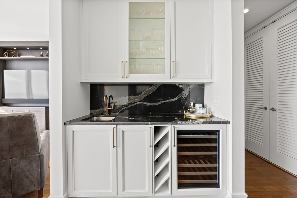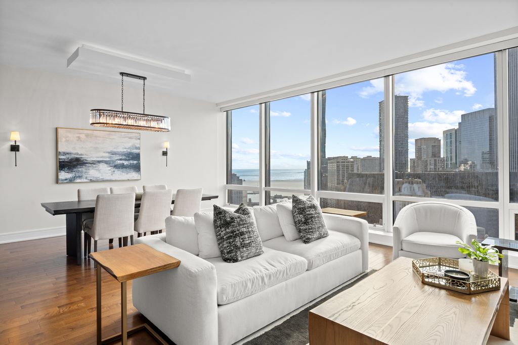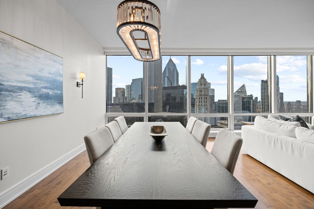 Experience elevated living at its finest in this impeccably remodeled 31J residence at the iconic Trump Tower Chicago. Encompassing nearly 2,100 square feet, this extraordinary 2-bedroom, 2.5-bath home combines architectural elegance, modern sophistication, and panoramic southeast views where the Chicago River meets Lake Michigan. From the moment you enter, soaring ceilings and floor-to-ceiling windows frame postcard-perfect vistas of the dazzling skyline by night and a serene waterscape by day. The expansive floor plan is tailored for both comfort and style, featuring a chef's kitchen outfitted with Wolf, Miele, and Sub-Zero appliances. The primary suite offers a tranquil retreat with a custom walk-in closet and a luxurious, spa-inspired bath complete with dual vanities, a soaking tub, and a glass-enclosed shower. The second bedroom includes an en-suite bath and generous storage, while thoughtful touches such as motorized shades, an elegant powder room, and abundant built-ins enhance everyday living. Every finish within this residence has been meticulously curated from the premium materials to the precise craftsmanship, reflecting a seamless blend of sophistication and contemporary comfort. Residents of Trump Tower enjoy unparalleled five-star amenities, including a state-of-the-art fitness center, full-service spa, indoor lap pool, private dog walk, and two acclaimed restaurants. Additional hotel-style services include in-home dining, housekeeping, and room service. Perfectly situated just steps from the Loop, the lakefront, and the Magnificent Mile, this residence delivers an unrivaled fusion of luxury, lifestyle, and location. One garage parking space available for an additional $40,000.