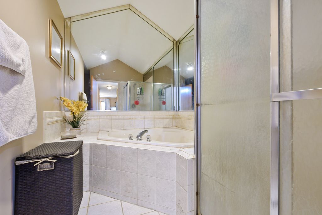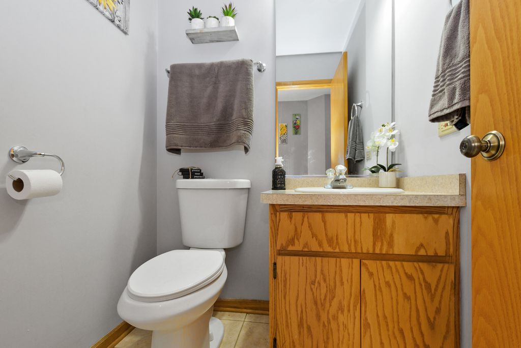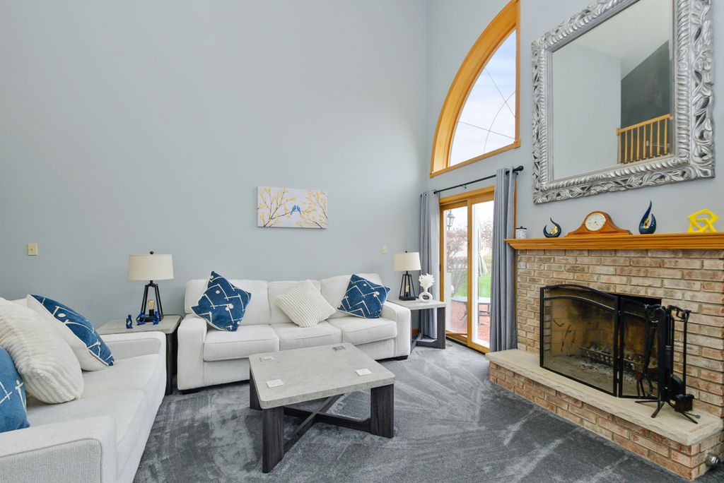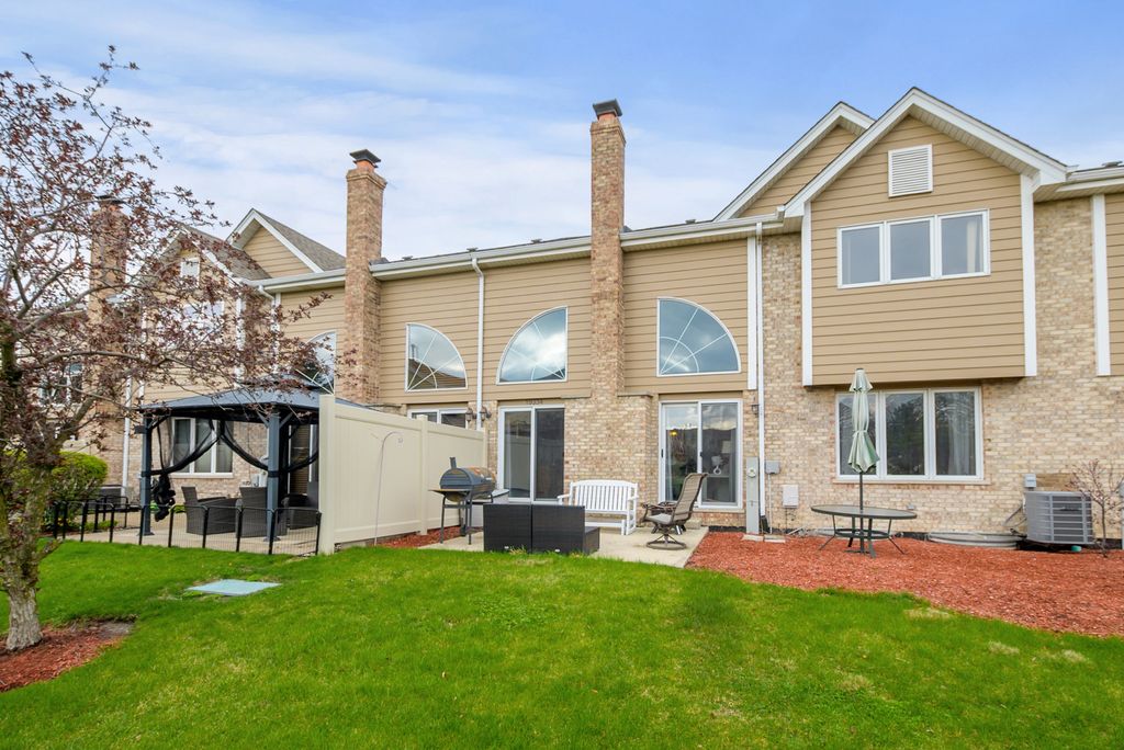 Beautifully maintained three-bedroom, two-and-a-half bath townhome featuring a desirable main-level primary suite with private ensuite bath. A spacious foyer welcomes you into this well-designed home offering convenient main-level laundry and an attached 2.5-car garage. The kitchen includes all appliances and features a newer refrigerator, while the impressive living room showcases a dramatic two-story ceiling, gas-start wood-burning fireplace, and double sliding glass doors leading to a west-facing concrete patio with new screens-perfect for enjoying afternoon sun and evening sunsets. The main-level primary bedroom was freshly painted and features a private ensuite with double bowl sinks, whirlpool tub and separate shower. Brand new carpet and fresh paint enhance the living room, while additional updates include fresh paint in the foyer, laundry room and powder room. Upstairs offers two spacious bedrooms, including one with a 6x7 walk-in closet plus an additional closet and convenient access to a shared full bathroom. The full finished basement expands the living space with a large carpeted family room, dry bar and kitchenette complete with refrigerator and microwave. A generous 15x20 storage area includes shelving that will remain with the home. Major updates include brand new furnace and air conditioning, complete tear-off roof in 2022, exterior painting completed in 2024 and two hot water heaters (one brand new and one approximately five years old). Low monthly HOA of $220 makes living more affordable. Pets and rentals are allowed offering flexibility for homeowners and investors alike. A fantastic opportunity combining comfort, space and valuable updates in a highly functional layout.