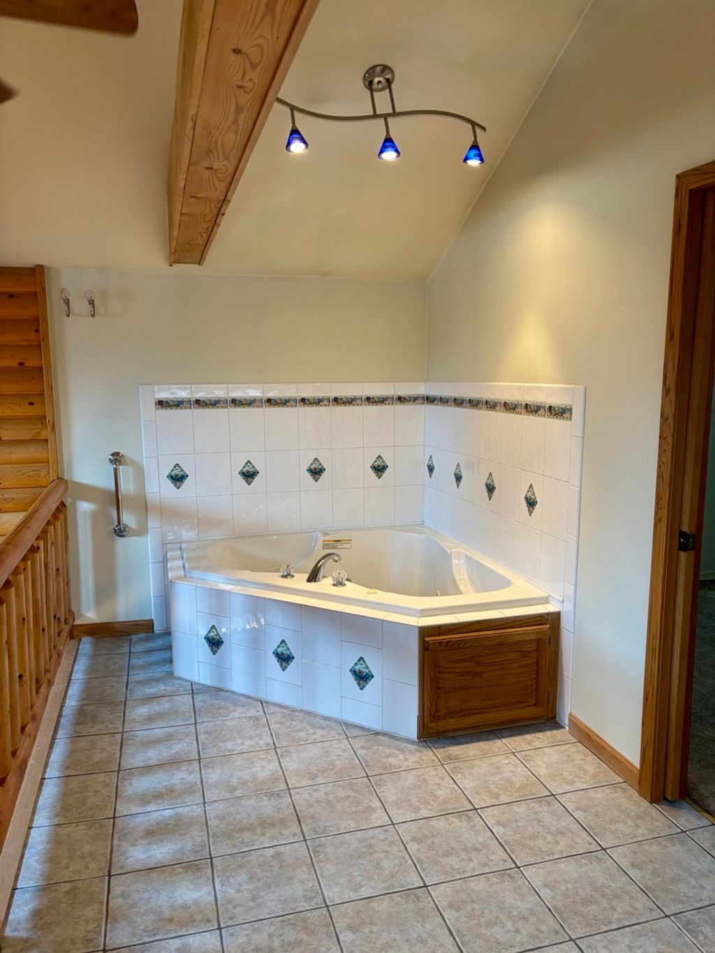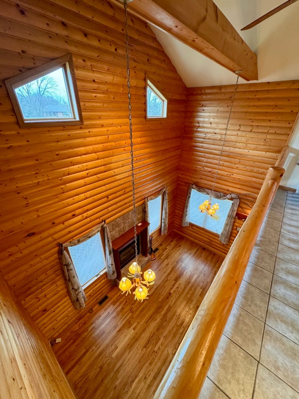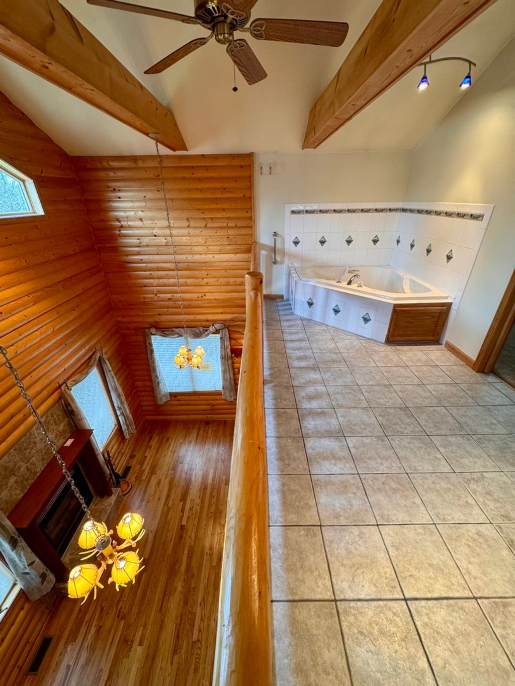 Rare custom end-unit blends open-concept living with cozy soul of a log cabin retreat. The massive family room addition impresses with soaring vaulted ceilings and a warm gas fireplace. This one-of-a-kind sanctuary offers unmatched character and spacious, light-filled interiors. Dining room, living room, kitchen and main floor bath with shower. Second floor features two nice size bedrooms, loft with jacuzzi hot tub just off master bedroom, plenty of space for a private sitting room or office, plus a full bath. full basement offers so much potential. The rear has a screened porch and deck. A true must-see!
