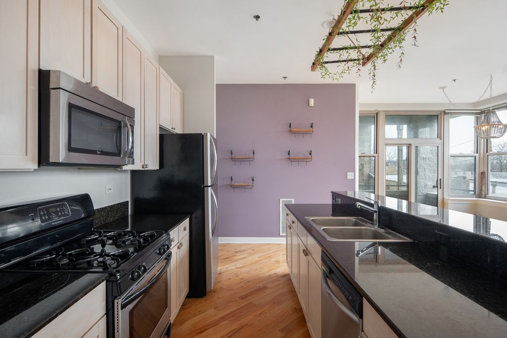 Welcome to 3113 W Lawrence Ave Unit A302, a bright and beautifully maintained 2 bed/2 bath corner unit in a boutique elevator building in Albany Park. This spacious home features abundant natural light, and an open-concept layout ideal for everyday living and entertaining. The living room offers a gas fireplace and sliding doors to a covered balcony. Kitchen includes stainless steel appliances, granite countertops, and breakfast bar. Spacious primary suite features walk-in closet and en suite bath with double vanity and whirlpool tub. Well-sized second bedroom offers flexibility for guests or home office. Additional highlights include in-unit laundry, great storage, and heated garage parking. Elevator building with secure entry/intercom. HOA includes Google Fiber internet. Pet friendly. Unbeatable Albany Park location just 2.5 blocks to the Brown Line and moments from neighborhood favorites including restaurants, parks, and local shopping offering the perfect blend of convenience, charm, and community.