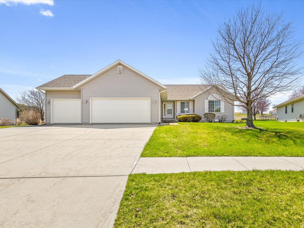 Charming COUNTRYSIDE ranch home with a desirable split-bedroom floor plan AND 3-CAR GARAGE, offering both comfort and privacy! This well-maintained property features a spacious 3-car garage and BACKS UP TO THE OPEN COUNTRYSIDE, providing peaceful views and added seclusion. Step inside to find VAULTED CEILINGS and a warm, inviting living room with a cozy gas FIREPLACE. The primary suite offers a private retreat with a large walk-in closet and an en-suite bath featuring a step-in shower. The full lower level offers excellent potential with plenty of space to finish for additional living, recreation, or storage-bring your ideas and create the space you've been dreaming of! Enjoy the convenience of first-floor laundry and numerous recent updates, including new luxury vinyl plank (LVP) flooring, a roof (2022) with a 30-year warranty, furnace (2025), new garbage disposal, updated exterior lighting, and a smart thermostat for modern efficiency. This move-in ready home combines functionality, comfort, and scenic surroundings-don't miss your opportunity to make it yours!
