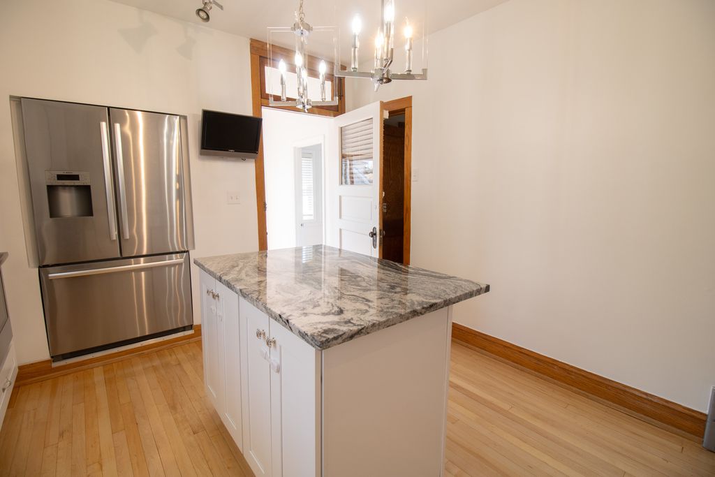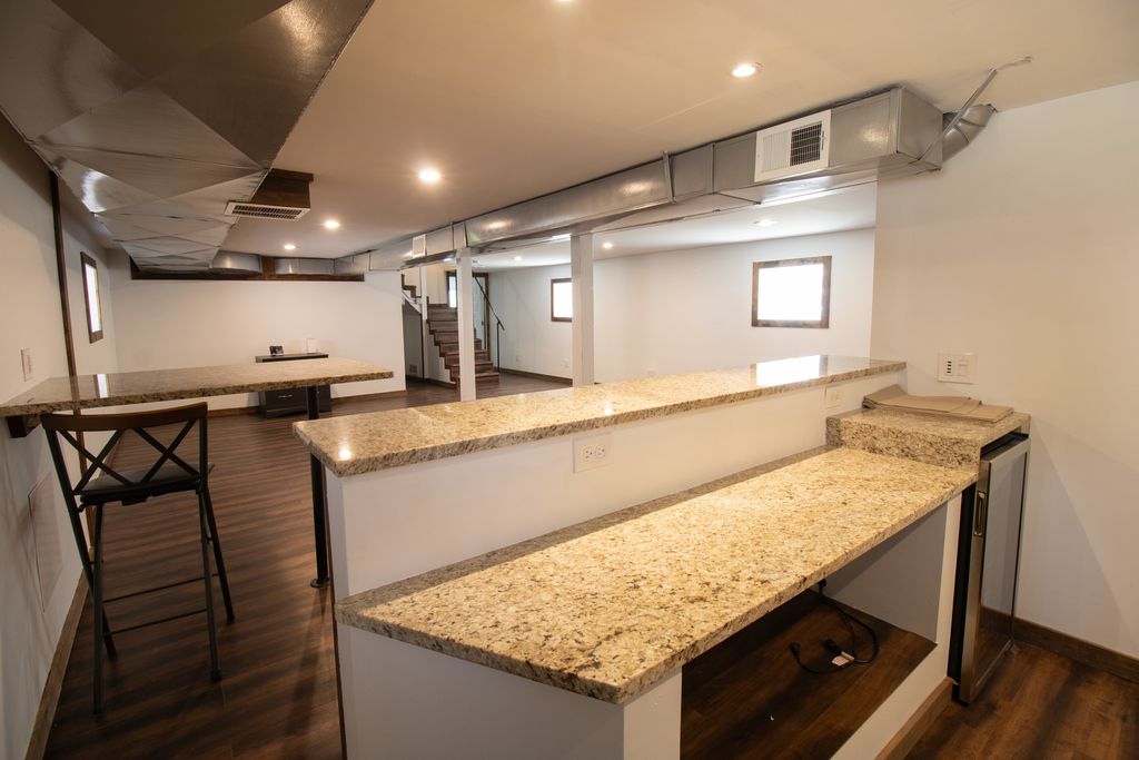 Charming brick bungalow in Berwyn's prestigious Proksa Park neighborhood, thoughtfully updated while preserving its timeless character. This home features a stunning chef's kitchen equipped with Bosch appliances, high-end white cabinetry, sleek granite countertops, and a wall-mounted TV-perfect for both everyday living and entertaining. Freshly painted throughout, the interior showcases beautifully refinished hardwood floors and updated bathrooms designed with a spa-like feel. The finished basement offers additional living space complete with a wet bar, ideal for hosting guests or relaxing. Major improvements include thermopane windows, recently installed overhead sewers, and a drain tile system for added peace of mind. Step outside to a spacious, newly built deck-perfect for gatherings-overlooking an oversized yard with a convenient side drive. A truly unique home blending charm, modern upgrades, and functional living space.