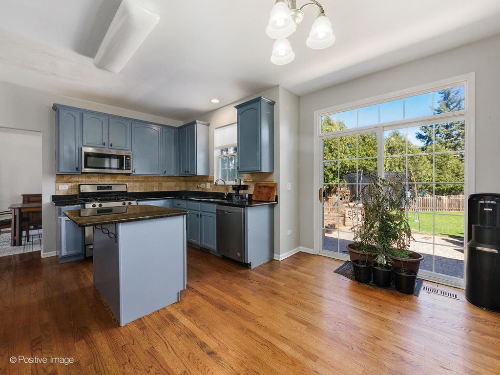 Move-in ready home in highly desirable Timber Creek, perfectly located across from a park. Step into a light-filled two-story foyer with hardwood floors and an open, functional layout ideal for everyday living and entertaining. Spacious formal living and dining areas flow into an updated kitchen featuring freshly painted cabinetry, granite countertops, stainless steel appliances, island, and pantry. Breakfast area overlooks the backyard, bringing in great natural light. Large primary suite offers a huge walk-in closet with custom shelving and a private ensuite with double sinks, separate shower, and soaking tub. Three additional bedrooms share a well-appointed hall bath. Fully finished basement adds serious value with a rec room, 5th bedroom or gym, wet bar with custom cabinetry, fireplace, full bathroom, finished storage, and a dedicated home office setup. Fenced backyard features an oversized brick paver patio with built-in fire pit-perfect for entertaining. Professionally landscaped with sprinkler system. Major updates include roof, gutters, siding, and exterior paint (2019), sump pump (2018), and new washer and dryer (2025). Located in award-winning District 204 schools: Spring Brook Elementary, Gregory Middle, and Neuqua Valley High School.