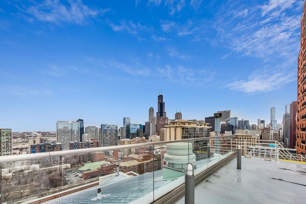 Experience refined city living in historic Burnham Plaza, perfectly positioned where the Loop meets the South Loop. This expansive 2-bedroom, 2-bath residence offers 1,500 square feet of thoughtfully designed space and unobstructed city views. The chef's kitchen features flat-panel cabinetry, stainless steel appliances, custom tilework, and a walk-in pantry with in-unit washer/dryer. The generous living room and adjacent dining area offer excellent living and entertaining space, while a dedicated office nook includes built-in cabinetry, desk, bookcases, and exposed brick ideal for today's work from home lifestyle. The light-filled primary suite boasts southern exposure, a professionally organized walk-in closet, and an updated en-suite bath showcasing Scalamandre wallpaper. A private second bedroom provides flexible space, a large walk-in closet, and convenient access to a refreshed full bath with white ceramic tile and a new vanity. A welcoming foyer entry leads to a functional split-bedroom floor plan with neutral carpet, custom south-facing window coverings, and fresh paint-truly move-in ready. A prime garage parking space in the attached 9th Street garage is also included. Burnham Plaza delivers a full suite of amenities including 24/7 door staff, secure entry, multi-tier rooftop decks with sweeping lake and skyline views, hot tub, sauna, community and party room, a newly renovated fitness center, laundry facilities, package room, on-site management, and dry-cleaning services. Enjoy effortless access to the lakefront, Grant and Millennium Parks, museums, Soldier Field, top universities, dining and shopping at Roosevelt Collection, and everyday conveniences including Trader Joe's, Whole Foods, and Target-plus excellent transit and expressway connectivity. A perfect blend of old and new in the very best location!