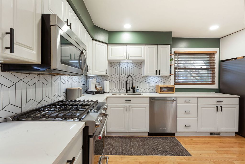 Welcome home to this tastefully updated ranch in Winston Knolls! The well-appointed kitchen features newer quartz countertops, breakfast bar with beverage fridge and stainless-steel appliances opens up to the spacious living room. The dining room features built in shelving. Large family room is perfect for entertaining with electric fireplace and sliding door that leads to the backyard. Three large bedrooms including primary bedroom with updated ensuite bathroom and loads of closet space. Updated hall bath. Hardwood floors throughout the home. The backyard is an outdoor oasis with a large deck, mature trees and landscaping and shed for all your storage needs. Whiteley, Jefferson and Fremd Schools! Easy access to Metra and I-90, Close proximity to neighborhood parks, walking/biking trails, forest preserves and Woodfield are shopping. Quick drive to downtown Palatine. Schedule your showing today!