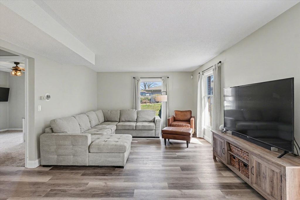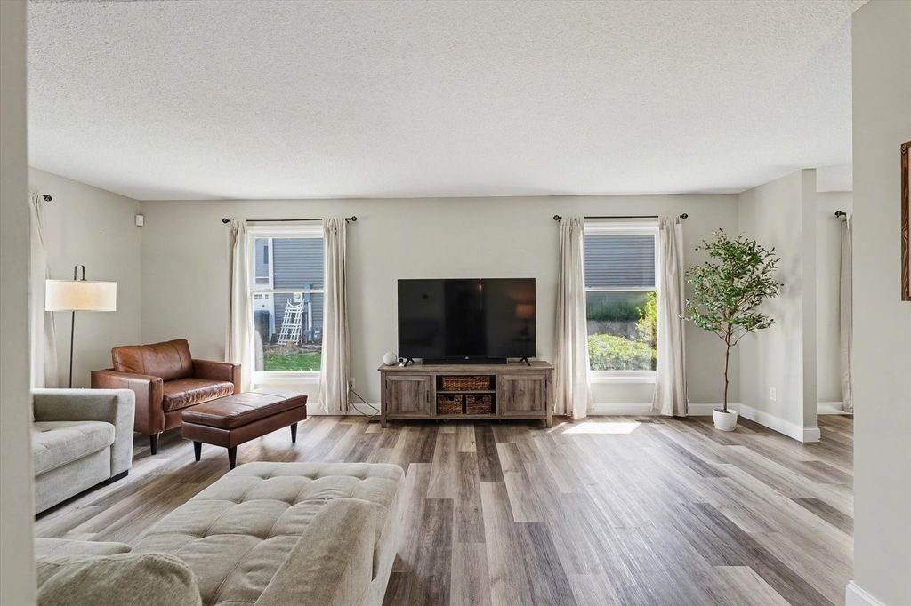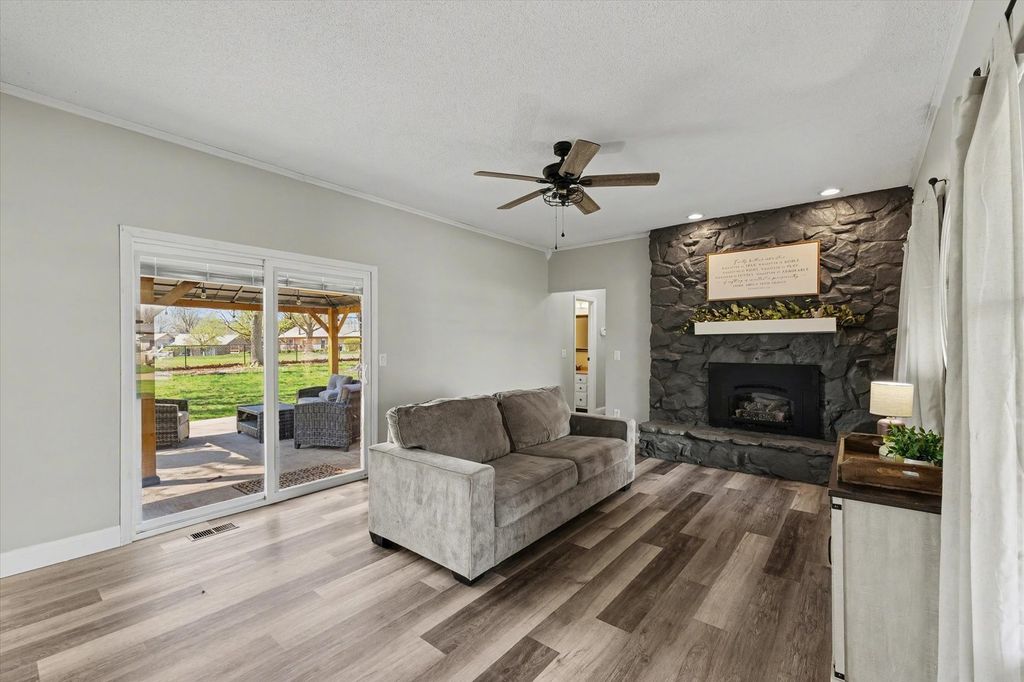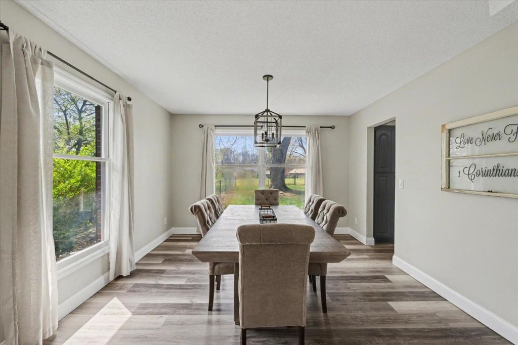 This beautiful 4 bedroom, 2.5 bath home in Denvale West Subdivision is situated on a lovely lot with mature trees and views of nature right in your backyard. The main level features both a living room and family room, as well as the kitchen and formal dining room. You will also find a half bath, laundry room, and bonus room that could be used as an office/playroom/reading nook. Upstairs there are 4 bedrooms and two full bathrooms. The primary bedroom includes a walk-in closet and a full bath with new light fixtures, faucets, mirrors & wainscotting. This home is complete with a 2.5 car attached garage. In the fully fenced backyard you will find a patio with a pergola, making it a great area to relax and entertain. From the backyard you also have views of the 5-acre neighborhood park with paved walking paths. The subdivision also has tennis, basketball & pickle ball courts. This inviting subdivision has something for everyone. Don't miss this wonderful home!