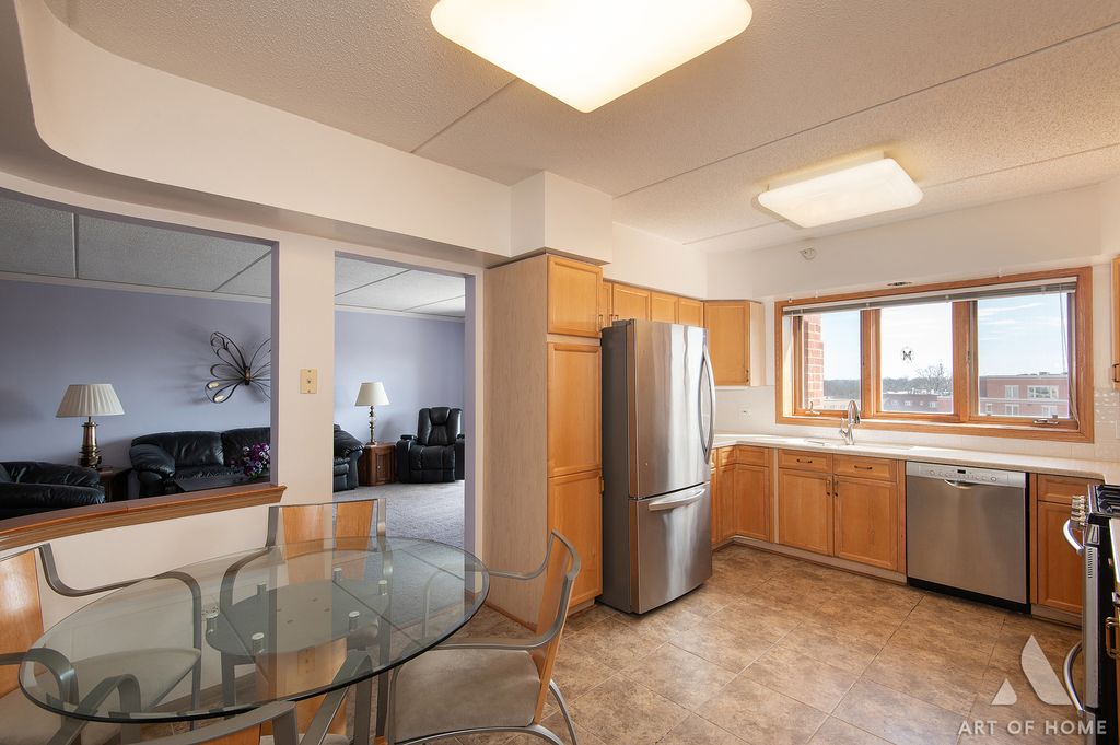Bright and spacious, this 2-bedroom, 2-bath home offers the perfect blend of comfort and opportunity. Enjoy an expansive, sun-filled living room with eastern exposure, a separate dining room for easy entertaining, and a cheerful eat-in kitchen with stainless steel appliances and a cozy breakfast area. The primary suite features a walk-in closet, additional closet space, and a private bath with both a tub and separate shower. Recent updates include a newer A/C unit, kitchen appliances and the bedrooms windows. Set in a well-kept elevator building with landscaped grounds, a fountain, and seating area, all just minutes from the Metra, Pace bus, shopping, and dining. Heated garage parking (near elevator) and a private storage unit directly in front of the space are included. Assessment covers heat and water for added value.A fantastic opportunity to move right in or make it your own-homes with this space, layout, and location don't last long.
