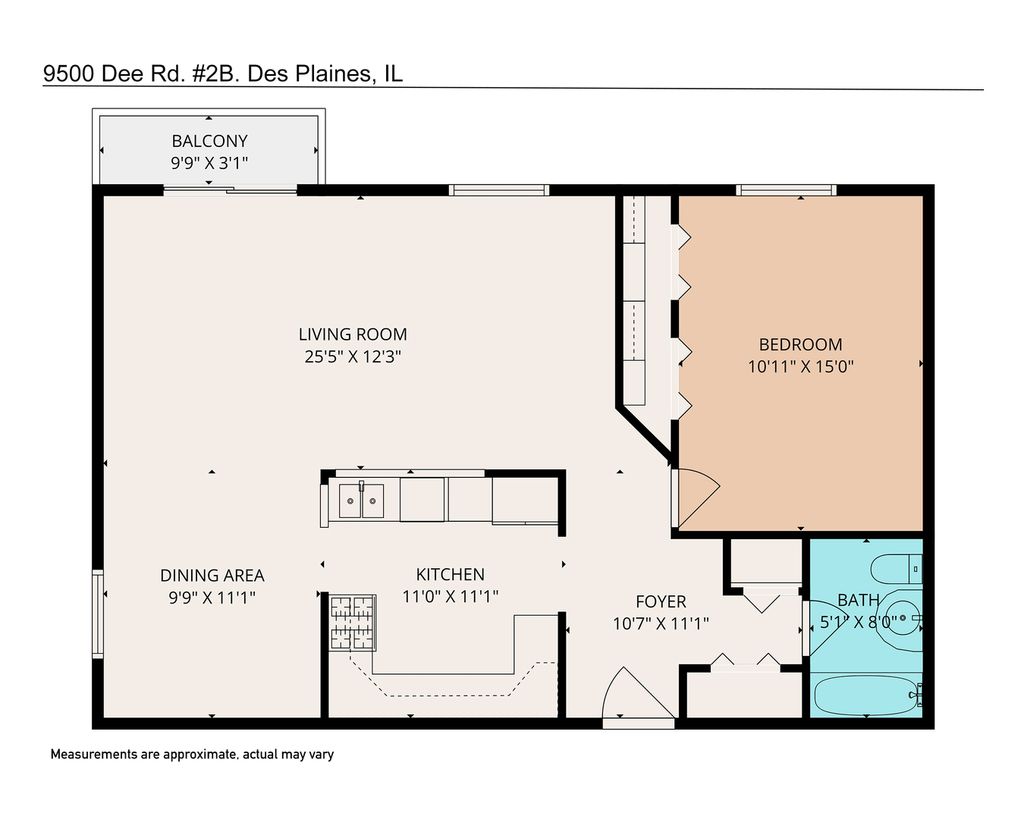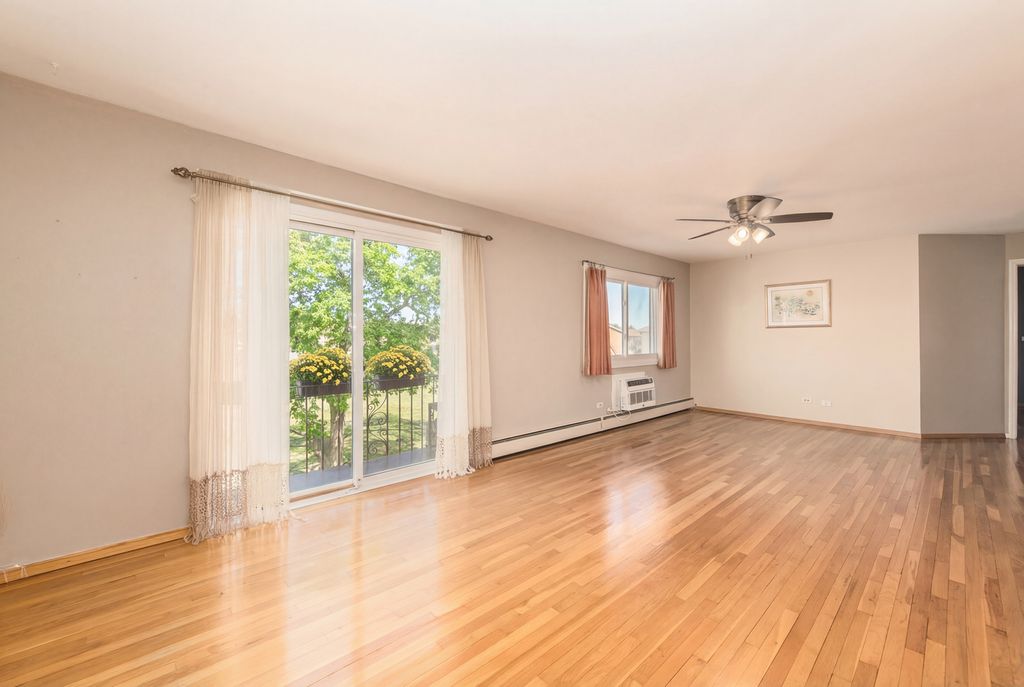 Fully renovated second-floor corner condo for sale in Des Plaines, located in the desirable Coventry Place community. This move-in-ready condo offers privacy, an open-concept layout, and a private north-facing balcony overlooking a beautifully maintained green area. The flexible floor plan is currently configured as a one-bedroom, one-bathroom unit and can easily be converted into two or even three bedrooms, as many condos in the complex and surrounding area have done. Ideal for first-time buyers, or downsizers looking for versatility and long-term value. The updated kitchen features granite countertops, newer stainless steel appliances (2024), a wine fridge, reverse osmosis water system, and ample cabinet space, opening directly into the dining and living areas. The open layout makes entertaining effortless, with the dining area centrally located. THE DINING SET IS INCLUDED IN THE PRICE AT NO ADDITIONAL COST. Hardwood floors run throughout the main living areas. The bedroom offers multiple closets for excellent storage. The private bathroom features modern finishes and generous cabinet space. Laundry and additional storage are conveniently located just outside the unit on the main floor. This Des Plaines condo is close to shopping, dining, Metra rail lines, major highways, O'Hare International Airport, and downtown Chicago, making commuting and travel easy.