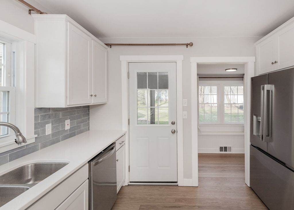 This thoughtfully updated two-story home in East Davenport offers a blend of modern updates and timeless character, with spaces designed for everyday living and gathering. Extensive improvements throughout provide comfort and functionality, including updated siding, gutters with guards, insulation, an electrical panel, plumbing, and new durable, waterproof hardwood flooring with cabinetry-grade subfloor and porcelain tile accents in the entry and hearth room. The kitchen is both stylish and practical, featuring Aristokraft cabinetry, quartz countertops, and a full suite of new appliances, including a brand-new counter-depth LG refrigerator, ideal for preparing meals and connecting with others. Just off the kitchen, a dining nook with built-in bench seating creates a comfortable space for a variety of uses. Multiple living areas, including a finished basement, offer flexibility for work, hobbies, or relaxation. The basement also includes waterproofing, new windows, an additional washer/dryer area with a utility sink, and a radon mitigation system. Upstairs, the conveniently located stacked washer/dryer hook-ups add ease to daily routines. Throughout the home, details like wainscoting add character and charm. Outdoor spaces provide additional opportunities to enjoy the property, including a screened and covered porch off the hearth room with a ceiling fan and fireplace feature, well-suited for a range of activities. The spacious backyard and the 28-foot-deep garage offer extra room for storage or equipment. Additional updates include renovated bathrooms and a sewer line that has been inspected and cleaned. Several trees have been removed to accent the spacious backyard. Two trees are set up for a possible zipline if so desired. A move-in-ready home with extensive updates and flexible living spaces.