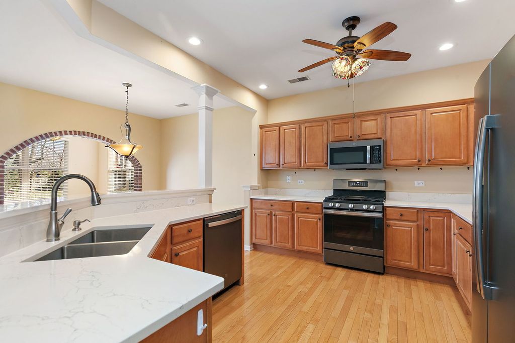 12216 Latham Trail in Huntley invites you to experience the best of Del Webb Sun City-a vibrant, golf cart-friendly community designed for those who crave an active and fulfilling lifestyle. This sought-after neighborhood is packed with world-class amenities, including a sprawling clubhouse, state-of-the-art fitness center, multiple pools, tennis courts, and scenic walking trails. Whether you're enjoying a round of golf, a neighborhood stroll, or a social event, every day feels like a getaway. ***** The 2-bedroom, 2-bathroom home itself is equally impressive. It boasts a versatile office space perfect for creative pursuits, while the sunroom-awash in natural light-offers a cozy retreat for morning coffee or quiet afternoons. The kitchen is a culinary dream, featuring rich maple cabinets, stunning Quartz countertops, and sleek black stainless steel appliances. ***** Step outside to your private outdoor haven: a HUGE patio with a charming pergola and half wall, creating an ideal setting for entertaining or unwinding in style. 12216 Latham Trail isn't just a home-it's your gateway to the unparalleled lifestyle of Del Webb Sun City. Ready to embrace it?