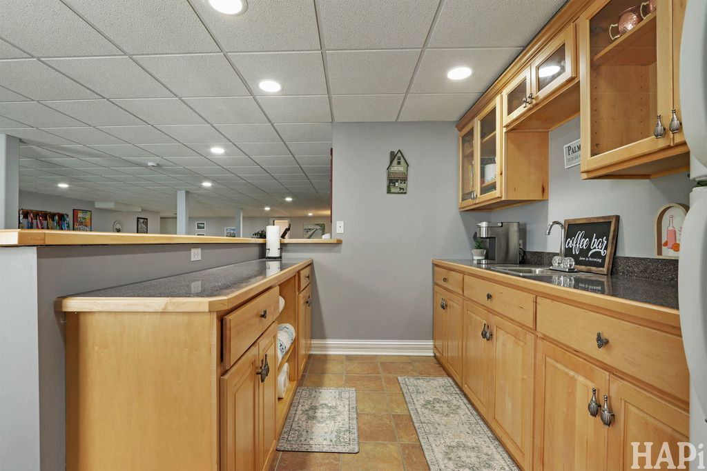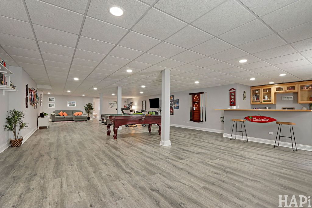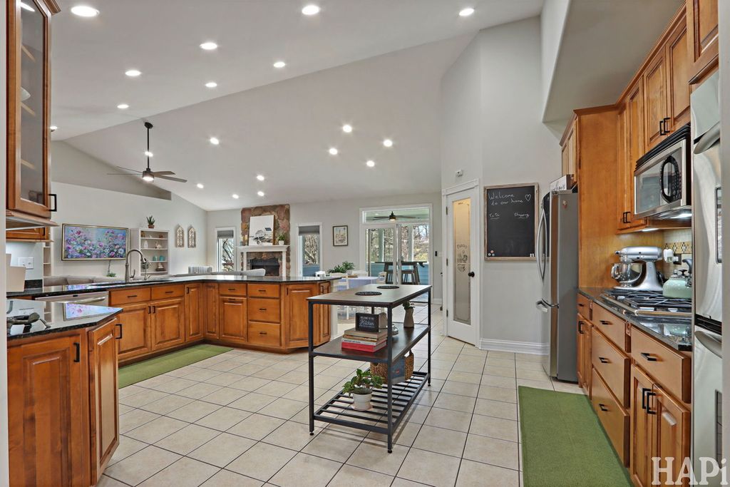 Stunning custom ranch offering spacious, open-concept living in a sought-after neighborhood! You'll be impressed the moment you arrive-this home has been beautifully updated and meticulously maintained. The welcoming front porch is the perfect spot to sit and relax. The expansive kitchen is a true standout, ideal for both entertaining and everyday living, featuring abundant cabinetry, a pantry, and plenty of space for multiple cooks. It flows seamlessly into the inviting living room, where a cozy fireplace creates the perfect ambiance for relaxing evenings or hosting guests. Enjoy the privacy of a desirable split-bedroom layout. A versatile formal dining room offers flexibility and can easily be adapted to suit your lifestyle. The main-floor den/office, complete with double doors and closets, provides an excellent option for a fifth bedroom if needed. The main-floor laundry room has been beautifully remodeled with stylish finishes, ample storage, and convenient folding counters. The spacious primary suite offers a relaxing retreat, with a fully remodeled en-suite bath that is truly stunning. It features a custom tile walk-in shower, double vanity, soaking tub, private water closet, and a walk-in closet. Two additional main-floor bedrooms offer generous space and new flooring. The main-floor bathroom has also been completely remodeled and features a tiled walk-in shower. The fully finished basement expands your living space with a large recreation area, bar, workout space, pool table, additional bedroom, full bath, and ample storage-perfect for entertaining or multi-generational living. Step outside to your private backyard retreat, complete with a three-season room, deck, and fenced-in yard-ideal for enjoying peaceful mornings or evening gatherings. 3 car attached garage. Additional updates include a freshly painted exterior, refinished deck, interior painting, a new water system with reverse osmosis, and gutter guards. This home truly offers the perfect blend of space, style, and thoughtful updates-ready for you to move in and enjoy.