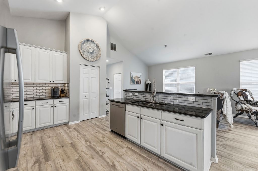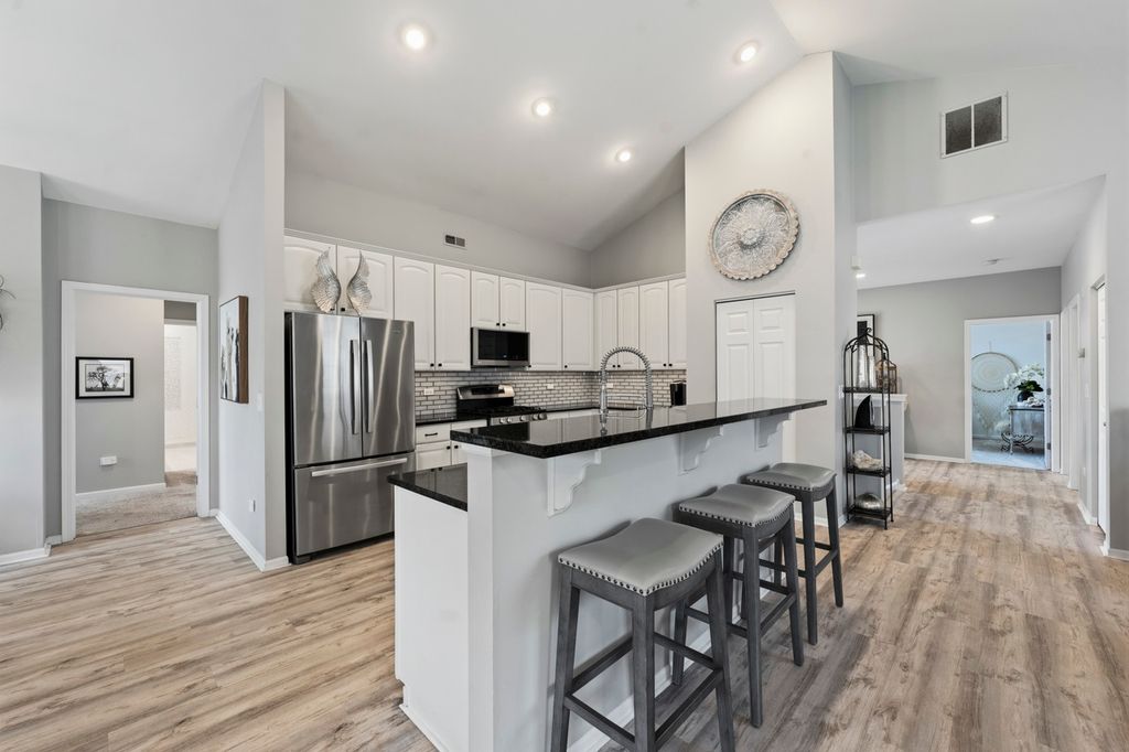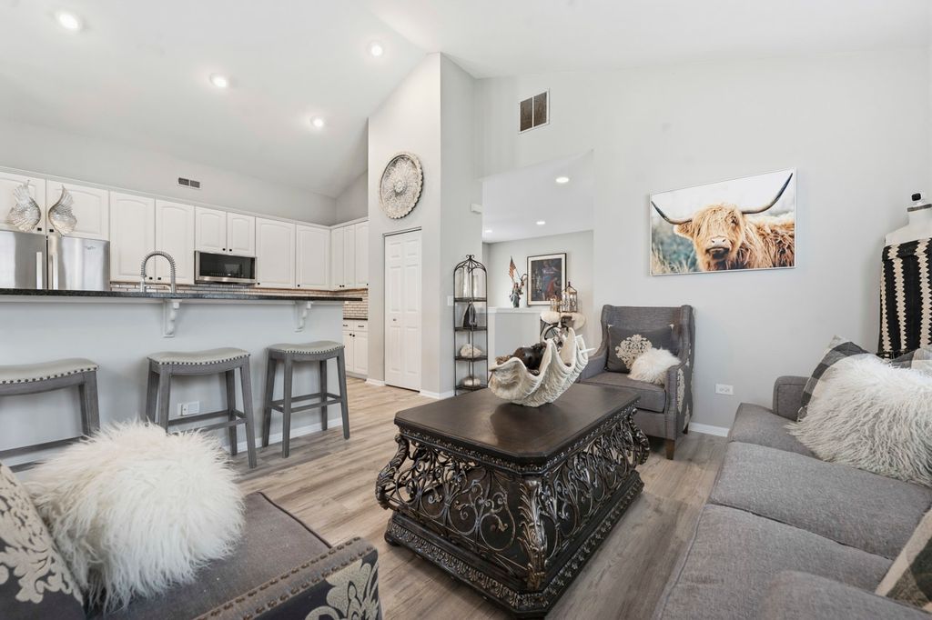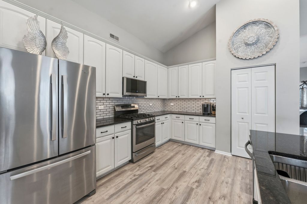 "Stunning!" This beautifully updated top-floor condo has been professionally renovated within the past five years and lives like a ranch, offering over 2,000 square feet and an open-concept layout-perfect for both everyday living and entertaining. The kitchen and living areas feature gleaming luxury vinyl flooring and soaring vaulted ceilings. The chef's kitchen is equipped with 42" cabinetry, an oversized island, granite countertops, and stainless steel appliances. The spacious primary suite includes a sitting area and a luxurious en-suite bath with a custom shower, double vanity with quartz countertops, and striking herringbone flooring. A custom closet system enhances the primary walk-in closet. The second bedroom is thoughtfully positioned on the opposite side for added privacy. A versatile loft provides the ideal space for a home office or library. The laundry room includes a full-size washer and dryer with additional storage. The attached two-car garage offers a storage closet and convenient direct access. Bonus: exterior 10 x 10 storage area. Detailed upgrades are available in Additional Information. Stonegate West provides an exceptional, low-maintenance lifestyle with outstanding amenities, including a beautiful clubhouse with a full kitchen, party room, exercise room, game room/library, outdoor pool, and sundeck-all surrounded by scenic walking paths, lakes and parks. Great convenient location near I-88, Metra, vast shopping and dining. You will love where you live!