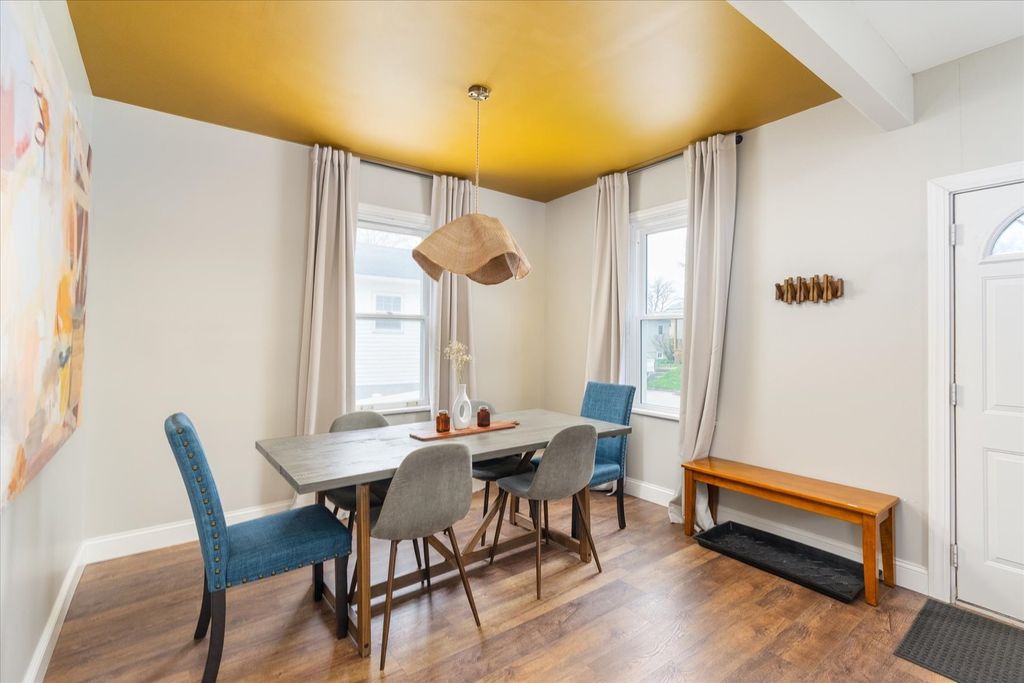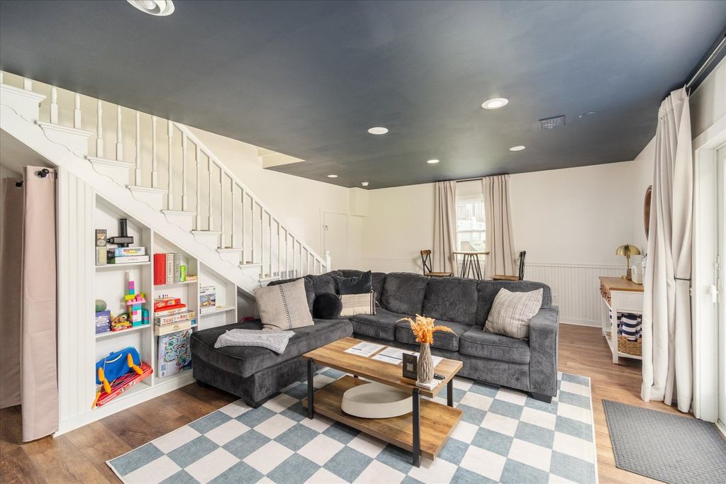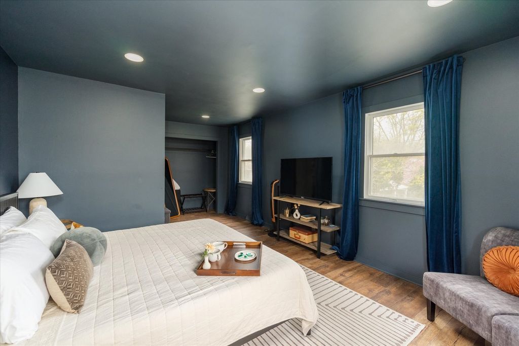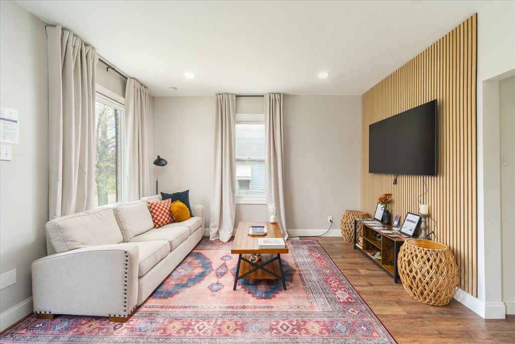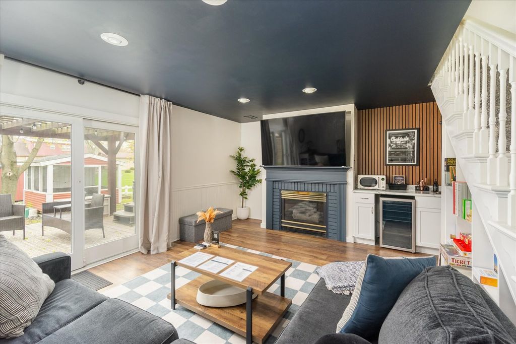 Turnkey Short-Term Rental or Move-In Ready Home - 1604 Sobieski is a beautifully updated brick home offered fully furnished and decorated - ready to operate as a short-term rental from day one or transition seamlessly into a comfortable single-family residence. The curb appeal sets the tone: classic red brick, a new roof (2022), new driveway (2022), new water heater (2023), and a rebuilt front porch welcome you home. Inside, the main level features an open living room with LVP flooring, recessed lighting, and a wood slat accent wall. The fully updated kitchen offers white shaker cabinets with glass uppers, marble-look countertops, subway tile backsplash, and stainless steel appliances. A separate dining room with designer lighting and a bold accent ceiling adds character throughout. The spacious primary suite upstairs impresses with dual windows, recessed lighting, a generous closet, and its own private bathroom featuring a tiled shower and warm gold fixtures. Two additional bedrooms are thoughtfully styled and well-appointed, served by a beautifully updated full bathroom with a pressed tin ceiling, pedestal sink, and antique brass sconces. The walkout lower level is a standout feature - a sprawling entertainment room with a fireplace, built-in wet bar, beverage fridge, and sliding glass doors that open directly to the backyard. Outside, a large pergola deck with Edison lighting, a hot tub, a screened all-season structure, and a storage shed complete an impressive outdoor setup. Schedule your showing today!