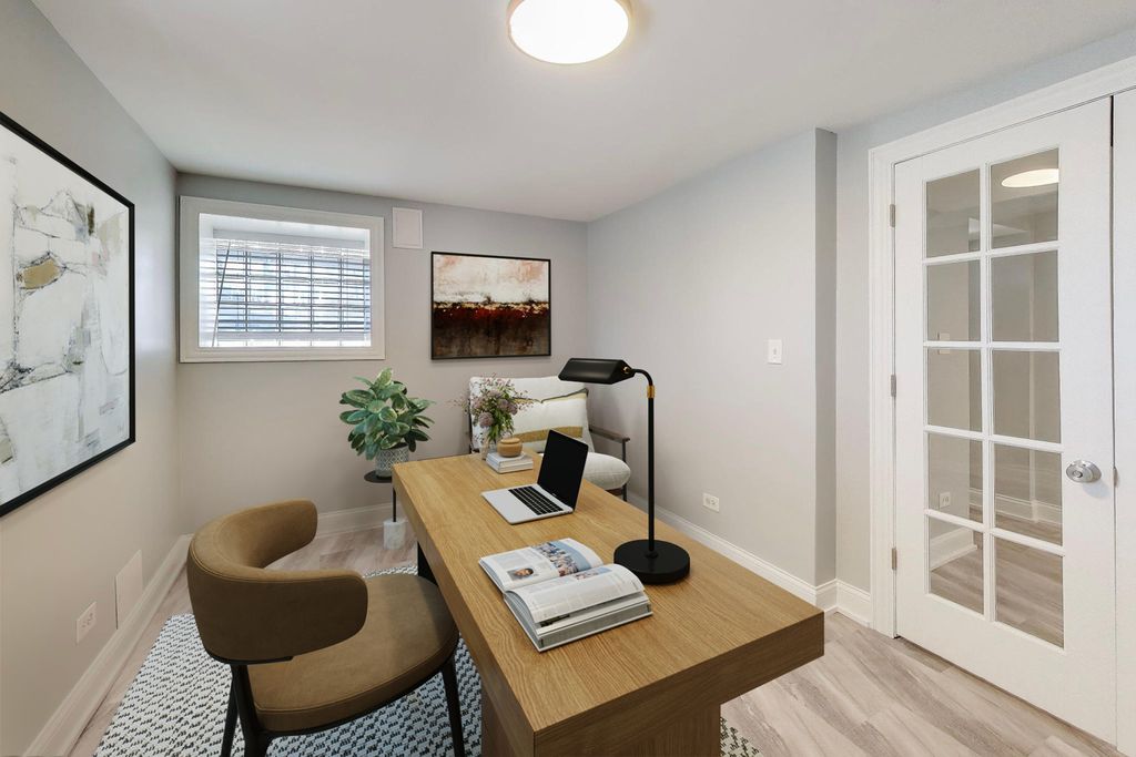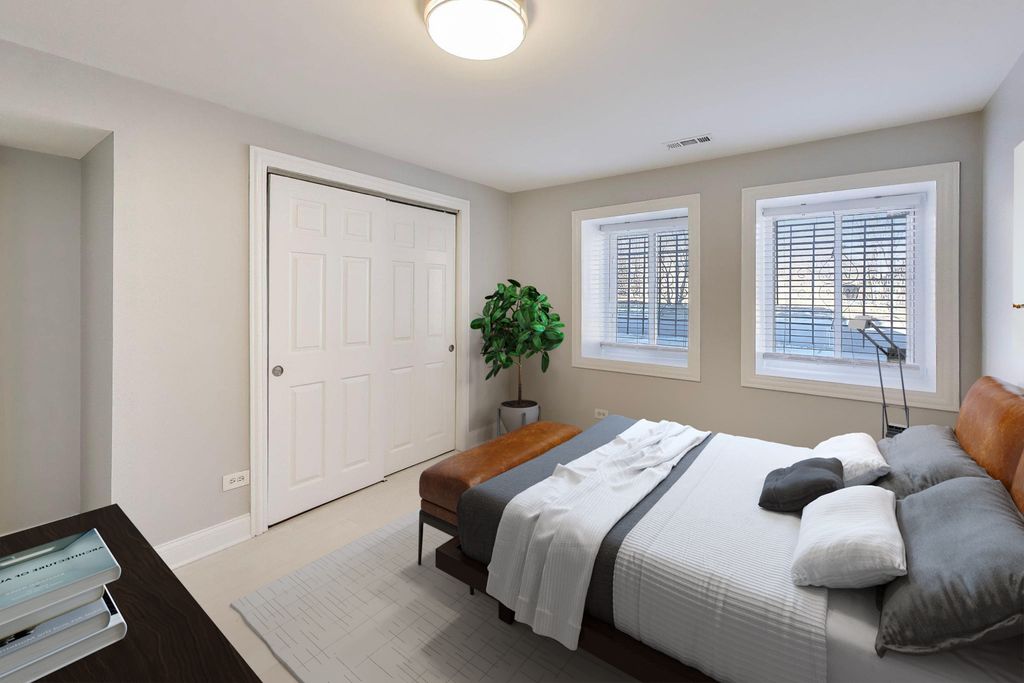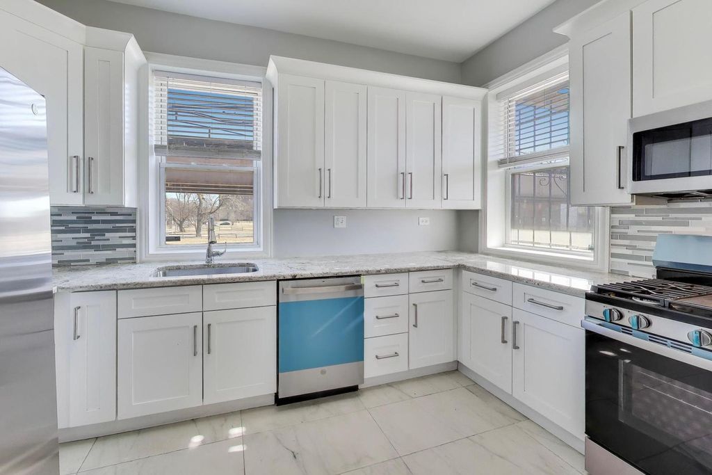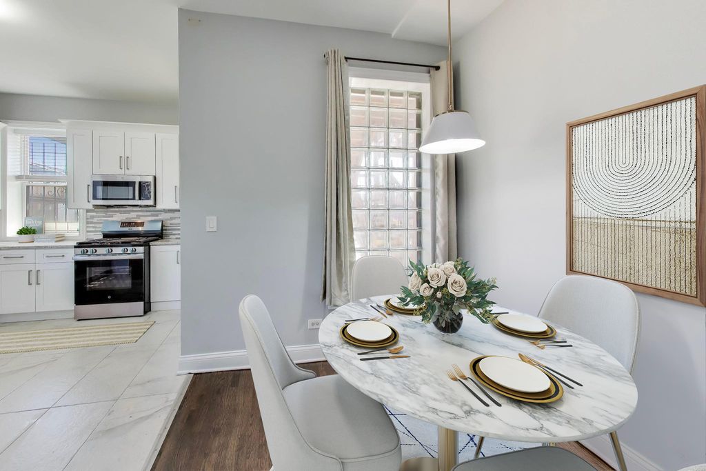 Move right into this spacious and beautifully updated duplex down, offering 3 bedrooms, 2 bathrooms, a dedicated office, and parking. Ideally located near Hyde Park, University of Chicago, and the vibrant Bronzeville neighborhood, this home sits on the border of West Woodlawn in a highly desirable location. This unique residence features nearly 2,000 square feet of living space across two levels, thoughtfully updated with modern, neutral finishes. Expansive rooms with rich hardwood flooring create a warm and inviting atmosphere throughout. The sun-filled living room is perfect for entertaining, complete with high ceilings, elegant crown molding, and a decorative fireplace. The updated kitchen boasts crisp white cabinetry and brand-new stainless steel appliances, blending style and functionality. The generously sized primary bedroom is conveniently located on the main level. Downstairs, you'll find two additional well-proportioned bedrooms, a versatile office space, and a dedicated laundry room-ideal for comfortable everyday living. Enjoy close proximity to shopping, dining, the future Barack Obama Presidential Center, University of Chicago Medical Center, and the scenic Washington Park. A true South Side gem-don't miss this exceptional opportunity!