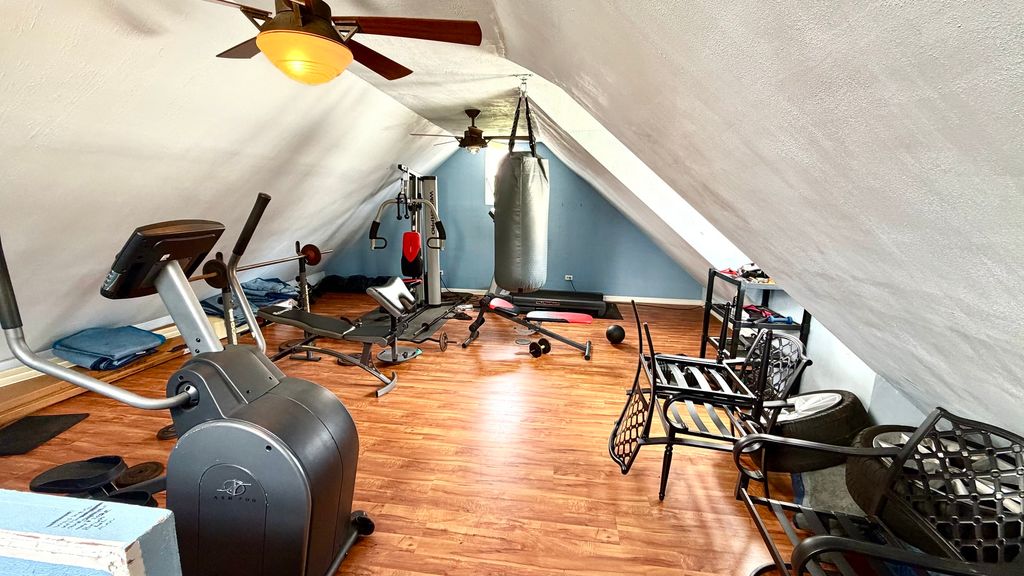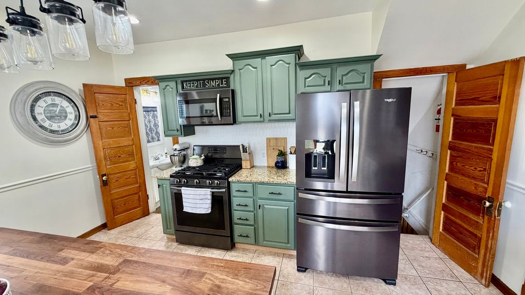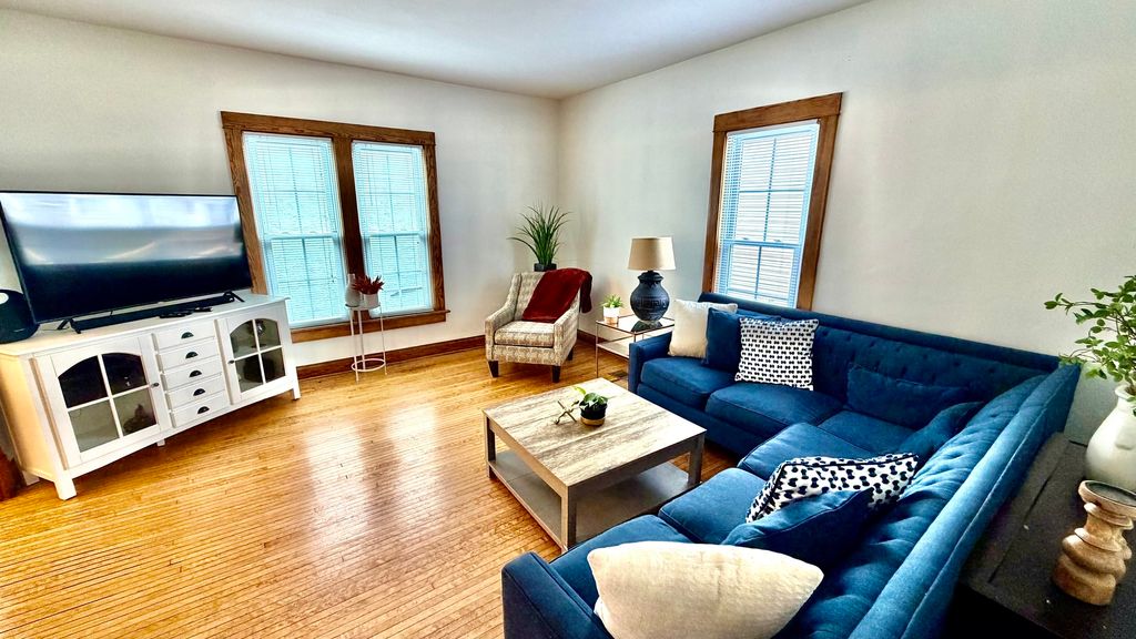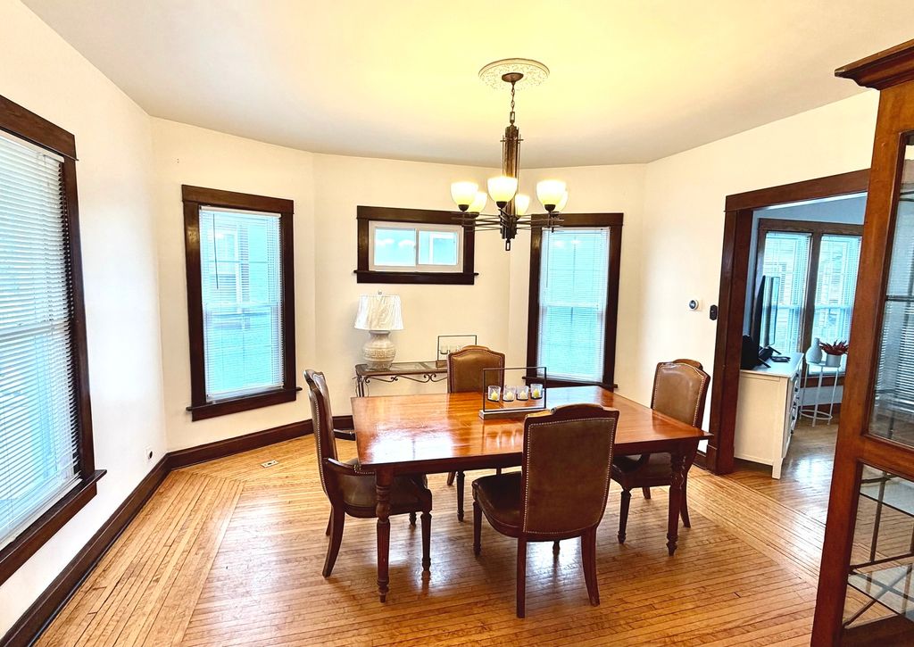 Beautiful and well-maintained two-story home full of character and modern updates. This charming property features stunning original woodwork, hardwood floors throughout, and spacious living and dining areas. The updated kitchen offers granite countertops, stainless steel appliances, and a large island perfect for cooking and entertaining. Both bathrooms have been tastefully updated, blending modern touches with classic charm. Upstairs you'll find generously sized bedrooms with a warm and inviting feel. The home also includes a cozy living room and a formal dining room ideal for gatherings. Step outside to enjoy a large deck perfect for entertaining and a fully fenced yard. The detached garage offers additional storage and a finished attic space currently used as a home gym, providing a versatile area. Recent updates include:New roof (2024), kitchen updates (2025), second-floor bathroom updates (2022), first-floor bathroom refresh (2026), upstairs flooring (2022), deck (2020), and front stairs (2026). All appliances, including washer and dryer, are included. This move-in ready home offers space, charm, and functionality don't miss this opportunity!