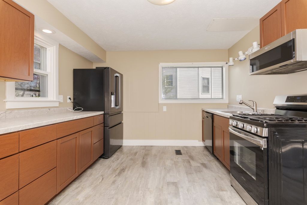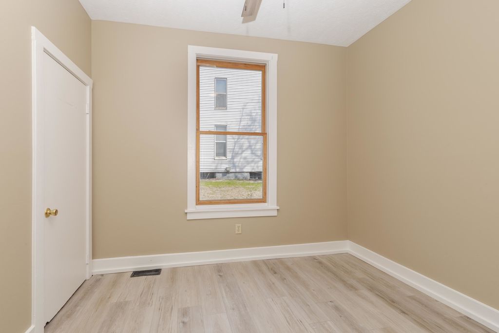 Location, Location, Location. Updated three-bedroom, two-bathroom home in a prime location-just minutes from IWU and downtown Bloomington. Gorgeously renovated and move-in ready, this home features an open main level with an updated kitchen, main-level laundry, spacious family room, dining area, a bedroom with built-ins, and a full bathroom. Upstairs, you'll find two additional oversized bedrooms with walk in closets and a second full bathroom. The full basement offers ample storage. Recent updates include new flooring throughout (2026), freshly painted 2026, a fully renovated kitchen with new cabinetry (2022), upgraded appliances including a gas stove (2022), a new furnace (2011), central air installation (2017), and a new roof (2019). Information deemed reliable but not guaranteed.