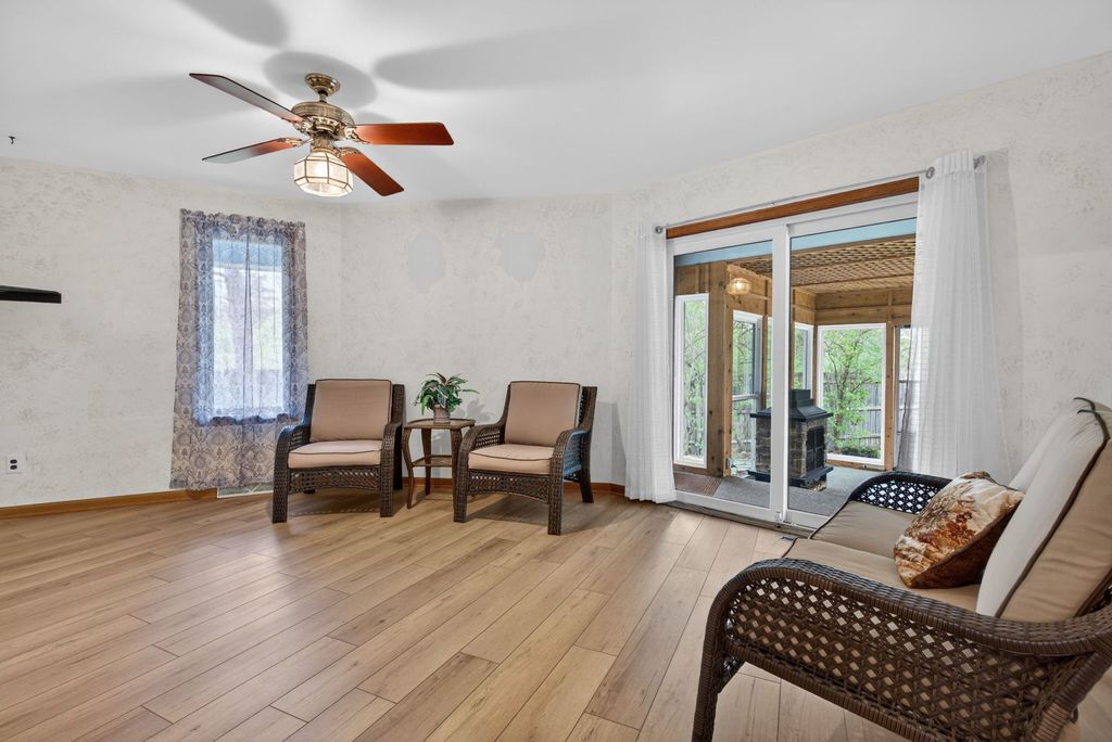 Welcome to Goose Lake living! This rare architectural decagon house design features ten exterior sides. Four bedrooms, three baths and character at every angle. Rooms are designed for comfort and conversation. Enjoy evenings in your sunroom that features a fireplace looking out to your beautifully landscaped yard. Wait till you see the workshop/hobby room above the garage perfect for all your projects. Call YOUR REALTOR today! Must see home! Due to the unique design the room measurements are estimated. Floor plan is available in the pictures.