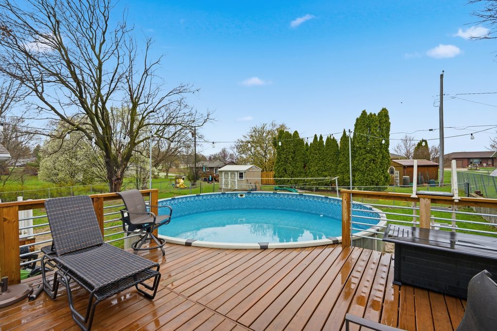 Beautifully updated ranch in the highly sought-after Orion school district, offering rural living just 15 minutes from the Quad City Airport. The reimagined floor plan features a welcoming great room and open-concept layout with a spacious family room, electric fireplace, and mounted TV. The updated kitchen is a standout with a massive marble island, perfect for entertaining. Main level includes a private primary suite with dual custom closets & bathroom vanity, and a tiled shower. Main level has 2wo additional bedrooms with modern open wardrobe-style storage. (One bedroom currently being used as laundry room -Basement laundry hookups still available.) Full bathroom on the main level has been fully updated. Finished basement offers a large rec room, two additional bedrooms with egress windows and individual heating, plus a full bathroom complete with a full shower & urinal. Backyard is built for entertaining with an above-ground pool & wood deck, and plenty of space to enjoy. A move-in ready home with style, space, and convenience!