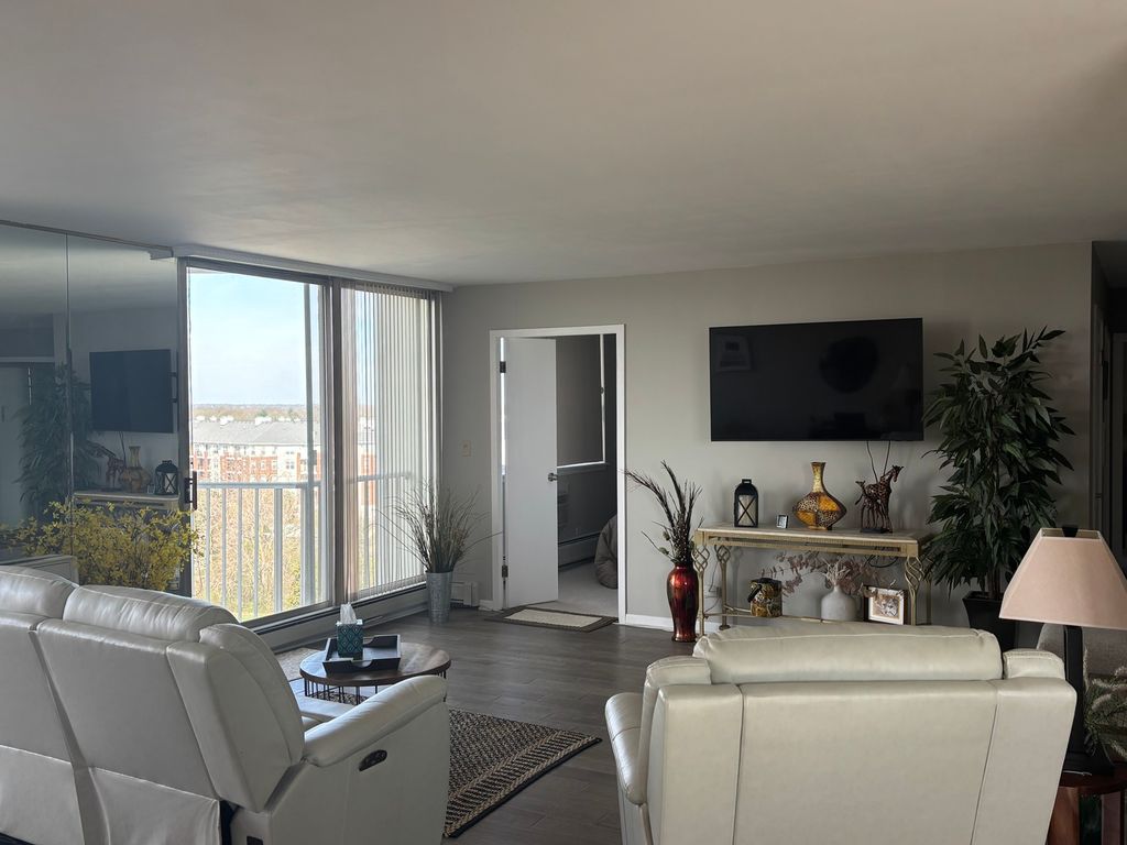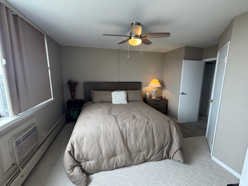 Enjoy Views and amazing Sunsets? Look no further! Approximately 1286 sq ft FURNISHED 2 bedroom 2 full bath Highrise End unit on the 10th floor. 2 Windows facing the south/east and 2 Windows and 2 Sliding doors facing west/north. Enjoy the fabulous sweeping views from the patio. Updated kitchen with stainless steel appliances, cherry stained cabinets, stainless farmers sink, quartz countertops and tile backsplash. Dining area with ceiling fan and stunning view from the window to the south and side view to the west. Large open living area with 2 sliding glass doors walking out to the patio with the spectacular view. Engineered wood floors in the living and dining space. Marble floors in the entryway, hall and kitchen. Large master bedroom with one walk in closet with shelving and one regular closet. Master bath with tub/shower combo, quartz countertops, large mirror and makeup desk. Guest room with newer carpet, a/c, ceiling fan, combo closet and french doors. Guest bath with walk in shower and quartz countertop. Large hall closet with plenty of shelving. Recently updated decor throughout the building. Storage area and bike storage in basement. Garage parking is available but is not required. Beautiful pool for summer fun. Monthly fees cover TV, internet, water, exterior insurance, on site management, hot water heat and storage unit. The owner only pays for Electric. Close to major highways, restaurants and shopping. Take a look you will be pleasantly surprised!! Listing Agent Holds an IL Real Estate License".