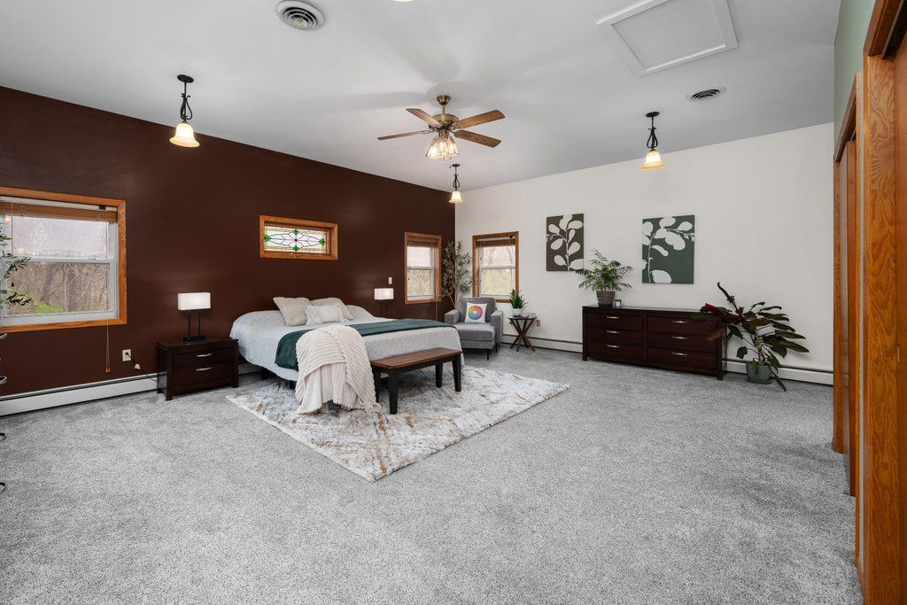WOW!! 2.78 acres of PRIVACY right in the heart of Moline for under $320k!? This is a RARE and unique property that does not come around often! This raised ranch home has FOUR bedrooms (WAIT til you see the size of the primary!), TWO full bathrooms (with an additional toilet & sink in basement laundry room), an attached TWO car garage, and did we mention the 2.78 acre PRIVATE lot?!? This home is absolutely ONE OF A KIND in every way; down to the wood ceilings and beams throughout most of the home, the modern/updated and open concept kitchen, the MASSIVE stone fireplace, the NATURAL LIGHT from the impressive amount of huge windows, and the primary bedroom "wing" that is almost the size of an entirely separate home! This primary includes a 25x14 bedroom size, TWO walk in closets, an en-suite full bathroom, and a bench seating area surrounded by windows! The basement in this home ALSO has a TON of natural light and you do NOT feel like you're in a basement. It is waterproofed, clean, and ready for multiple uses! There is a rec room, 4th bedroom, and laundry down on this level. The lot outside is beautiful; private, large, some landscaping throughout, wildlife everywhere, and a potential outdoor kitchen/patio area with wood burning fireplace! The home has recently had a couple updates like newer poured concrete patio, some fresh paint, and a NEW ROOF in 2021! Don't miss your opportunity to make this unique home yours!!