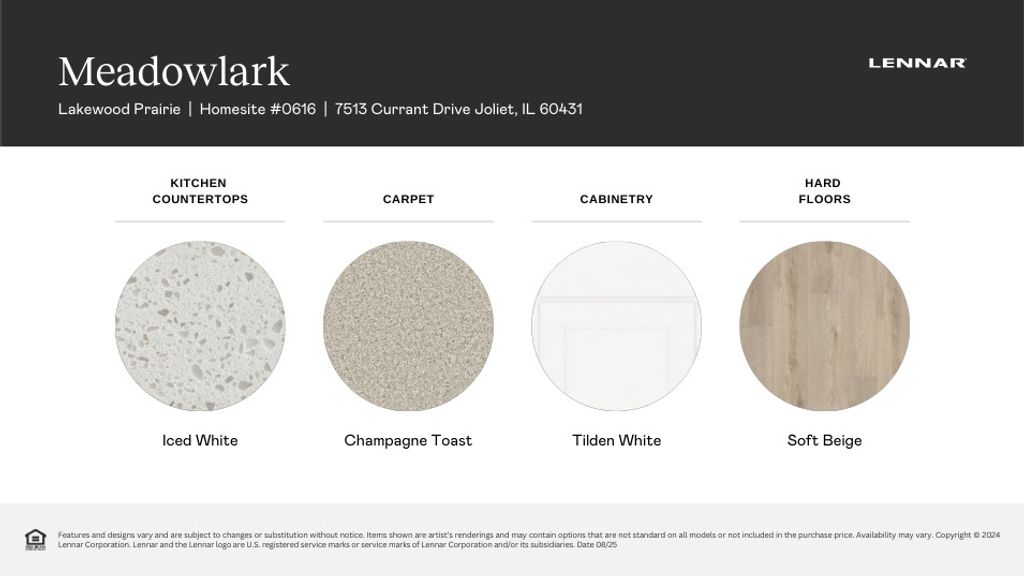 Homesite# 0581 Experience the Meadowlark model, a masterfully designed two-story home combining style and convenience. With three bedrooms, two bathrooms, and a powder room, this home offers the perfect space for modern living. The first floor features a bright, open-concept layout, with a spacious family room, accessible dining area, and an impressive kitchen. The kitchen includes a large island with beautiful countertops, ample cabinetry, stainless steel appliances, and a built-in pantry for added storage. Situated on the second floor, the owner's suite provides a peaceful haven, complete with a walk-in closet and a spa-inspired bathroom with double sinks, a deluxe shower, and high-end finishes. Two additional bedrooms share a full bathroom, and the practicality of a second-floor laundry room enhances the home's livability. The versatile loft and flex space offer endless possibilities for a home office, entertainment area, or extra living space to suit your needs. Throughout the home, thoughtful details like luxury vinyl plank flooring, quartz countertops, LED lighting, and decorative railings enhance both the aesthetic and functionality of every room. E (pic for reference ONLY) *Photos are not this actual home* Welcome to Lakewood Prairie, a vibrant new master-planned community offering beautifully designed new homes in Joliet, Illinois. This thoughtfully developed neighborhood features family-friendly amenities including multi-use trails, a tot lot, and plenty of open green space-perfect for enjoying the outdoors and building a connected community. Situated in the heart of Joliet, Lakewood Prairie offers more than just a place to live-it offers a lifestyle. Joliet is a city rich in history, culture, and recreation, with easy access to world-class entertainment and everyday conveniences. Explore the charm of Downtown Joliet, located along the scenic Des Plaines River. This dynamic and walkable area is filled with local restaurants, boutique shops, and renowned museums. Signature events like the Taste of Joliet festival and the Joliet Christmas Parade bring the community together year-round for celebration and fun. Lakewood Prairie combines modern suburban living with the energy and accessibility of Joliet-offering the best of both worlds for families, professionals, and everyone in between.