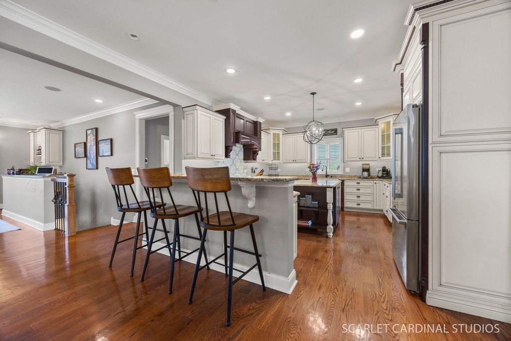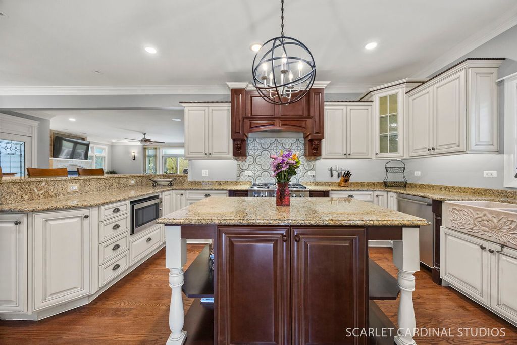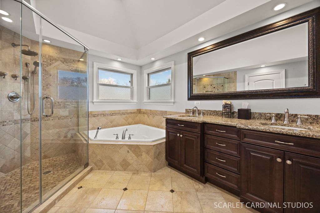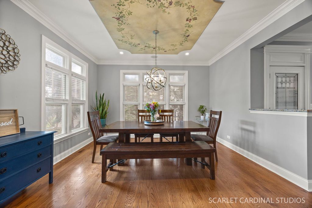 Welcome to luxury living at its finest in the heart of downtown Lombard! This stunning custom-built home offers the perfect blend of modern design, high-end upgrades, and everyday functionality. Boasting 4 spacious bedrooms, 3 full and 1 half bathrooms, this home features an open-concept floor plan with impressive 9-foot ceilings throughout, creating a bright and airy feel in every room. Fresh interior paint enhances the contemporary aesthetic, while smart WiFi-enabled lighting in most rooms allows for effortless voice-controlled convenience with CAT 6A network cabling throughout house. The beautifully updated kitchen is complete with high-end stainless steel appliances, custom cabinetry, island and a separate peninsula bar, stylish lighting, and modern backsplash-perfect for both entertaining and daily living. Built-in speakers in the front porch, kitchen, and family room elevate your hosting experience with seamless sound throughout the main living spaces. The bright and open family room features a cozy fireplace and wet bar, and flows seamlessly out to an expansive deck overlooking a picturesque backyard-an ideal setting for relaxing or entertaining. Upstairs, the home continues to impress with 4 generously sized bedrooms, 3 full baths and the versatile 4th bedroom features a Murphy bed that stays with the home-ideal for guests or a home office setup. The newly finished basement offers incredible additional living space, perfect for recreation, a home gym, or extended stays. Designed with sprayed-in insulation throughout, plus a new sump pump and backup system, which provides both comfort and peace of mind. Additionally the basement has a tremendous amount of storage space that could also serve as a workroom or gym. Step outside to a uniquely deep lot offering exceptional privacy and endless possibilities-whether you envision a future pool, expanded outdoor living, or an oversized garage. Enjoy low-maintenance outdoor living with newer Trex decking on both the front porch and back deck. Additional highlights include a new washer and dryer, WiFi-enabled front and back door locks with a front-facing camera for added security, and an EV car charger for modern convenience. This is a rare opportunity to own a truly turnkey, tech-forward luxury home in a fantastic Lombard location-close to Madison Elementary, Prairie Path and downtown Lombard.
