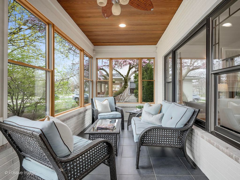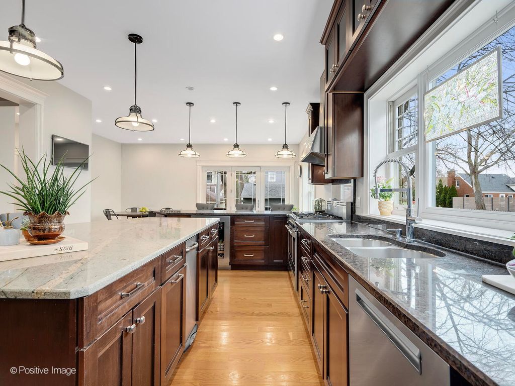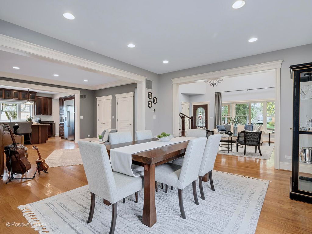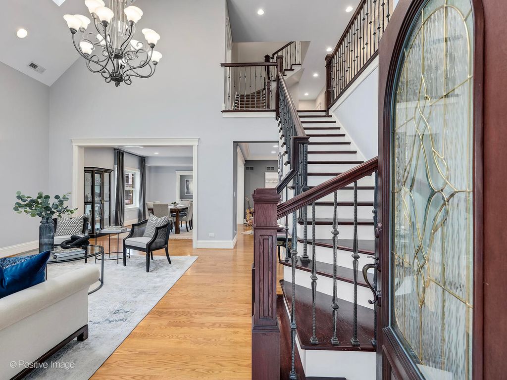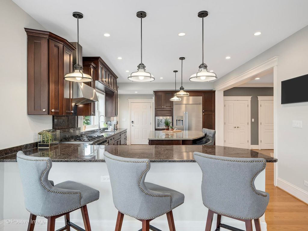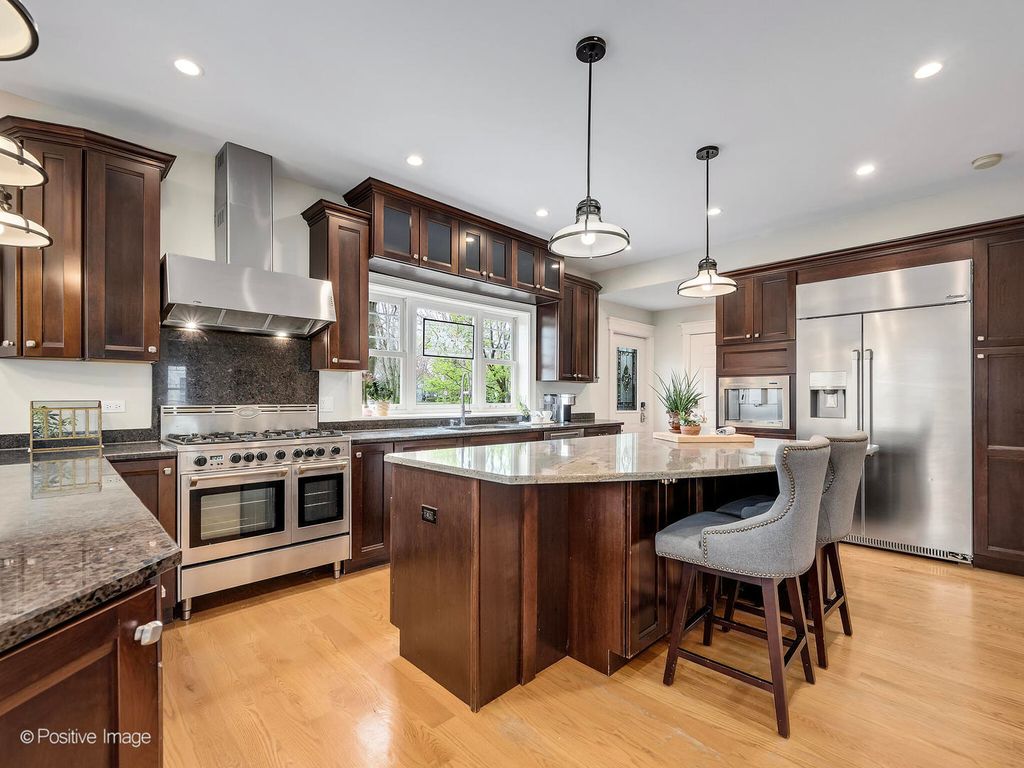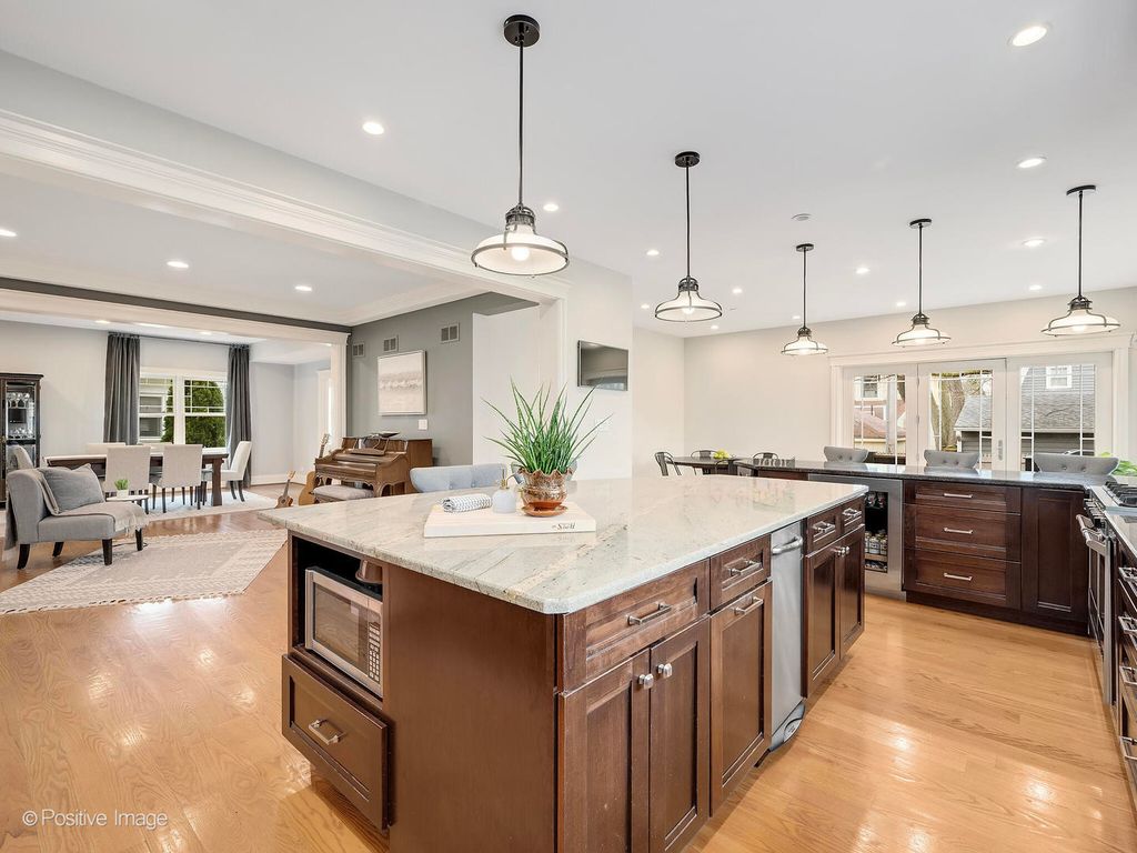 This beautifully renovated and expanded residence, extensively reimagined in 2006, offers the generous and elegant floor plan and livability of a newer custom home on an oversized 75' wide lot in La Grange's prime Historic District. With over 5,700 finished square feet of living space (4,200 above grade and 1,500 below grade), this home delivers an exceptional combination of architectural presence and modern functionality. The home is defined by hardwood flooring, substantial base moldings, generous room sizes, plantation shutters, recessed lighting, 9-foot ceilings, and an abundance of natural light throughout. A fully enclosed front porch with a large picture window overlooks the picturesque, tree-lined street-creating a peaceful and inviting setting for everyday relaxation. The impressive two-story foyer sets the tone, featuring a guest closet, a richly finished cherry entry door with an arched glass detail, and a sweeping staircase with natural wood treads and designer wrought iron balusters overlooking the dramatic living space. The stunning two-story formal living room is bathed in natural light from two skylights and a large picture window and is anchored by an oversized chandelier and a gas log fireplace (2021) with a timeless white mantel and refined dentil molding. Perfectly suited for both entertaining and daily living, the gracious dining room flows seamlessly into a comfortable main-floor family room with serene views of the private backyard and the center music room. The chef's kitchen is a true showpiece, featuring premium Craftsman-style cherry cabinetry with crown molding and glass-front accents, elegant granite countertops, hi-end stainless steel appliances, a generous center island with breakfast bar seating, and an additional peninsula ideal for casual dining or serving. A separate breakfast area with space for a large dining table with adjacent pantry closets offers direct French door access to the backyard deck and patios. Convenient entry to the attached garage and a well-appointed mudroom enhances everyday functionality. The second level offers four spacious bedrooms, three full bathrooms, a wonderful landing with built-in bookcase and a convenient laundry room. The luxurious primary suite is a private retreat, complete with two walk-in closets, two additional closets, a charming Juliet balcony and a spa-inspired bath featuring heated floors, a steam shower, whirlpool tub and double vanity. The third floor provides exceptional flexibility with two additional bedrooms-each with walk-in closets-a shared playroom and a full bathroom. The finished lower level is designed for entertaining, offering a game or craft room, a spacious recreation room with a built-in wet bar complete with a full-size refrigerator and dishwasher and a fifth full bathroom. Outdoors, enjoy three distinct paver patios, including one that doubles as a basketball court-perfect for recreation and gatherings. Ideally located within walking distance to the commuter train, highly regarded schools including Cossitt Elementary, Park Junior High, and Lyons Township High School, as well as downtown La Grange's shops, dining, library, and theater. Waiola Park is just one block away, completing this exceptional offering. A rare opportunity to own a home in La Grange's Historic District offering the space, layout, and modern livability today's buyers are seeking-an offering that truly stands apart in today's market.