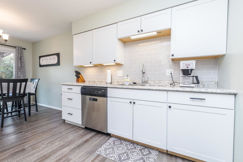 Beautifully remodeled three bedroom 1 1/2 bath, one car, attached garage, townhouse style condo in desirable Key West Estates, offering stylish updates and low maintenance living. The main level features a cozy living room, upgraded luxury vinyl flooring, fully updated kitchen with newer cabinetry, counters, a pantry for added storage, newer appliances & updated faucet & fixtures. A new glass sliding door leads to the extended patio with pergola perfect for relaxing, or entertaining with the added extra of no backyard neighbors. Upstairs you'll find a spacious primary bedroom with large walk-in closet along with the second bedroom that offers generous attic storage space. Both bathrooms have been tastefully updated with newer vanity, sinks, fixtures, and flooring. The recently finished basement provides additional living space with newer carpet and fresh paint ideal for entertaining, a home office or recreation room. Major updates include windows, roof approximately 10 years, and HVAC around eight years new, fresh paint & flooring throughout. Enjoy the ease of exterior maintenance, including lawn care and snow removal for truly carefree living. Conveniently located near parks, schools, sports fields, and Carl's ice cream, this move-in ready home offers comfort, style and a fantastic location. Don't miss your chance to enjoy this easy living lifestyle.
