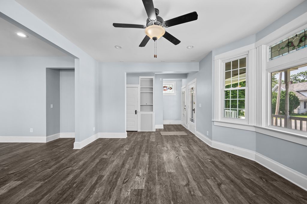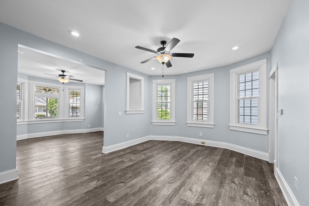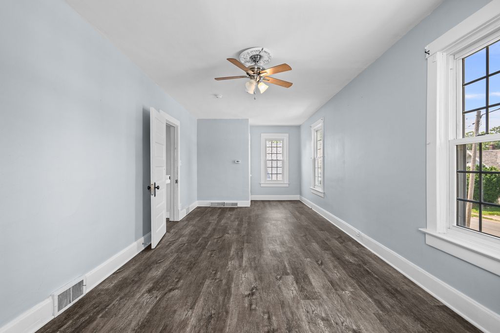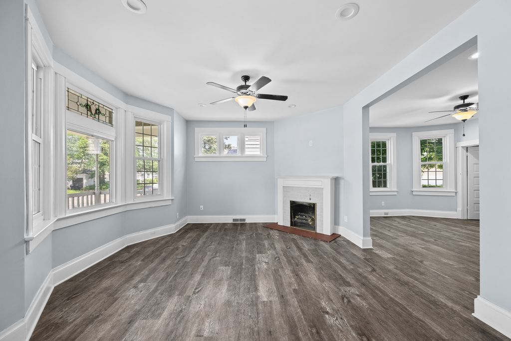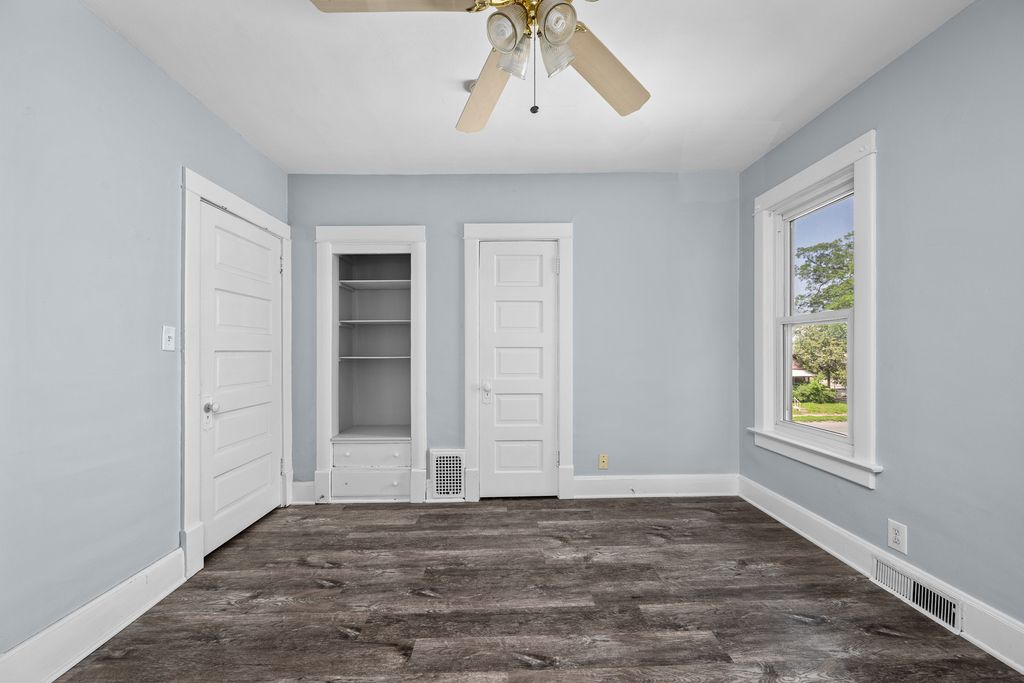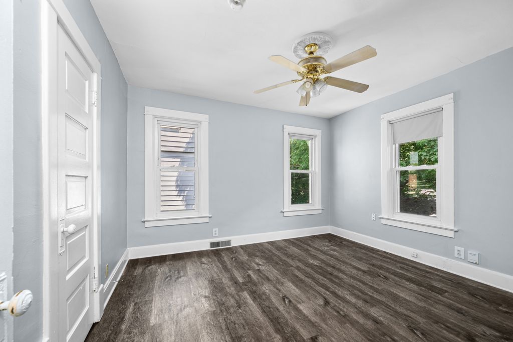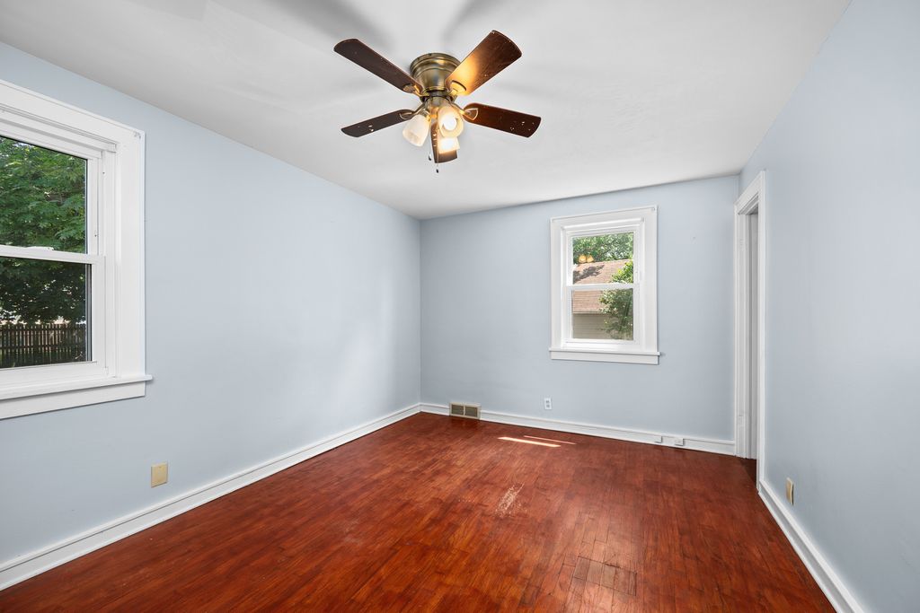 Spacious 4 bedroom, 2 bathroom house with fenced in yard and two car garage. Over 1800 square foot of living space within the boundaries of Eugene Field Elementary in Rock Island. Primary bedroom on main floor with en suite bathroom, 3 additional bedrooms and a full bath upstairs. LVP throughout most of the house, per seller: newer kitchen cabinets and countertops. Home has two hvac systems - perfect for zoned heating and cooling. Enclosed three-season porch. Garage has storage area.