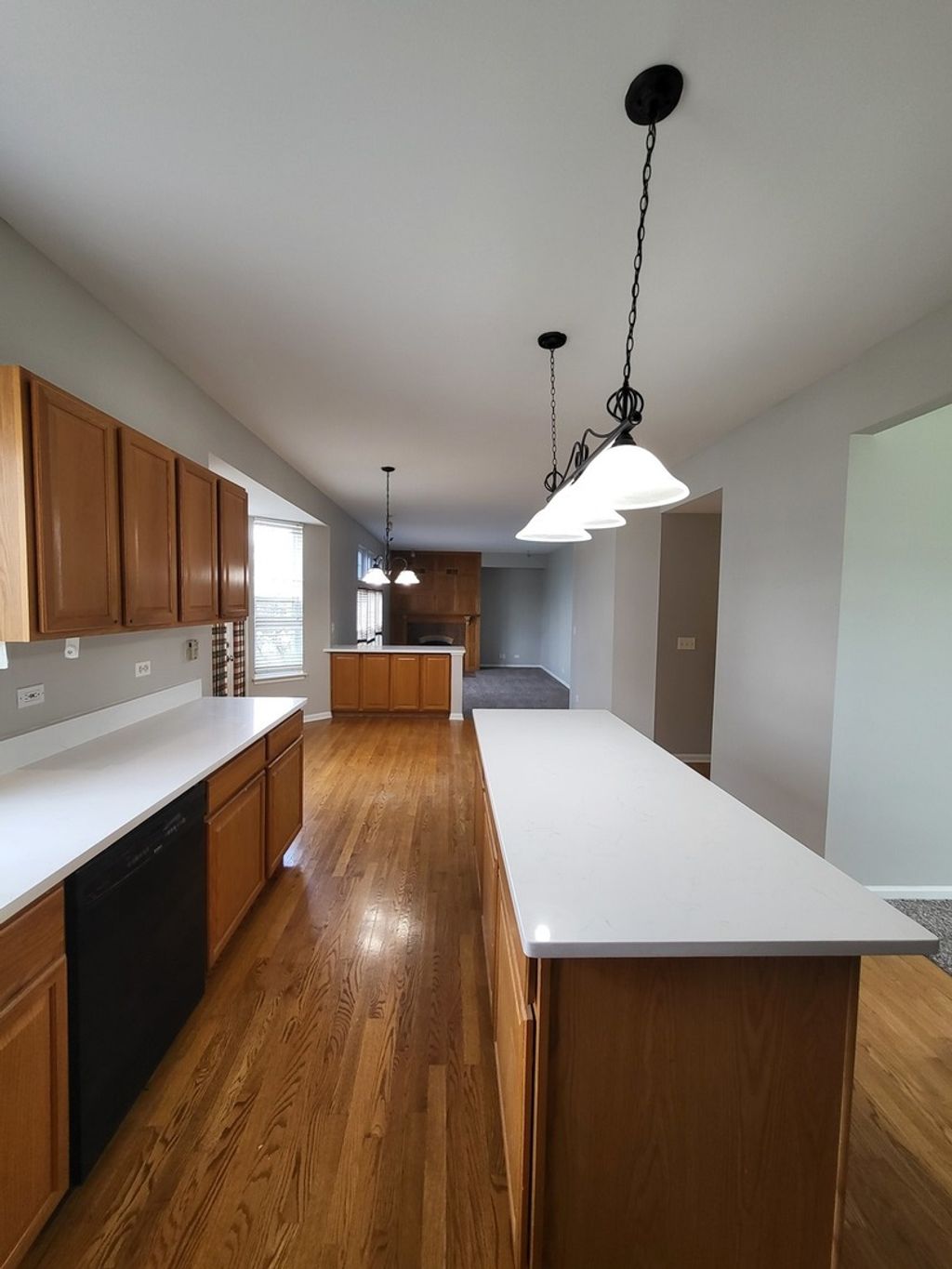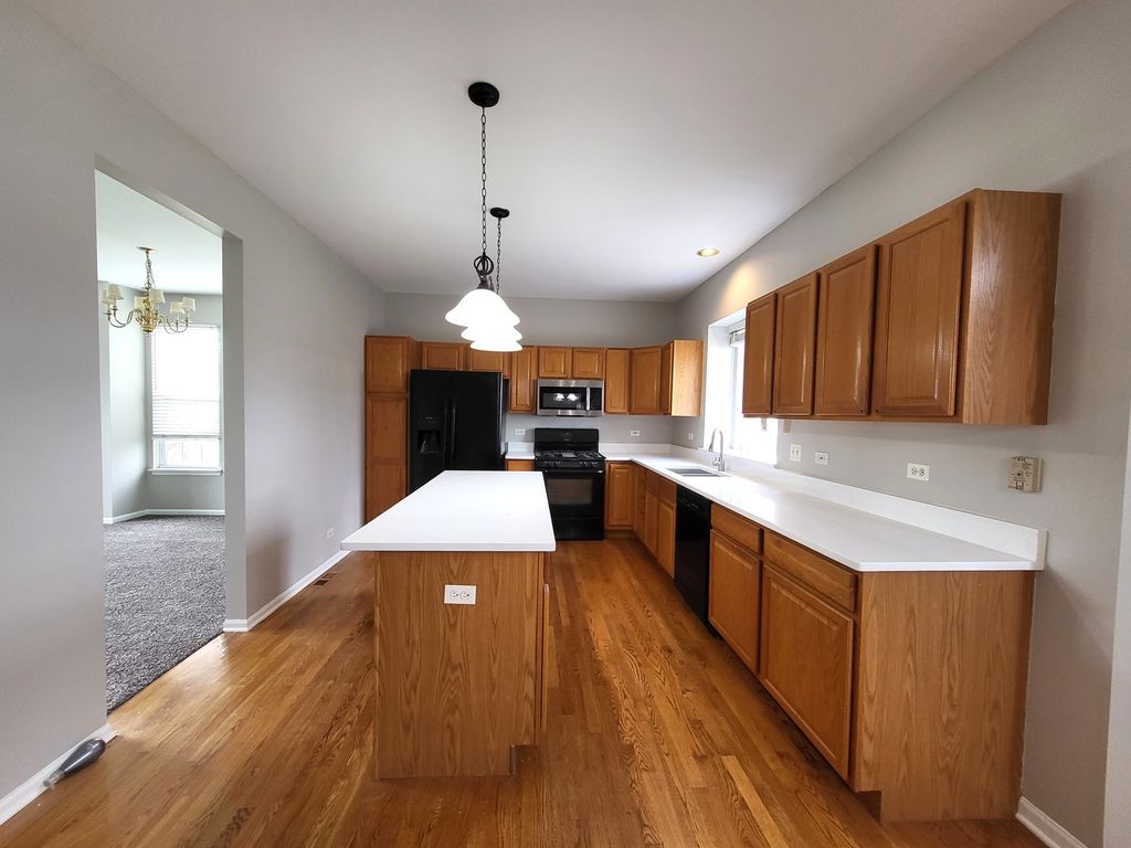 Beautiful Brookdale model in Oakwood subdivision situated on a spacious interior corner lot! Perfect open floor plan with super bright natural lighting. Features hardwood floors, an eat-in kitchen with oak cabinets and a center island, and a large family room with a a fireplace. The primary suite includes a walk-in closet, soaking tub, and separate shower, plus a skylight for added natural light. Enjoy the large private patio and a partially finished basement with crawl space.