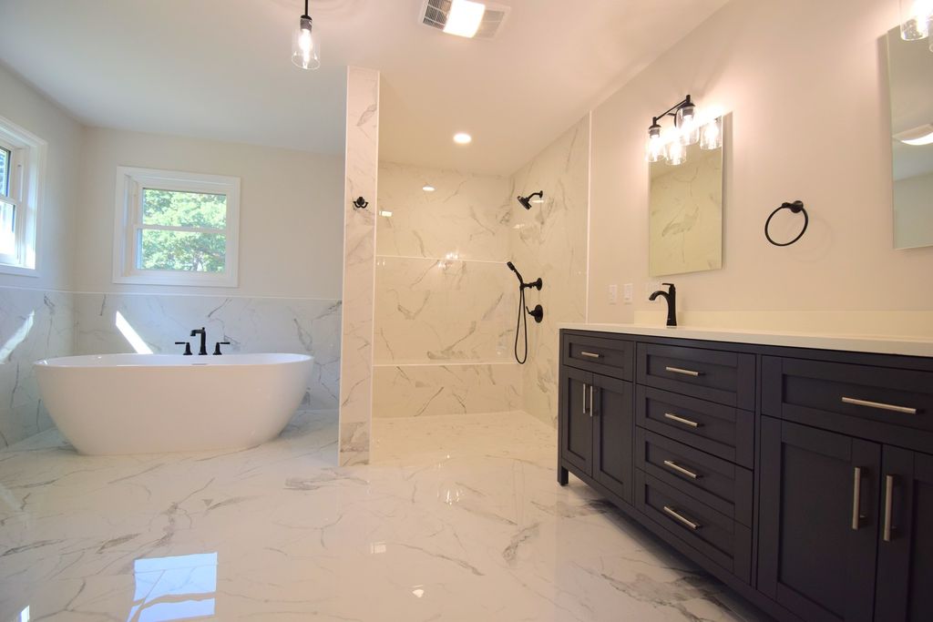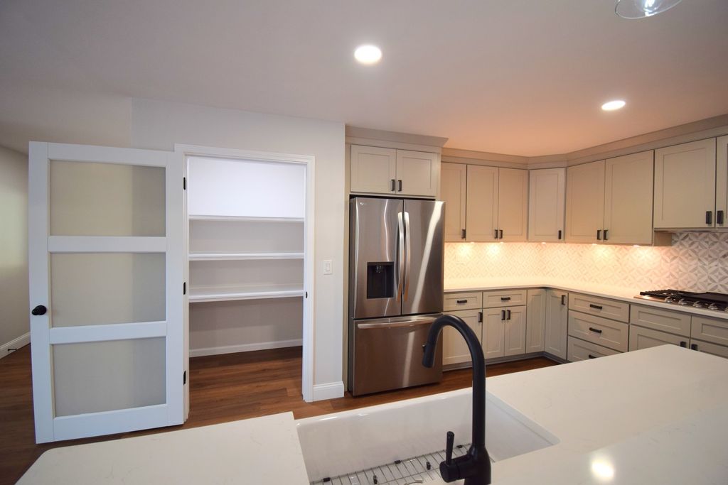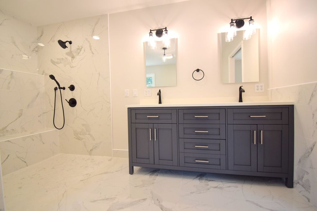 Completely remodeled in 2025, this stunning 5-bedroom, 3.5-bath home set on 3.6 acres offers the perfect blend of modern luxury, space, and privacy in one of the area's most sought-after locations. From the moment you step through the front door, you're greeted by soaring ceilings and an impressive, light-filled entry that sets the tone for the entire home. The thoughtfully designed layout flows effortlessly, guiding you into the heart of the home-an expansive open-concept living area featuring vaulted ceilings, a striking gas fireplace, and built-in bookshelves. The living space opens seamlessly into the dining area and a beautifully appointed kitchen that will impress even the most discerning buyer. Complete with quartz countertops, premium cabinetry, a farmhouse sink, and a large walk-in pantry, this kitchen is as functional as it is stunning. The primary suite is a true retreat, offering generous space, a large walk-in closet, and a spa-like ensuite bath featuring a freestanding soaking tub, a custom walk-in shower, and dual vanities. Step directly from your bedroom onto the rear composite deck and enjoy peaceful views of your expansive property. The main level offers exceptional convenience with four bedrooms, two and a half bathrooms, and a dedicated laundry room. Downstairs, the walkout basement expands your living space even further with a fifth bedroom, a full bath, ample storage, and a large open area ready to be customized as a recreation room, home gym, or additional living space. Every detail has been thoughtfully updated, including a new roof, windows, flooring, paint, bathrooms, and newly started landscaping.