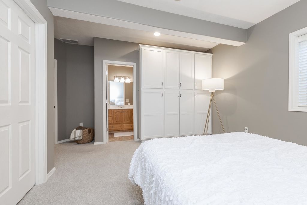Meticulously maintained and beautifully updated, this 5-bedroom, 3.5-bathroom two-story home in Eagles Landing shows like new construction. Bright and open, it features vaulted ceilings, custom wainscoting, and high-end finishes throughout-truly a rare find.The large eat-in kitchen, renovated in 2022, boasts granite countertops, a sleek backsplash, updated range hood, modern appliances, and stylish floating shelves. A spacious island with seating makes it perfect for gathering. The kitchen flows seamlessly into the family room, complete with a gas fireplace, built-ins, and custom millwork. An elegant dining room (or optional living room) features soaring vaulted ceilings. Upstairs, you'll find four bedrooms, including an oversized primary suite with a massive walk-in closet and a spacious en suite bath. Three additional generously sized bedrooms share a well-appointed hall bathroom. A second-floor laundry room adds convenience, located just steps from the bedrooms. The fully finished basement offers even more living space, including a large family room, a fifth bedroom, and a third full bathroom-ideal for guests or extended living. Outside, enjoy a private, fenced backyard with a custom covered patio and fire pit, perfect for relaxing or entertaining.Three car attached garage with epoxy flooring. Recent updates include but not limited to: kitchen remodel including new appliances 2022, hardwood on the second level 2021, updated carpeting 2021, new paint 2023, all light fixtures and fans 2022, new radon fan 2025.