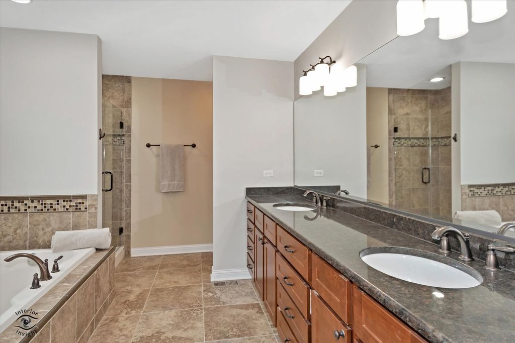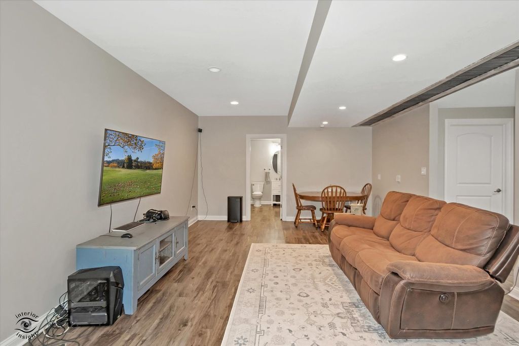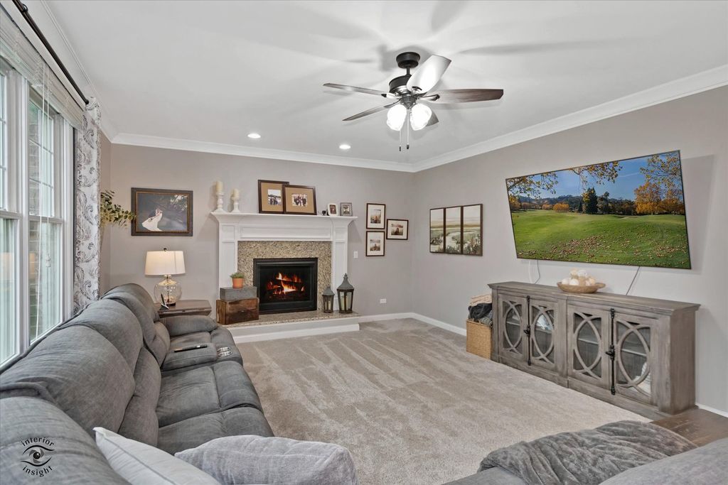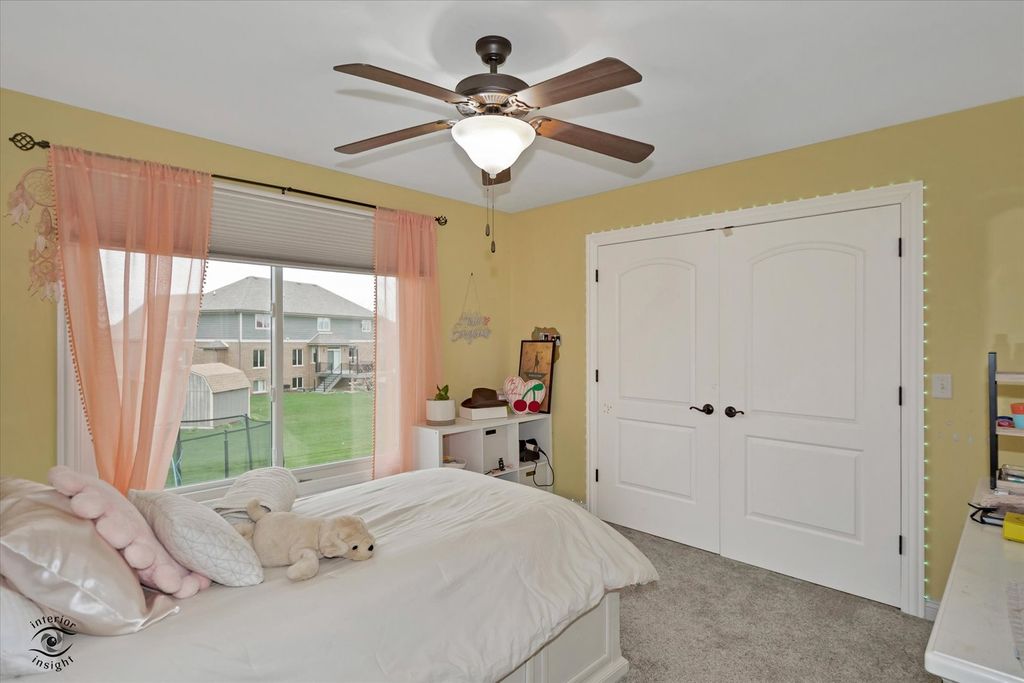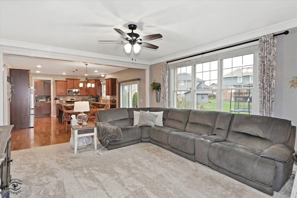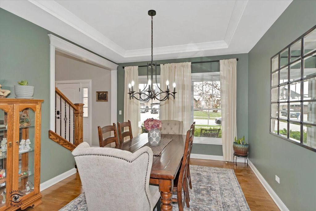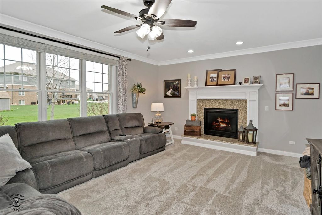 Welcome to this exceptional 2013-built home located in one of Manhattan's most prestigious subdivisions, offering over 4,000 square feet of beautifully finished living space and showcasing true move-in condition with countless updates throughout. This spacious residence features 5 bedrooms and 3.5 bathrooms, beginning with a stunning main level complete with rich hardwood flooring, a cozy family room with newer carpeting, fireplace, and abundant natural light, and an impressive eat-in kitchen boasting custom cabinetry, granite countertops, a massive walk-in pantry, and a butler's pantry perfect for a coffee or cocktail bar. The main floor is rounded out by a formal dining room, oversized laundry room, and a dramatic two-story foyer. Upstairs, you'll find 4 generously sized bedrooms, a versatile loft, and a luxurious primary suite featuring a tray ceiling, expansive walk-in closet with custom built-ins, and a spa-like en-suite bath with soaker tub, separate shower, and dual vanity, while many windows-including newer Andersen windows-bring in beautiful natural light throughout. The finished basement (2022) adds incredible living space with a large family room, dining area, spacious bedroom with custom closet system, a high-end full bathroom with a stunning tiled shower, a dedicated gym, and ample storage. Situated on a large lot across from the lake, this home offers serene water views without the restrictions of an HOA, along with a 3-car garage, in-ground sprinkler system, and invisible fence. Major mechanical updates include a tankless water heater (2022), new carpet (2023), patio door (2024), and brand-new HVAC system with UV filtration and humidifier (2025) backed by a 15-year warranty, plus a water softener and filtration system-truly a rare opportunity to own a meticulously maintained and thoughtfully upgraded home in a prime location.