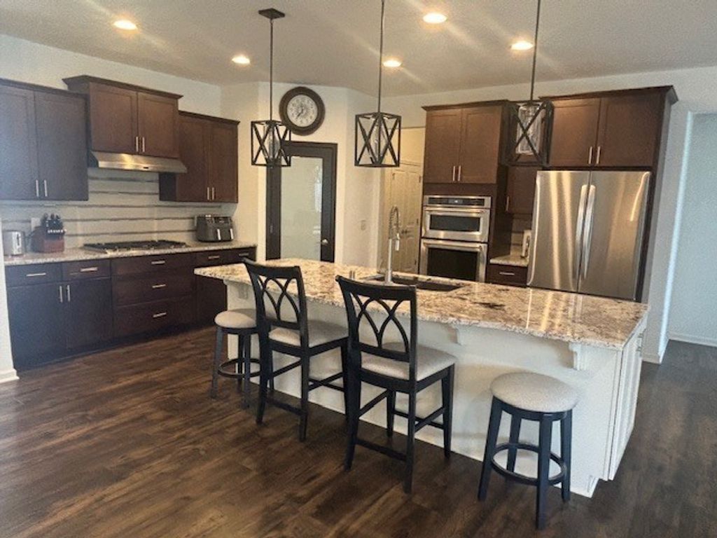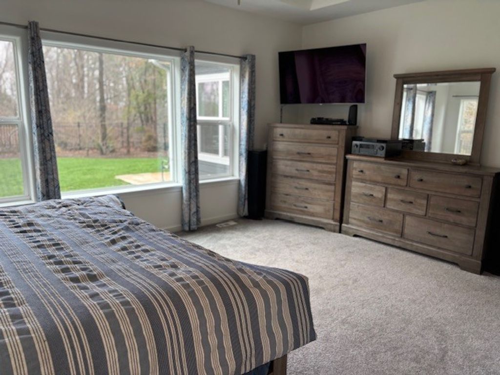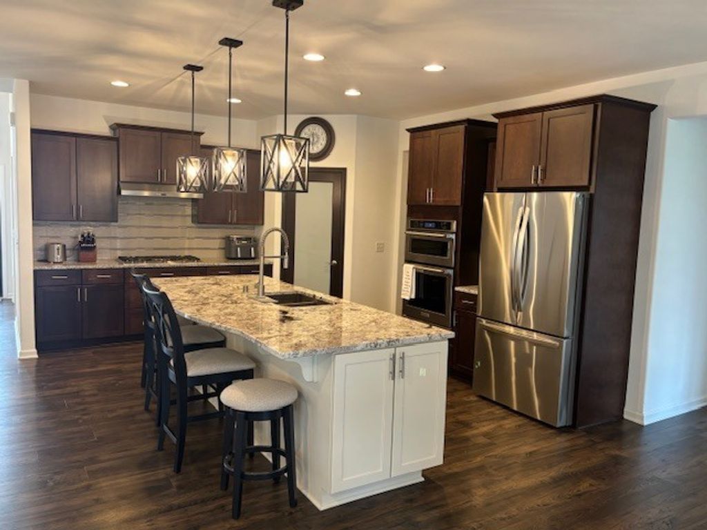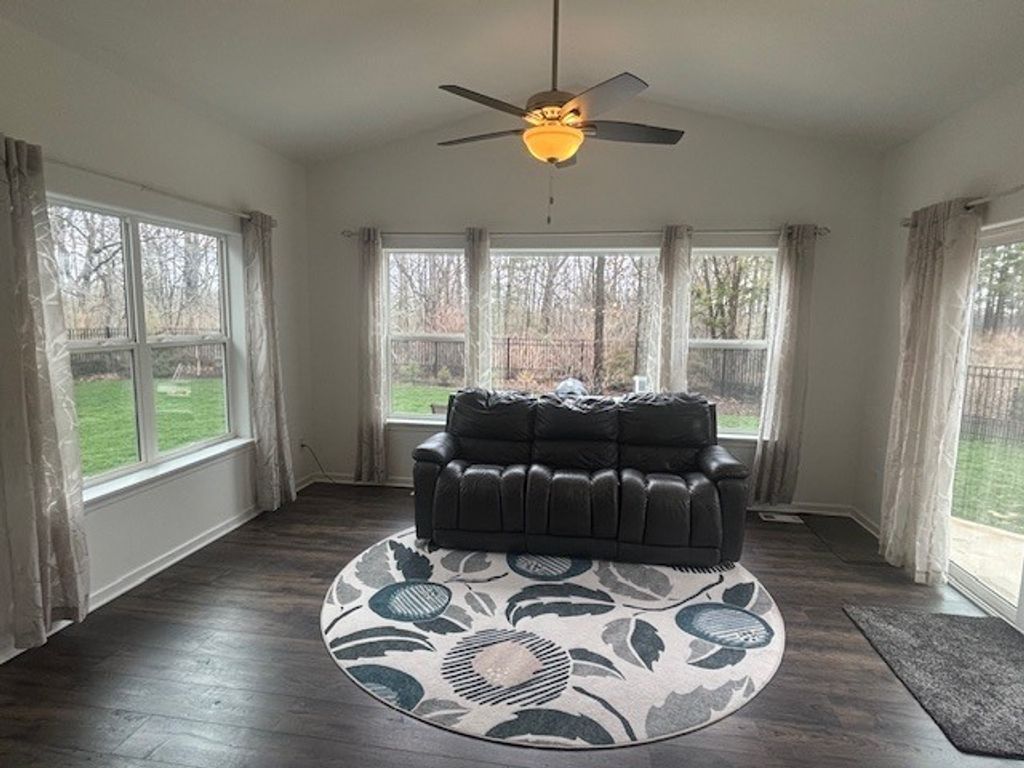 Welcome to this stunning executive-style ranch, built in 2019 and designed for both comfort and elegance. This beautifully maintained 3-bedroom, 2-bath home offers an exceptional open floor plan that seamlessly blends everyday living with stylish entertaining. At the heart of the home is an impressive kitchen featuring a large center island, full appliance package, and a generously sized pantry-perfect for both casual meals and hosting gatherings. The expansive great room showcases a striking fireplace as its focal point, creating a warm and inviting atmosphere, while the oversized dining area provides ample space for entertaining. The luxurious primary suite is a true retreat, complete with a spa-inspired bath offering a walk-in shower and dual vanity sinks. A thoughtfully designed split-bedroom layout ensures privacy, while additional highlights include a main-floor office, convenient mudroom with built-in storage, and a dedicated laundry room. Enjoy year-round relaxation in the sunroom, or step outside to the beautifully landscaped, park-like backyard-fully fenced and featuring a massive patio ideal for outdoor entertaining. Take in the serene views of the backyard and adjoining conservancy area from the great room, sunroom, and primary suite. Additional features include a full unfinished basement ready for your personal touch and an attached 3-car garage providing plenty of storage space. This exceptional home combines modern design, functional living, and peaceful surroundings-truly a must-see!
