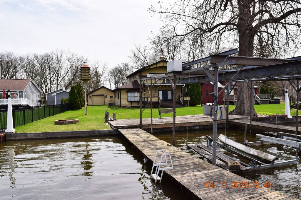 Update river front property. Just blocks from Pistakee Lake and the chain. Triple set of atrium doors to 19x12 deck. Catedral and vaulted ceilings in bedrooms. Kitchen features beautiful oak cabinets, ceramic tile countertops and skylight. Some SS appliances including freezer. Fire pit, pier, deck and boat hoist. Roof is 7 years old (50 years shingles). Newer gutters. Newer refrigerator and freezer. Newer deck and whole water system. Newer upper bathroom.