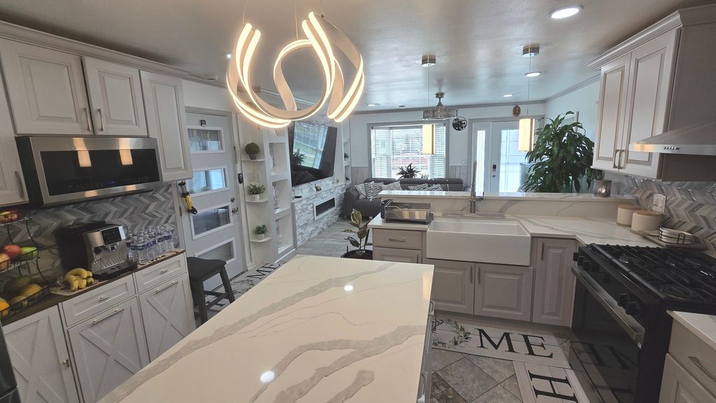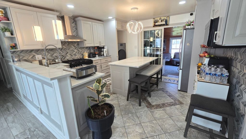Welcome to this beautifully updated home in Streamwood IL! Featuring 3 spacious bedrooms and 1 full bath, this move-in-ready property offers the perfect blend of modern style and comfortable family living. Step into a stunning, fully updated kitchen showcasing sleek quartz countertops, custom cabinetry, stainless steel appliances, and designer lighting-perfect for both everyday living and entertaining. The open-concept layout flows seamlessly into a bright and inviting living area, highlighted by a contemporary feature wall with a built-in fireplace and entertainment center. Enjoy year-round relaxation in the enclosed sunroom overlooking a large, fully fenced backyard-ideal for gatherings, pets, and outdoor fun. Additional highlights include stylish flooring throughout, updated finishes, and a 1.5-car garage providing ample storage and convenience. This home truly offers luxury family living at an affordable price-don't miss your opportunity to make it yours!