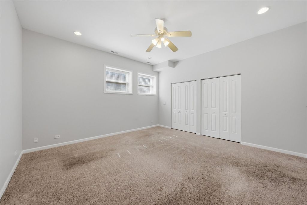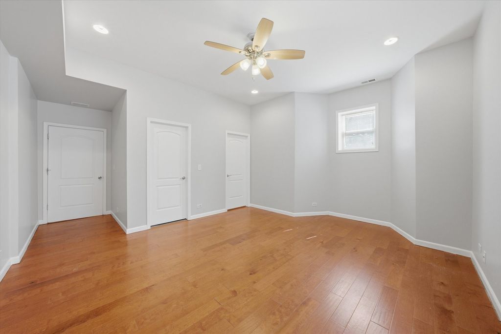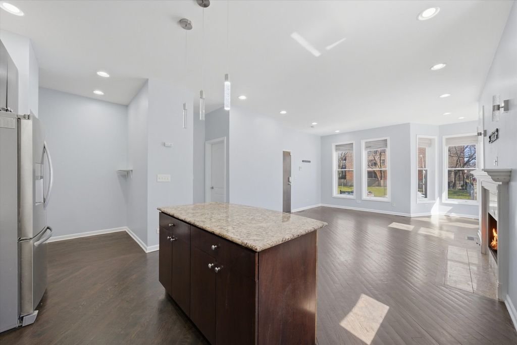 Welcome to this expansive 4-bedroom, 4-bathroom duplex located in the historic Bronzeville neighborhood of Chicago. The first floor features an open-concept layout with hardwood floors and recessed lighting throughout, complemented by large windows that fill the space with natural light and a cozy gas fireplace that anchors the living area. The chef's kitchen offers custom cabinetry, granite countertops, stainless steel appliances, and a spacious island with additional seating, making it perfect for both everyday living and entertaining. The home includes two primary suites, each with a walk-in closet, while the owner's suite boasts a spa-like en-suite bath complete with a jetted soaking tub and dual vanities. The large lower level provides additional living space with a generous family room and a second fireplace. This freshly painted property also includes a one-car garage with plenty of street parking available. Conveniently located near Lake Michigan, as well as shops, restaurants, and public transportation, this home offers comfort, space, and easy access to everything the city has to offer.