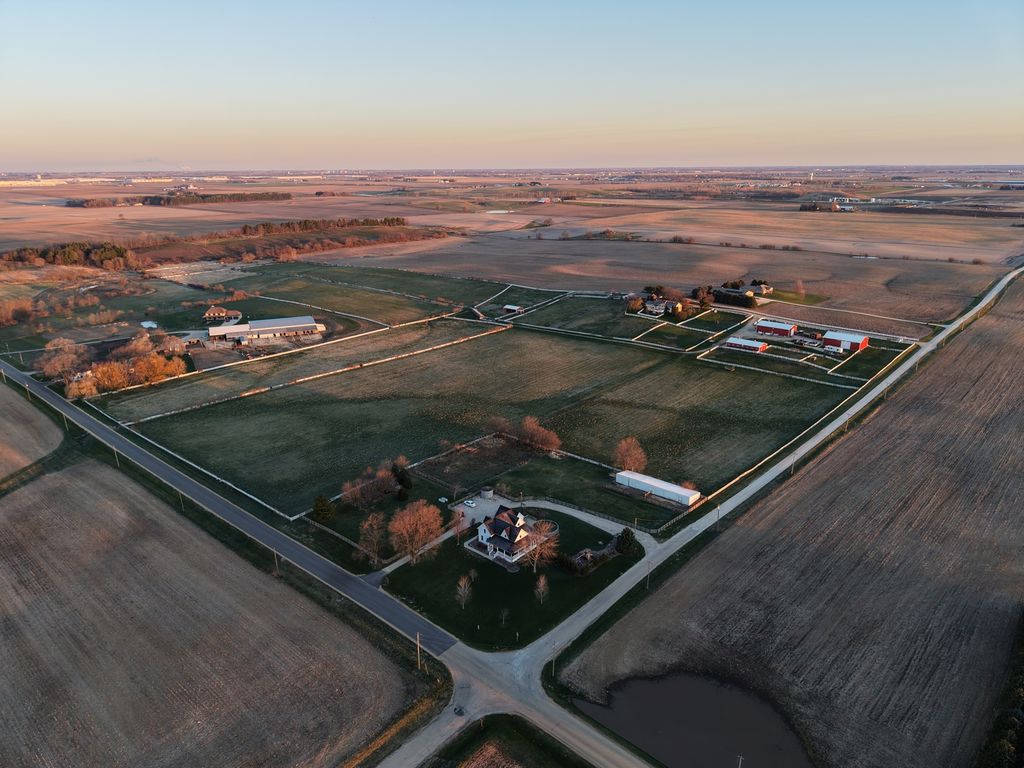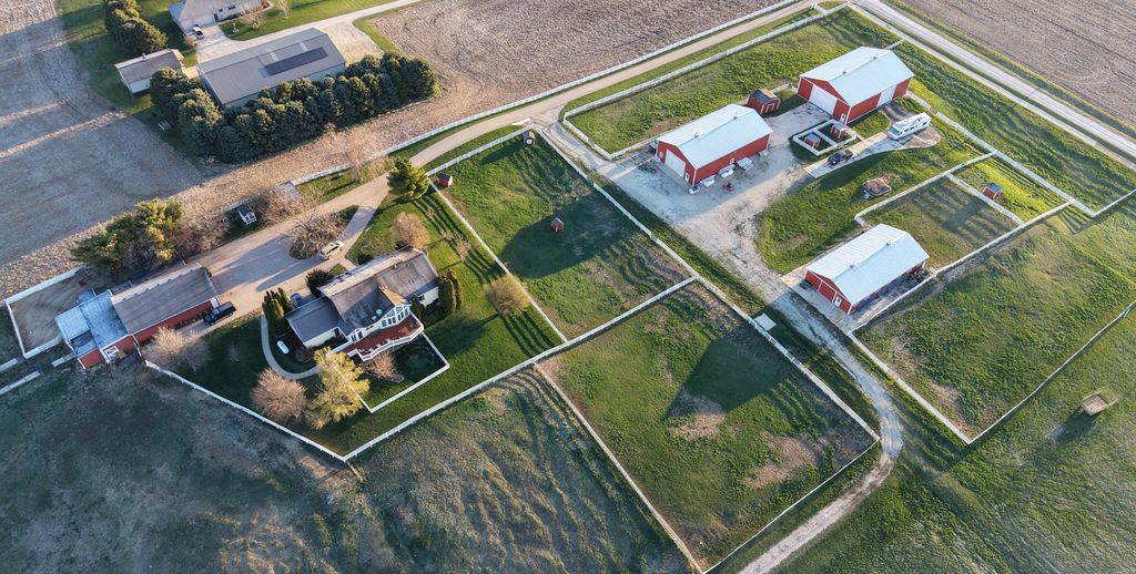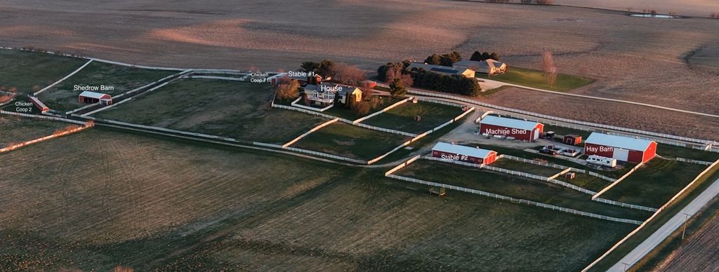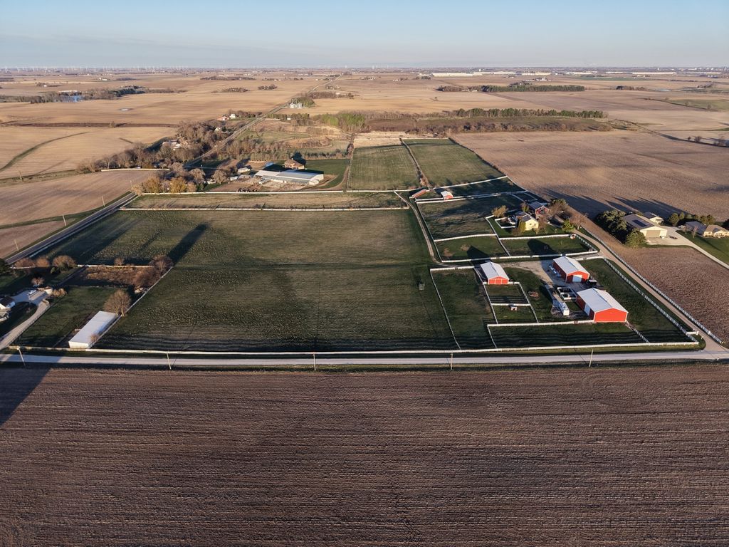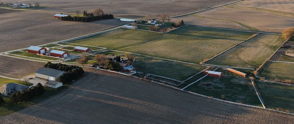 Discover your opportunity with this rare gem: a stunning 5 bedroom, 3.5 bathroom custom walk-out ranch home perched atop the highest elevation in DeKalb County. Set on 50.04 +/- picturesque acres of gently rolling countryside, this fully fenced and gated property offers privacy, breathtaking views, and exceptional functionality for horses, farming, or country living. The 3,500 square foot home features a spacious gourmet kitchen with plenty of countertop space and abundant wood cabinets for plenty of storage, including a large island. You will enjoy a first-floor laundry room, a luxurious primary suite with walk-in closet, an open floor plan perfect for everyday living and entertaining, and a spacious attached 2-car garage. The massive deck off the family room and kitchen provides the ideal spot for morning coffee or evening relaxation, overlooking sweeping southern views across the estate. The fully finished walk-out basement includes a huge 19'x27' rec room which seamlessly opens to a 15'x19' TV/movie space-ideal for family gatherings or quiet nights in. Step outside to a large patio that leads to a fenced backyard oasis with landscaped planting beds and productive peach, apple, and pear trees that yielded fresh fruit last season. The 50.04 +/- acres include easily accessible, gently rolling tillable (37 acres +/-) currently in hay and pasture ground (11 acres +/-) with a strong average Productivity Index (PI) of 133.3-prime DeKalb County soil known for productivity. Convenient Location & Commuter Access Just 2 miles from I-88 (Ronald Reagan Memorial Tollway) for quick access east to Chicago or west toward the Quad Cities. Approximately 10 minutes to the Elburn Metra station (Union Pacific West Line) for daily commuter trains to Chicago's Ogilvie Transportation Center. Premier Equestrian & Farm Infrastructure This turn-key horse property includes two well-built horse barns with a combined 23 stalls: -Stable #1: 32' x 64' with 11 stalls and a hay loft near the house -Stable #2: 35' x 70' with 12 stalls across from machine shed and hay barn Both barns feature concrete floors with 3/4" rubber cow mats in every stall, running water, and electrical outlets. Additional outbuildings include: -Hay Barn: 50' x 72' with raised platforms for dry, elevated storage -Machine Shed: 40' x 70' heated machine shed with concrete floor, water, drains, and drive-through doors on both ends -Shedrow Barn: 33' x 45' located SW of the house -Large Storage Sheds: both with concrete floors. Shed 1 (12'x18') located north of drive across from house and Shed 2 (16'x16') located between the machine shed and the hay barn -Coops for chickens, turkeys, or geese attached to Barn #1 and southwest by the shedrow barn Whether you're seeking a private family retreat, a professional equestrian facility, or a productive hobby farm, this one-of-a-kind property delivers it all. A rare combination of luxury living, panoramic views, and top-tier agricultural infrastructure in a convenient DeKalb location. Property Features Equestrian Estate on the highest point in DeKalb County 3,500 sq. ft. - 5 bed, 3.5 bath custom walk-out ranch Amazing views from multiple vantage points 2 Stables with 23 total stalls- concrete floors and 3/4" cow mats, water, & electric Hay Barn with elevated storage built in Large drive-through machine shed with heat, water, concrete floor Shedrow barn with water 2 Large storage sheds w/concrete floors 2 chicken coops Easy access high-quality land with PI avg 133.3 Great location with transportation and activities nearby Chicago Loop: ~60-65 miles (~1 hour drive) O'Hare International Airport (ORD): ~55-62 miles (~1 hour 15 minutes) Midway International Airport (MDW): ~60-65 miles (~1 hour 15 minutes) Nearby attractions include Northern Illinois University (NIU) campus, DeKalb Park District facilities, local dining/shopping in downtown DeKalb and Sycamore, plus multiple nearby golf courses, fo