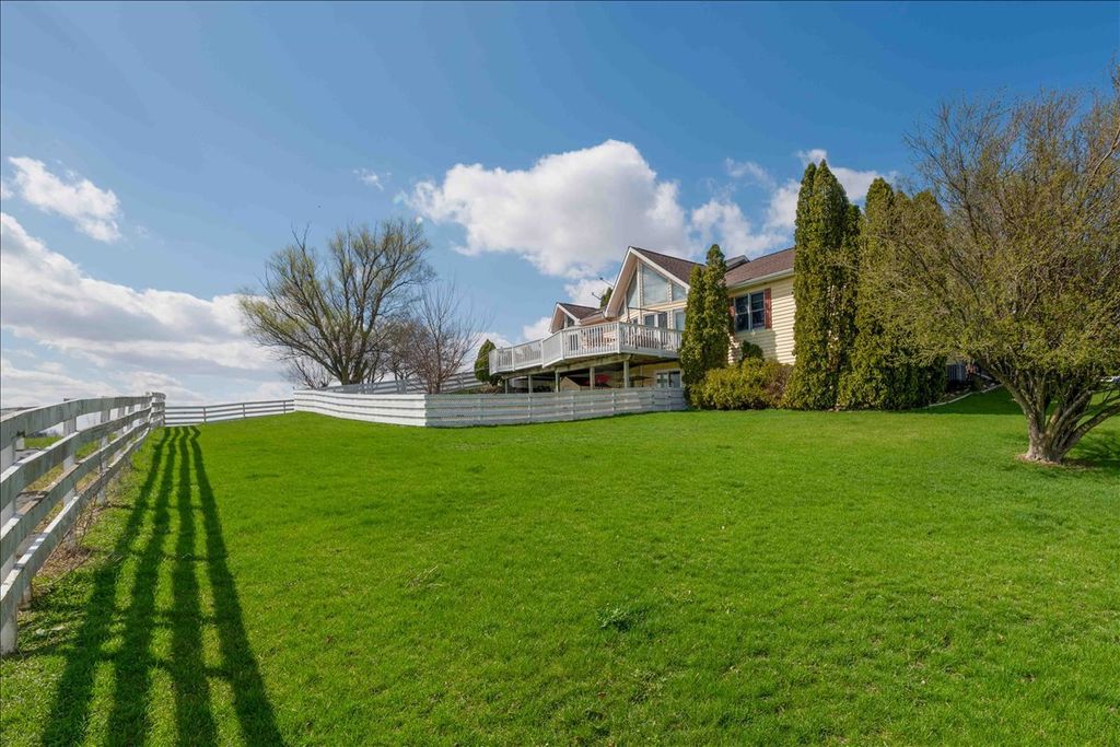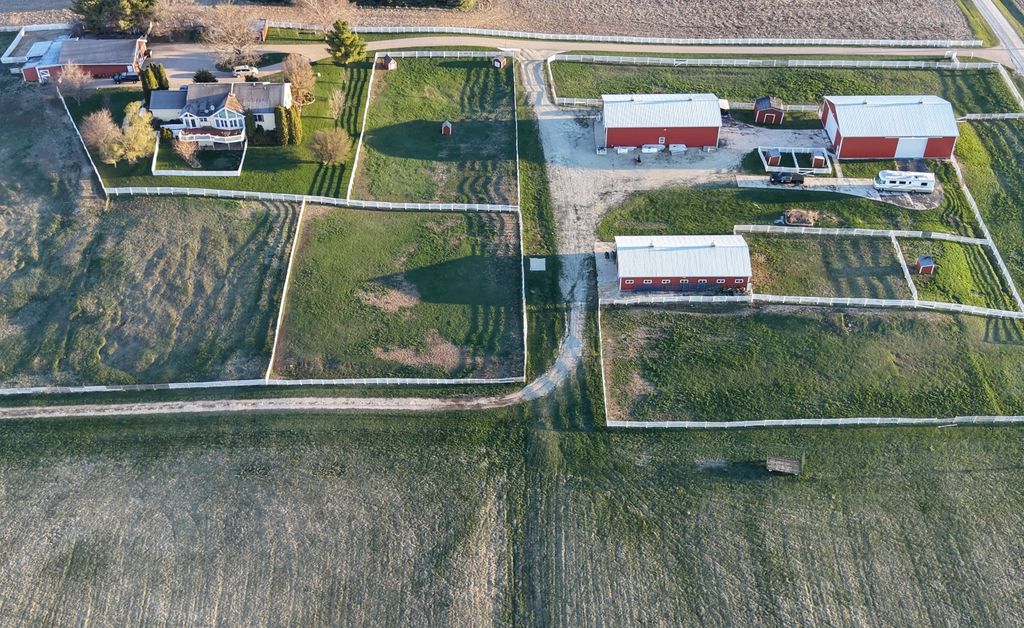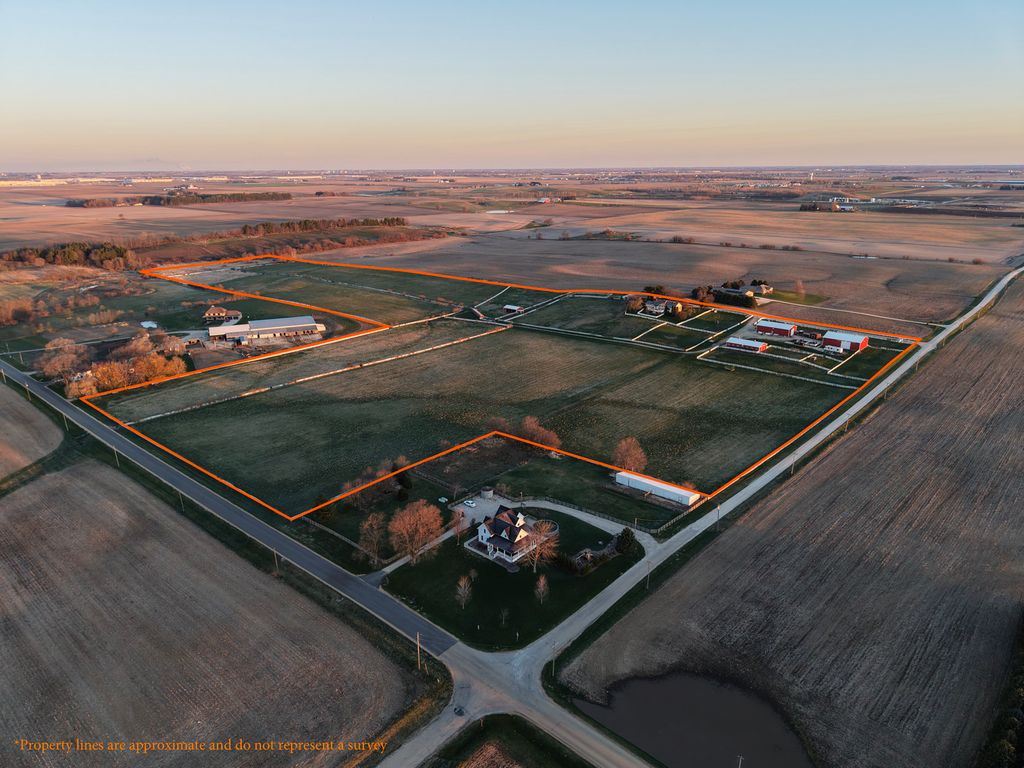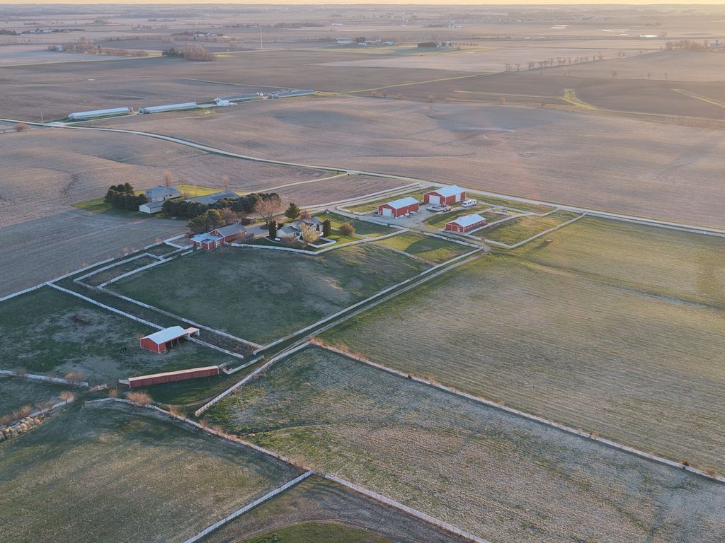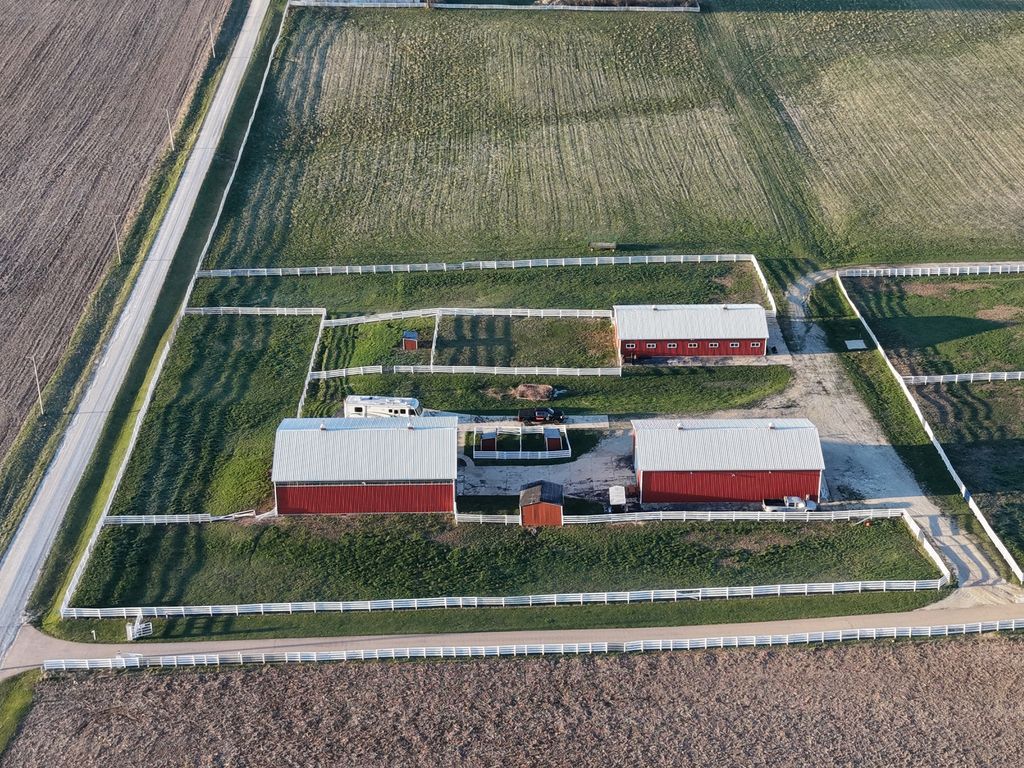 Discover your opportunity with this rare gem: a stunning 5 bedroom, 3.5 bathroom custom walk-out ranch home perched atop the highest elevation in DeKalb County. Set on 50.04 +/- picturesque acres of gently rolling countryside, this fully fenced and gated property offers privacy, breathtaking views, and exceptional functionality for horses, farming, or country living. The 3,500 square foot home features a spacious gourmet kitchen with plenty of countertop space and abundant wood cabinets for plenty of storage, including a large island. You will enjoy a first-floor laundry room, a luxurious primary suite with walk-in closet, an open floor plan perfect for everyday living and entertaining, and a spacious attached 2-car garage. The massive deck off the family room and kitchen provides the ideal spot for morning coffee or evening relaxation, overlooking sweeping southern views across the estate. The fully finished walk-out basement includes a huge 19'x27' rec room which seamlessly opens to a 15'x19' TV/movie space-ideal for family gatherings or quiet nights in. Step outside to a large patio that leads to a fenced backyard oasis with landscaped planting beds and productive peach, apple, and pear trees that yielded fresh fruit last season. The 50.04 +/- acres include easily accessible, gently rolling tillable (37 acres +/-) currently in hay and pasture ground (11 acres +/-) with a strong average Productivity Index (PI) of 133.3-prime DeKalb County soil known for productivity. Convenient Location & Commuter Access Just 2 miles from I-88 (Ronald Reagan Memorial Tollway) for quick access east to Chicago or west toward the Quad Cities. Approximately 10 minutes to the Elburn Metra station (Union Pacific West Line) for daily commuter trains to Chicago's Ogilvie Transportation Center. Premier Equestrian & Farm Infrastructure This turn-key horse property includes two well-built horse barns with a combined 23 stalls: -Stable #1: 32' x 64' with 11 stalls and a hay loft near the house -Stable #2: 35' x 70' with 12 stalls across from machine shed and hay barn Both barns feature concrete floors with 3/4" rubber cow mats in every stall, running water, and electrical outlets. Additional outbuildings include: -Hay Barn: 50' x 72' with raised platforms for dry, elevated storage -Machine Shed: 40' x 70' heated machine shed with concrete floor, water, drains, and drive-through doors on both ends -Shedrow Barn: 33' x 45' located SW of the house -Large Storage Sheds: both with concrete floors. Shed 1 (12'x18') located north of drive across from house and Shed 2 (16'x16') located between the machine shed and the hay barn -Coops for chickens, turkeys, or geese attached to Barn #1 and southwest by the shedrow barn Whether you're seeking a private family retreat, a professional equestrian facility, or a productive hobby farm, this one-of-a-kind property delivers it all. A rare combination of luxury living, panoramic views, and top-tier agricultural infrastructure in a convenient DeKalb location. Property Features Equestrian Estate on the highest point in DeKalb County 3,500 sq. ft. - 5 bed, 3.5 bath custom walk-out ranch Amazing views from multiple vantage points 2 Stables with 23 total stalls- concrete floors and 3/4" cow mats, water, & electric Hay Barn with elevated storage built in Large drive-through machine shed with heat, water, concrete floor Shedrow barn with water 2 Large storage sheds w/concrete floors 2 chicken coops Easy access high-quality land with PI avg 133.3 Great location with transportation and activities nearby Chicago Loop: ~60-65 miles (~1 hour drive) O'Hare International Airport (ORD): ~55-62 miles (~1 hour 15 minutes) Midway International Airport (MDW): ~60-65 miles (~1 hour 15 minutes) Nearby attractions include Northern Illinois University (NIU) campus, DeKalb Park District facilities, local dining/shopping in downtown DeKalb and Sycamore, plus multiple nearby golf courses, fo