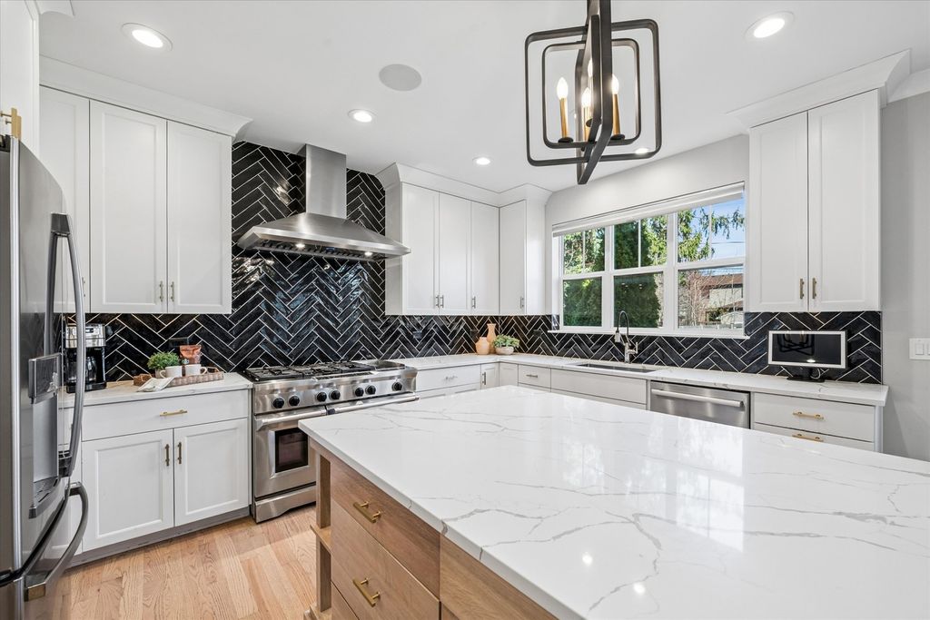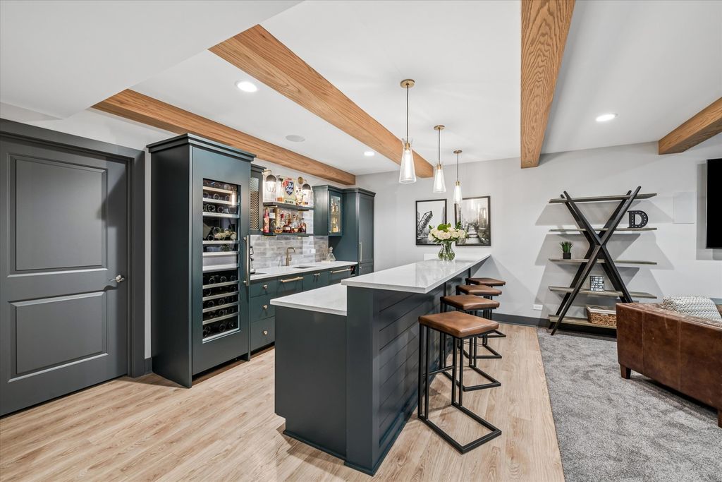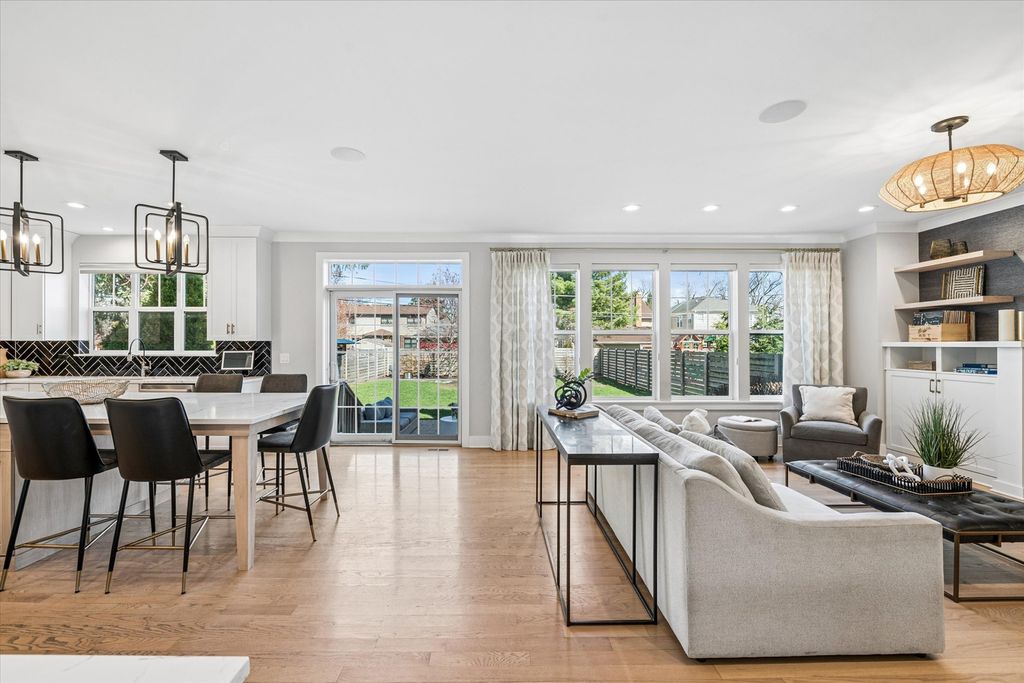 OPEN (4/12) 1-3 ... Beautifully redesigned custom home just a half mile to town, set on a great family-friendly block with a (165') deep fenced yard. Originally custom built and extensively redesigned in 2023, this home blends thoughtful updates, generous space, and an ideal Elmhurst lifestyle. The main floor offers a private first-floor office, elegant formal dining room with a barreled ceiling, a first-floor bar area, and an oversized family room with custom built-ins. The 2023 redesigned gourmet kitchen is a true centerpiece, featuring high-end finishes, excellent workspace, and an adjacent walk-in pantry with future scullery potential. A large mudroom adds everyday function and flexibility. Upstairs, a dramatic wraparound hallway is filled with natural light from four skylight panels. The spacious primary suite features a walk-in closet and luxury bath with soaker tub, oversized shower with bench, dual sinks, and a private commode room. The secondary bedrooms are all generously sized, with a great layout offering two Jack-and-Jill bedrooms and two en-suite bedrooms. In total, the home offers 4.5 luxury baths. The redesigned (2020) basement is built for entertaining and everyday living, complete with a full bar, seating peninsula, tall wine fridge, exercise room, and playroom. Outside, the huge fenced backyard is ready for entertaining with a large patio and plenty of room to play, while the front basketball setup adds even more fun. Incredible walk-to-town location and also close to Berens Park, featuring synthetic turf fields, running trail, sledding hill, and two playgrounds, including one at The Hub.