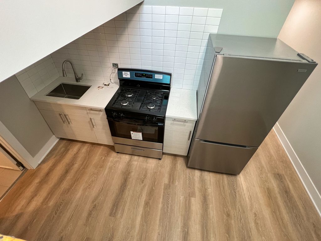 Studio loft efficiency apartment featuring quartz countertops, stainless steel appliances, subway tile backsplash, central heat and A/C. Bathroom features custom granite vanity. Rent includes Gas, Electric, Heat, A/C, Water, and on-site Laundry. This Little Village location is on a quiet residential street close to 26th Street for restaurants, nightlife, shopping and grocery. Easy street parking. Available now!