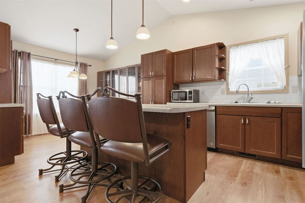 Come take a peek at this charming 2-bedroom, 3 bath home with a walkout basement full of sunlight! Enjoy the backyard views of adjoining open prairie with no backyard neighbors. Step inside this open concept ranch home! Featuring 2 bedrooms on the main level with 2 full bathrooms, laundry off of the garage and open concept kitchen to the living space. Custom build bookcases or extra cabinetry in the dining nook makes for optimal storage or a showcase for decorative pieces. Primary bedroom has walk in closet and primary bathroom. Downstairs you will find adequate room for entertaining or possibility of a 3rd bedroom. Full bathroom in basement as well. Don't miss out on the opportunity to see this gem! Great neighborhood with the ambiance of countryside while still being in town! HOA takes care of lawn, snow removal and garbage.
