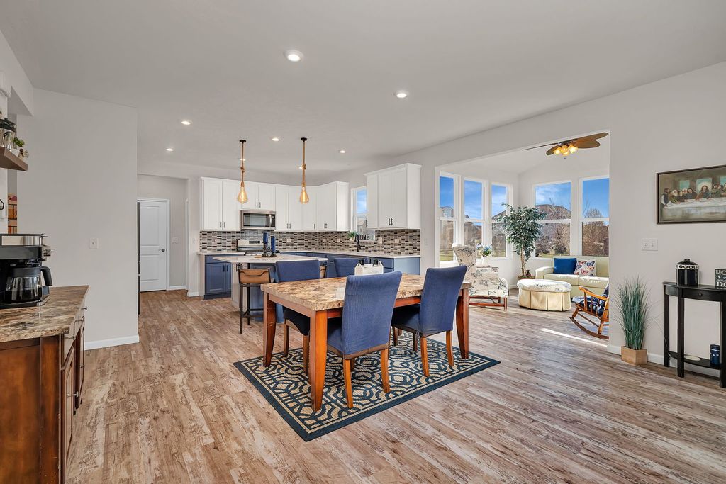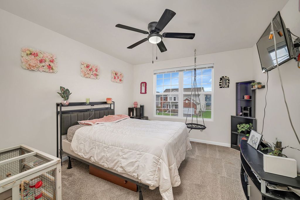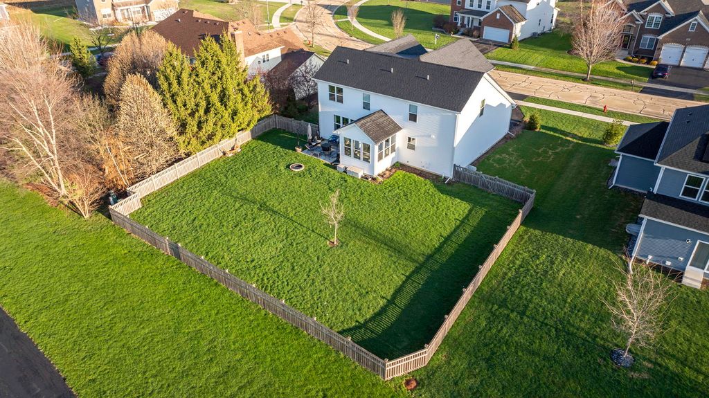 Better than new construction, this stunning home was built in 2023 and offers thoughtful upgrades and beautiful finishes throughout. Featuring 4 spacious bedrooms plus a 5th bedroom/flex room, this versatile layout easily adapts to your lifestyle, whether you need an additional bedroom, home office, gym, or media space. The kitchen is truly a standout, designed with both style and functionality in mind. It features a large island, quartz countertops, a tile backsplash, stainless steel appliances, a large sink, many cabinets and an expansive walk-in pantry that provides exceptional storage and organization. Just off the eat-in kitchen, a bright and inviting sunroom offers the perfect place to enjoy your morning coffee, entertain guests, or soak in natural light year-round. Additional highlights include a convenient second-floor laundry room, a practical mudroom, and a dedicated office space with room for two desks, ideal for remote work or study. The spacious primary en suite is designed for relaxation, complete with a soaking tub, walk-in shower, dual sinks, and custom mirrors. Step outside to enjoy the welcoming front porch, a back patio perfect for entertaining, and a fully fenced yard offering both privacy and space to play or unwind. Nearly new with added charm, function, and thoughtful upgrades this home truly stands out. Come see it today!