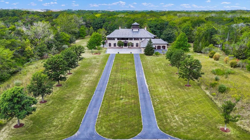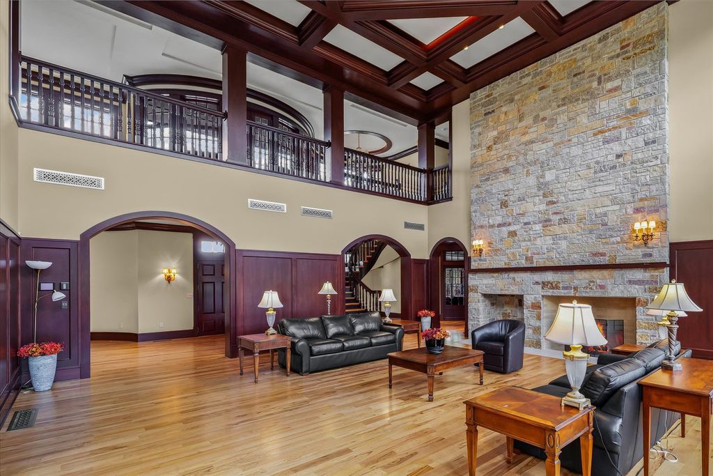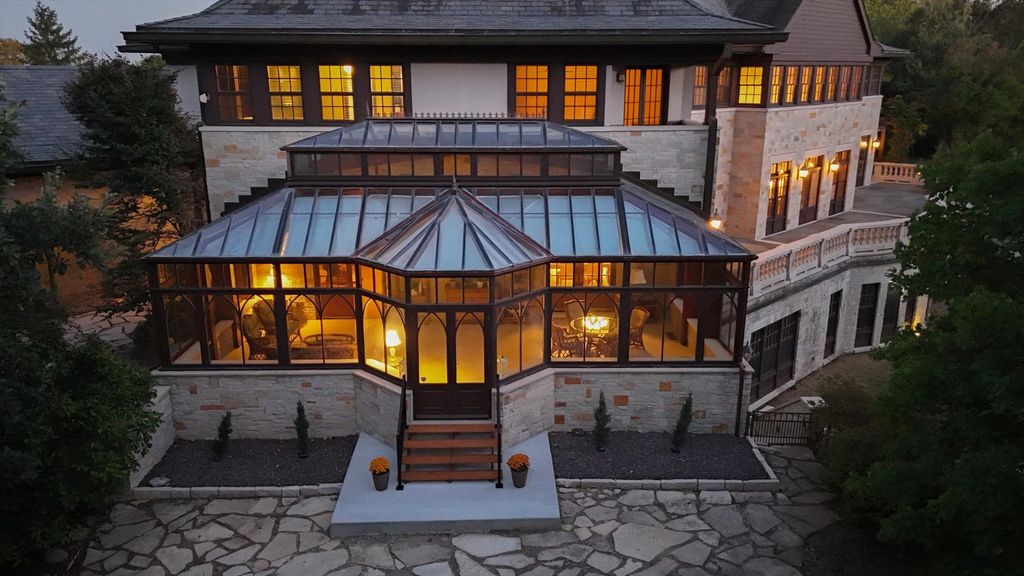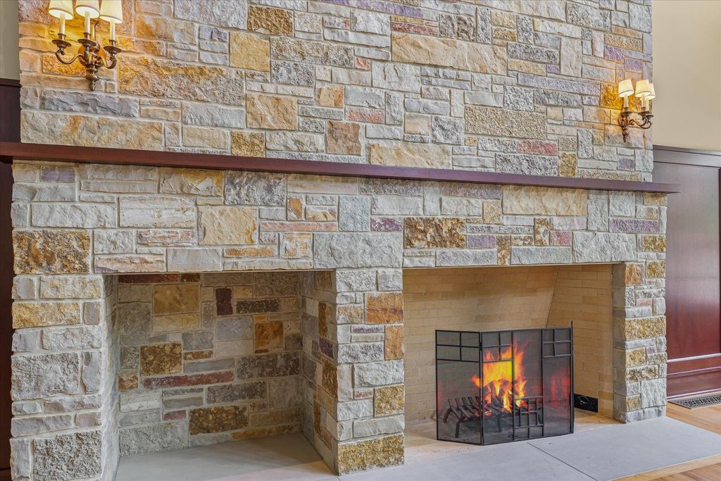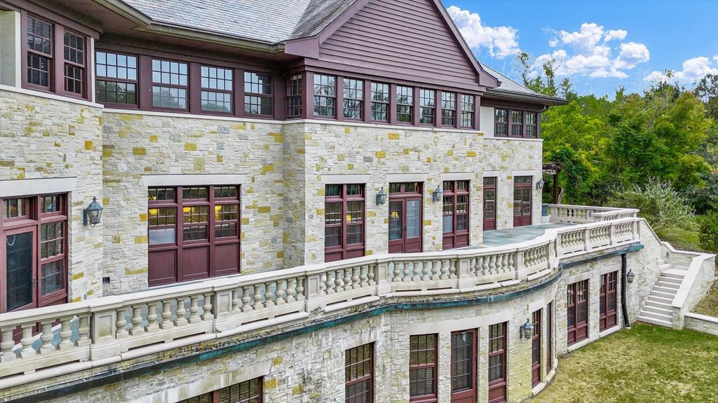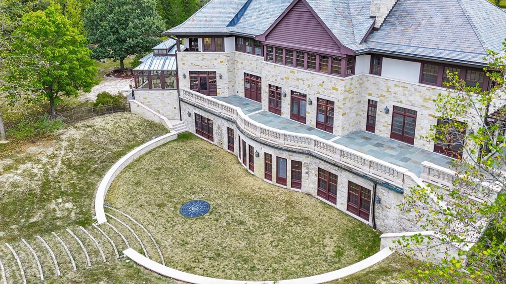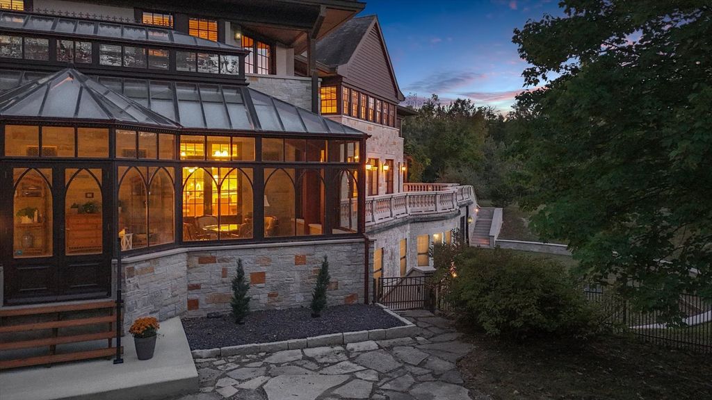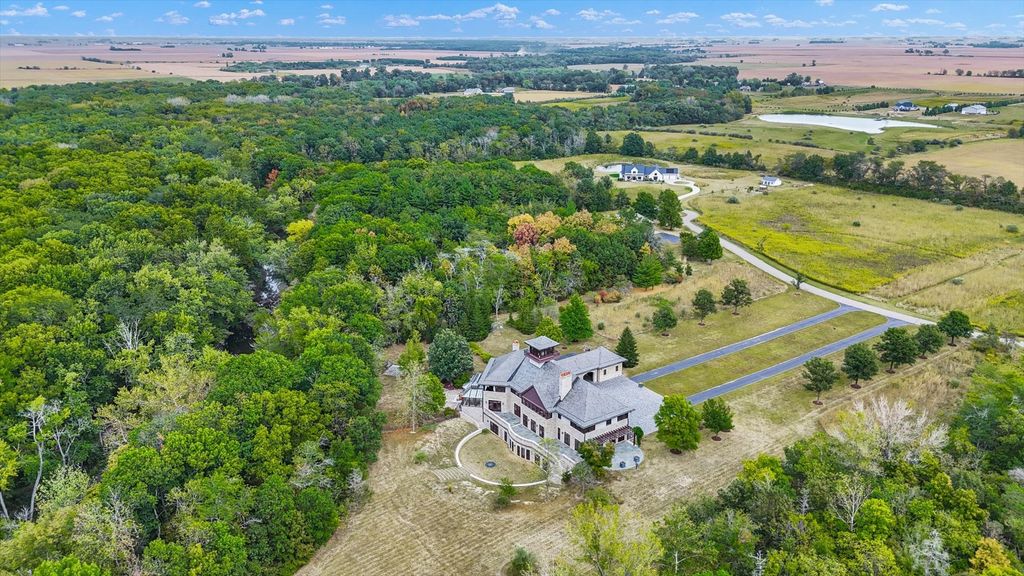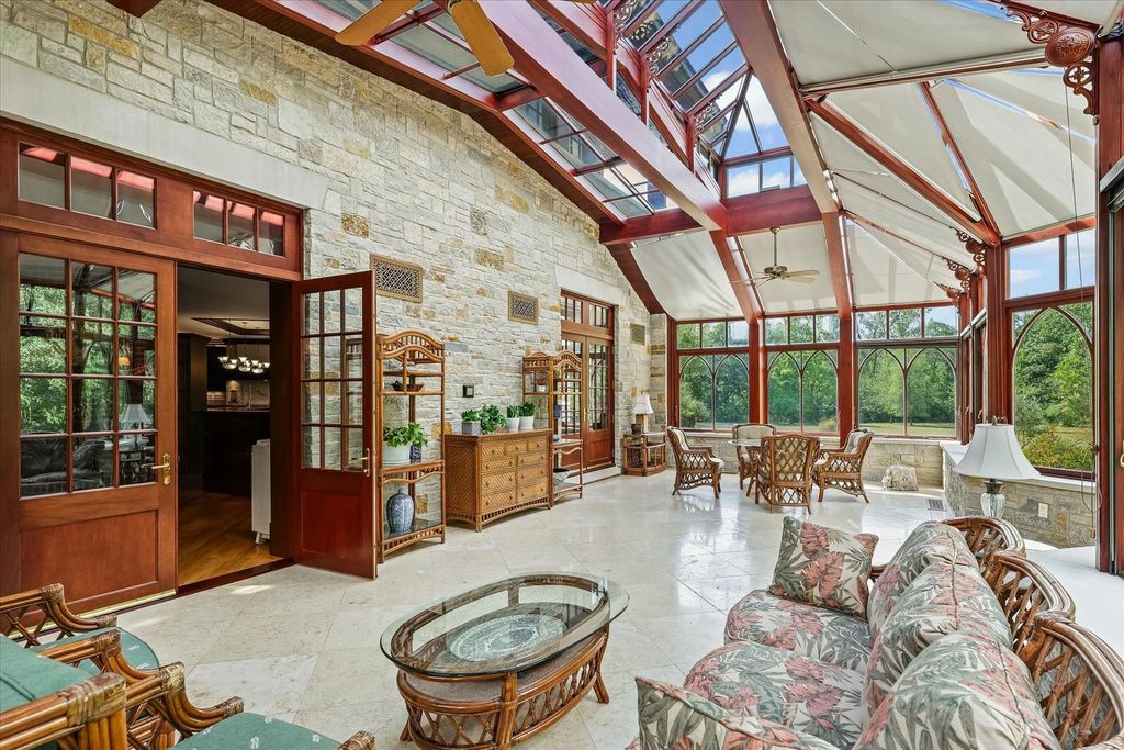Introducing The Hidden River Estate, a generational estate of timeless craftsmanship and enduring design. Inspired by classic English country manors and enhanced by Frank Lloyd Wright architectural principles, this extraordinary residence rests on just under 26 private acres north of Mahomet, with frontage along the Sangamon River and adjacency to the Heron View Forest Preserve. Constructed of quarry stone, limestone, slate, and copper, every material was chosen for permanence and integrity. Inside, natural finishes of marble, granite, Jerusalem stone, and solid hardwoods pair with intricate millwork and custom-built furnishings. The home spans over 18,000 square feet across multiple levels, each connected by an elevator and designed for both elegance and function. The main level centers around a soaring Great Room framed by stone and light, flowing into the chef's kitchen equipped with SubZero, Thermador, and Miele appliances. A handcrafted English conservatory, imported from England, serves as a year-round retreat with panoramic woodland views. Each bedroom features a private en suite bath, while the primary suite offers dual walk-in closets, a spa-inspired bath, and balcony access. The tower observatory, accessed by 54 steps, reveals 360 treetop and river views. Every element of the property was engineered to commercial-grade standards, including redundant systems, geothermal HVAC, multiple wells, lift pumps, a full-house generator, and professional-grade service access throughout. The lower level includes a fitness area, sauna, with abundant storage and flex space. Outdoor amenities include five-car garage capacity, a slate roof, and multiple balconies overlooking manicured lawns and mature trees. Hidden River represents the rare combination of enduring construction, thoughtful design, and natural beauty, a timeless, generational home built to last for centuries.