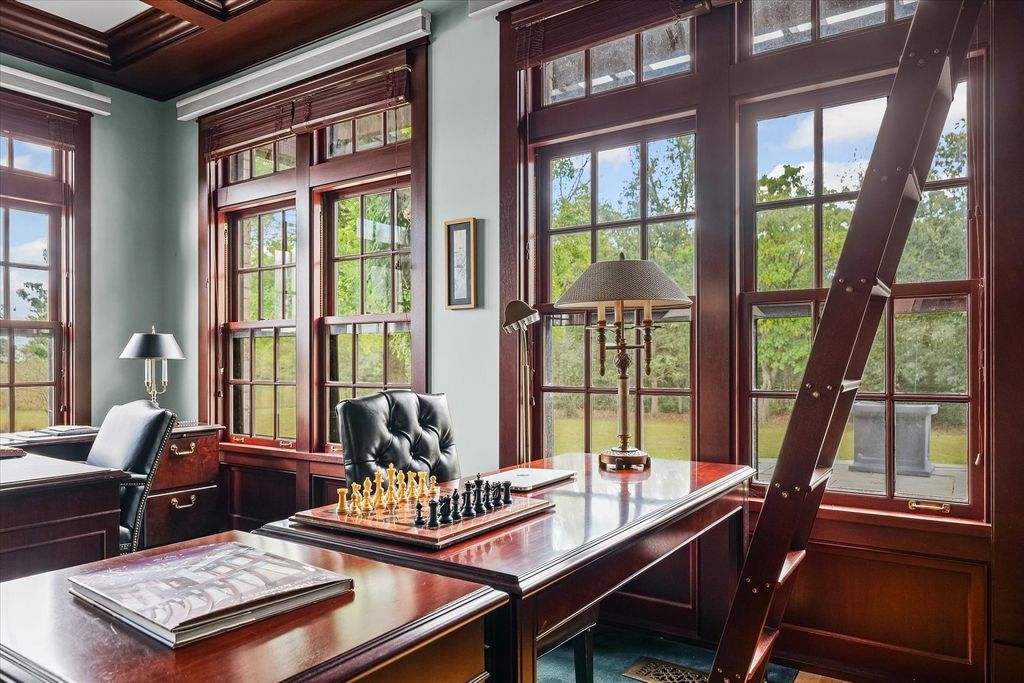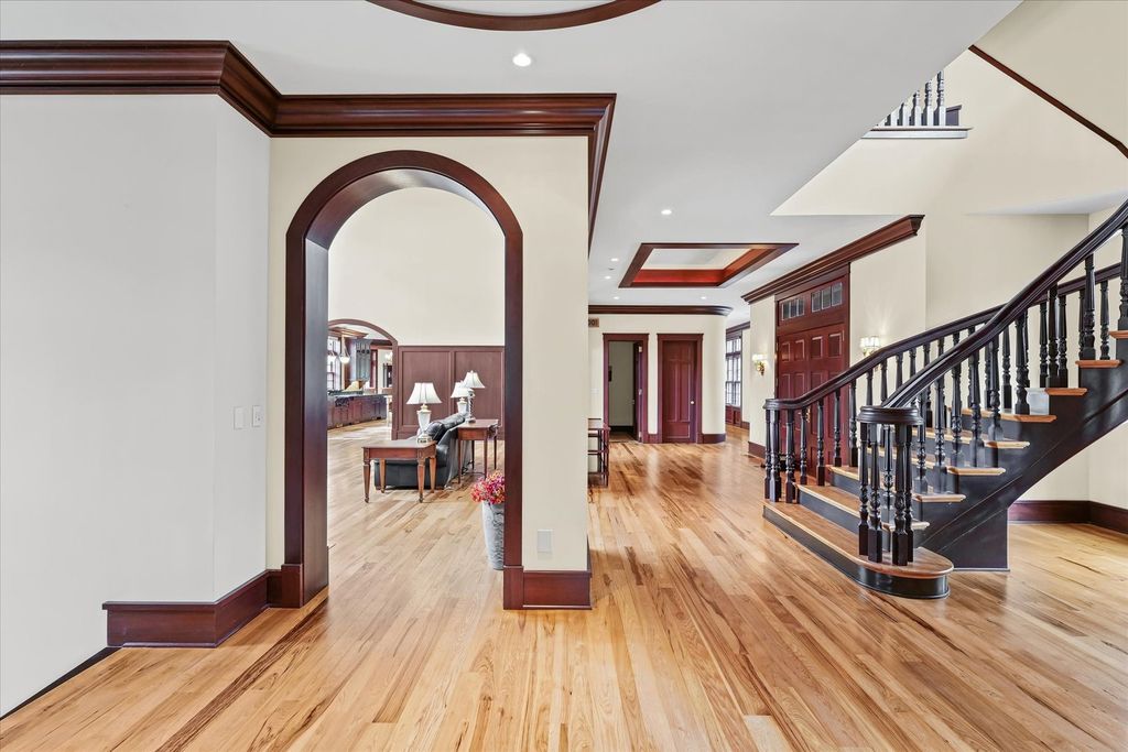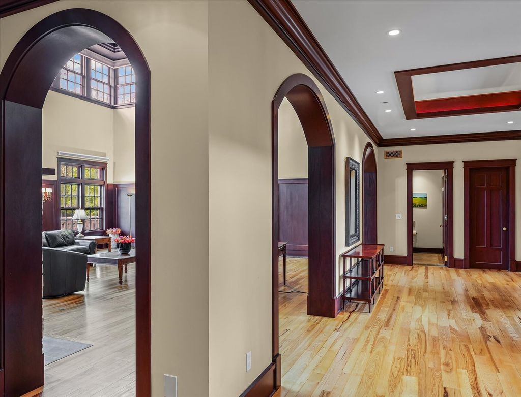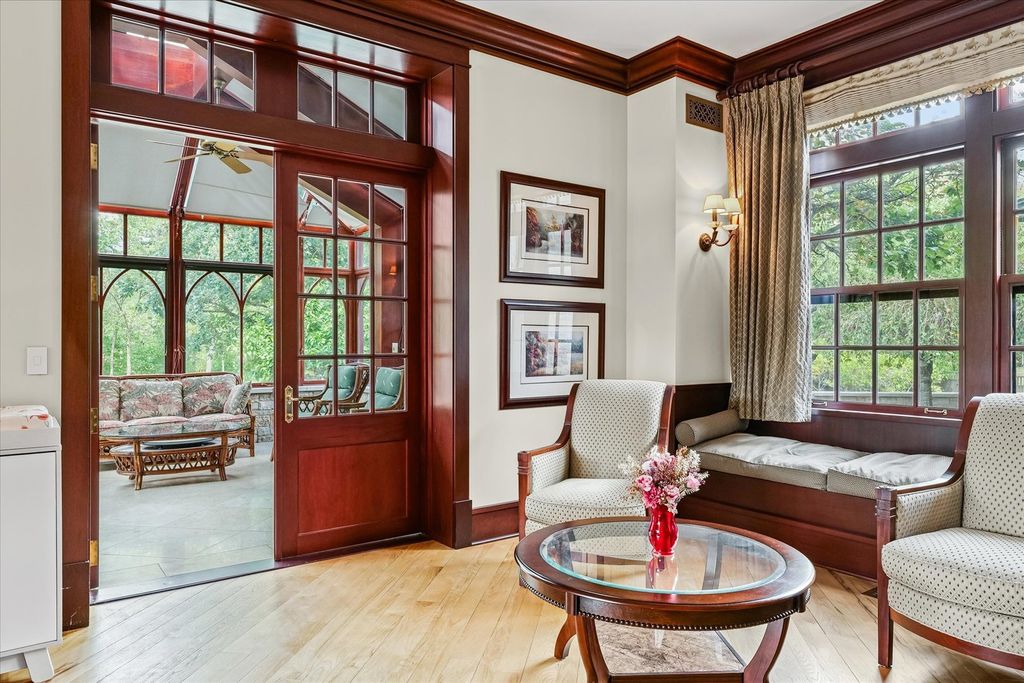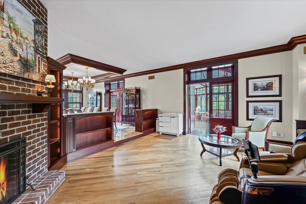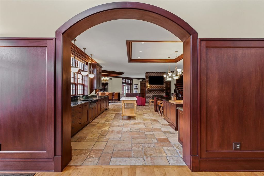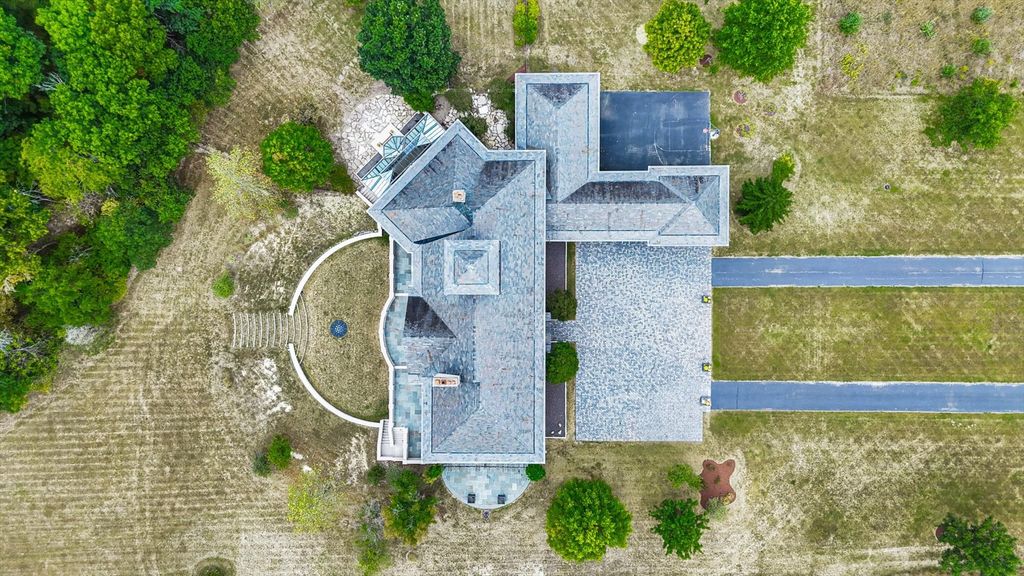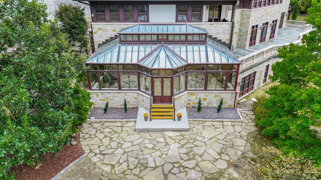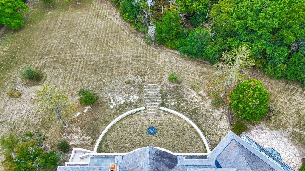 Introducing The Hidden River Estate, a generational estate of timeless craftsmanship and enduring design. Inspired by classic English country manors and enhanced by Frank Lloyd Wright architectural principles, this extraordinary residence rests on just under 26 private acres north of Mahomet, with frontage along the Sangamon River and adjacency to the Heron View Forest Preserve. Constructed of quarry stone, limestone, slate, and copper, every material was chosen for permanence and integrity. Inside, natural finishes of marble, granite, Jerusalem stone, and solid hardwoods pair with intricate millwork and custom-built furnishings. The home spans over 18,000 square feet across multiple levels, each connected by an elevator and designed for both elegance and function. The main level centers around a soaring Great Room framed by stone and light, flowing into the chef's kitchen equipped with SubZero, Thermador, and Miele appliances. A handcrafted English conservatory, imported from England, serves as a year-round retreat with panoramic woodland views. Each bedroom features a private en suite bath, while the primary suite offers dual walk-in closets, a spa-inspired bath, and balcony access. The tower observatory, accessed by 54 steps, reveals 360 treetop and river views. Every element of the property was engineered to commercial-grade standards, including redundant systems, geothermal HVAC, multiple wells, lift pumps, a full-house generator, and professional-grade service access throughout. The lower level includes a fitness area, sauna, with abundant storage and flex space. Outdoor amenities include five-car garage capacity, a slate roof, and multiple balconies overlooking manicured lawns and mature trees. Hidden River represents the rare combination of enduring construction, thoughtful design, and natural beauty, a timeless, generational home built to last for centuries.