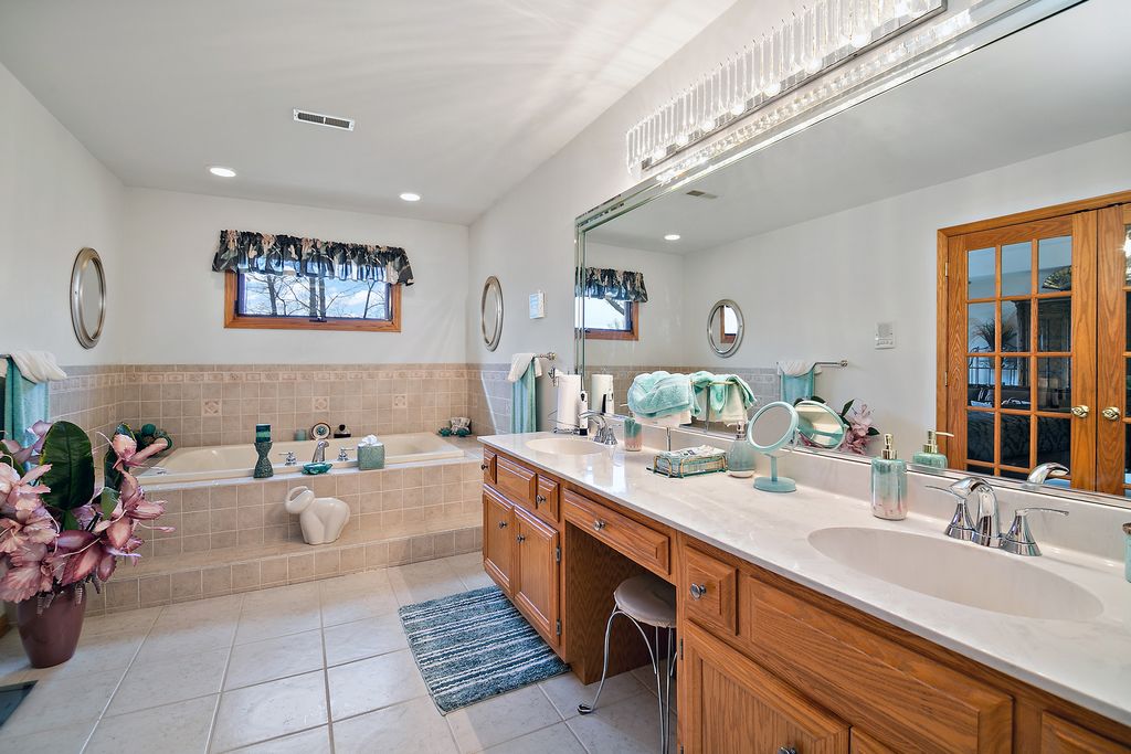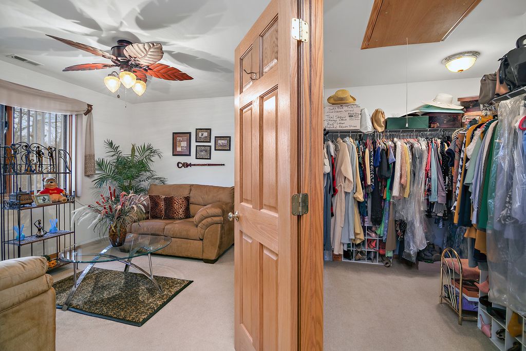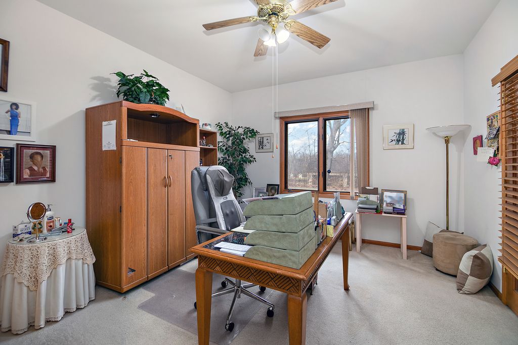 Pride of ownership shines throughout this beautifully maintained all brick estate in the Royal Oak Estates subdivision situated on just over one acre of landscaped grounds. The seller has taken exceptional care of this home, with consistent professional servicing and thoughtful upgrades over the years. HVAC systems are maintained annually, and a brand new air conditioner was installed in July 2025. The roof shingles have been treated with ceiling oil for added longevity, and Leaf Filter gutter protection surrounds the home and transfers to the new owner. This spacious and flexible floor plan offers five total bedrooms and four bathrooms, including two full baths and two half baths. Four bedrooms are located on the upper level, while the main level office is currently used as an office but can easily function as a fifth bedroom. The primary suite is a true retreat, featuring a private balcony with a two seater that stays, a generous sitting area ideal for reading or relaxing, and an oversized walk in closet. The primary bathroom includes dual sinks, a whirlpool tub, and a private enclosed water closet that also houses the shower, offering both privacy and comfort. The kitchen is well equipped for everyday living and entertaining with a large island, double oven range, and a butlers bar. The family room features skylights with shades, a stunning floor to ceiling stone fireplace offering both gas and wood burning options. The chimney flue has been professionally cleaned and is in excellent condition. Custom mirrors in the formal dining room and living room add elegance, depth, and beautiful light reflection throughout the main living spaces. The finished basement expands the living area with a wet bar, bar refrigerator that stays, an additional office, two storage rooms, and a dedicated workshop or tool room with shelving that will remain. Additional features include two furnaces, two sump pumps, a whole house water filtration system, an intercom system, an inground sprinkler system, a shed, and a dedicated vegetable garden space. This home has been meticulously cared for and it shows in every detail. A rare opportunity to own a thoughtfully maintained, spacious property with exceptional features and peace of mind.