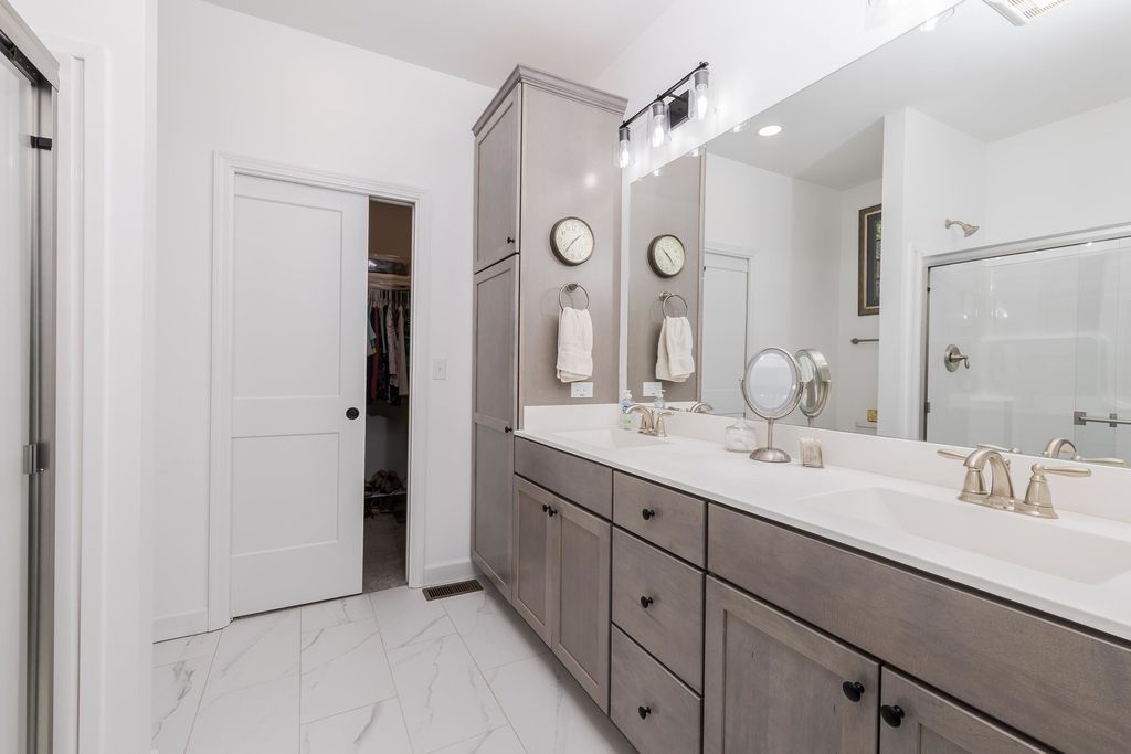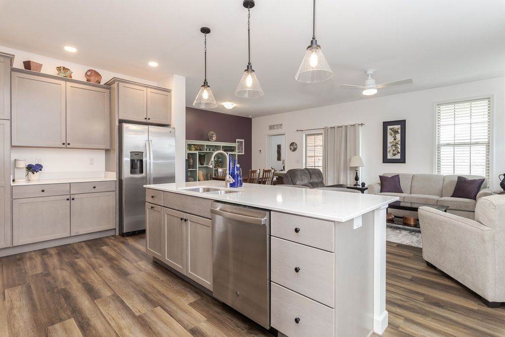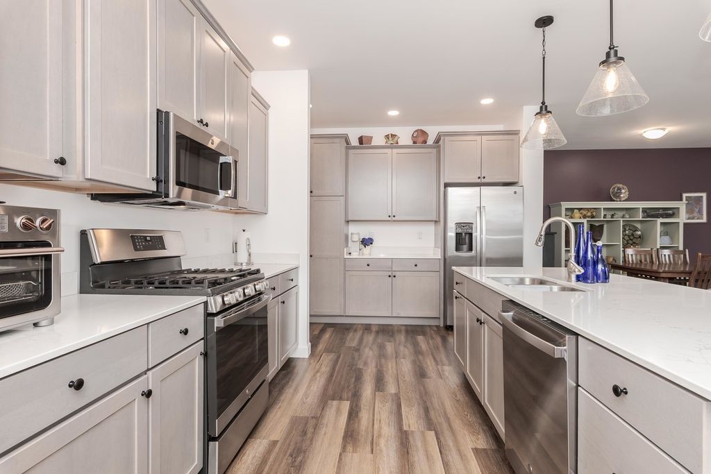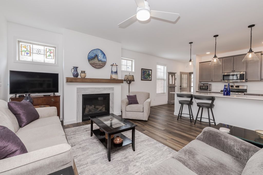 Easy care living! Mowing the grass and shoveling the snow is provided by the Evergreen Villas Homeowners Association. This beautiful 2 bedroom, 2 bath home features a well thought out floor plan for you to enjoy. The kitchen has quartz countertops with an overhang for island seating as well as a dining area. The primary bedroom suite has a walk-in closet, spacious shower and vanity. The lower level is unfinished with an egress window and rough in for a third bath. The covered patio is perfect for relaxing! Also, the neighborhood features pathways and the Constitution Trail can be accessed down the street at Rosa Parks Commons.